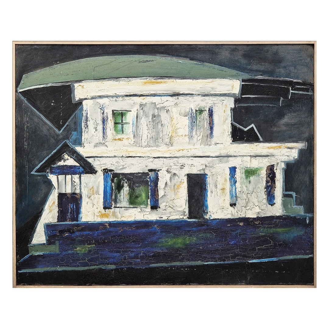 CONTINENTAL SCHOOL (20TH CENTURY). WHITE VILLA. oil on board, 88cm x 109cm, framed.