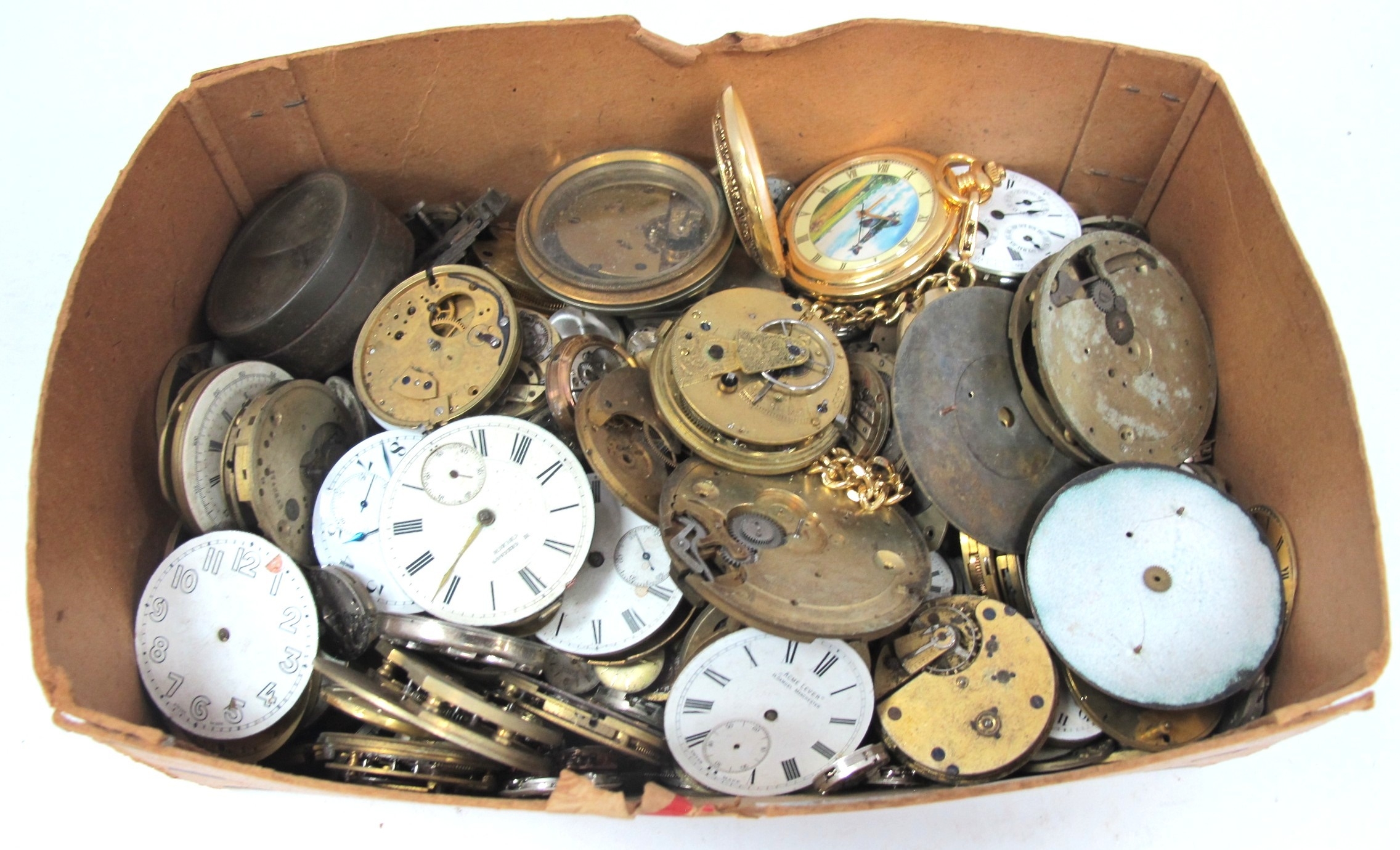 A Quantity of Assorted Pocket Watch and Wristwatch Movements and Dials, spares/repairs, etc :- One Box [659686]