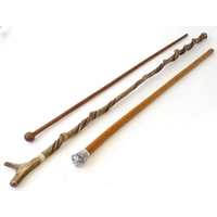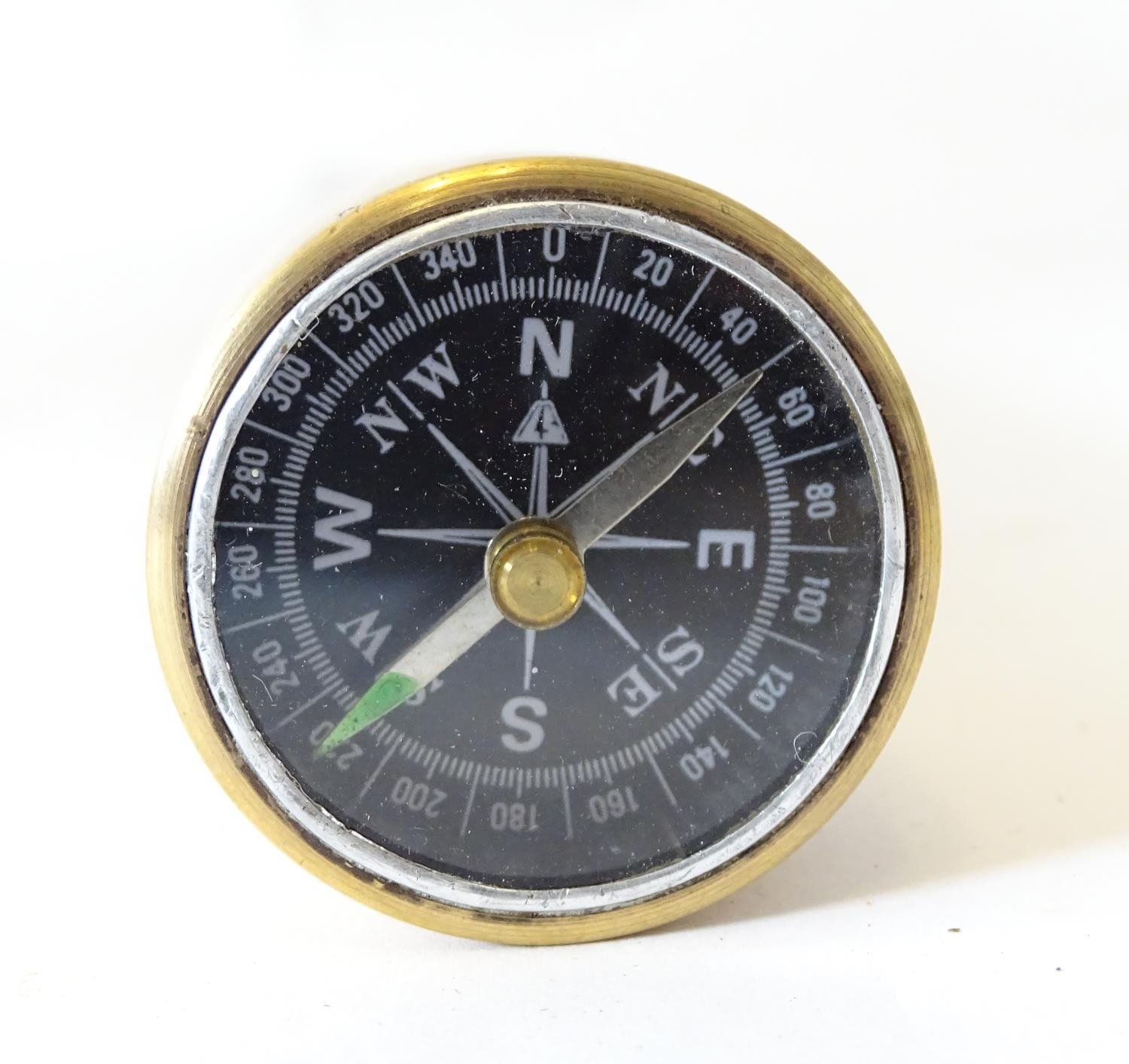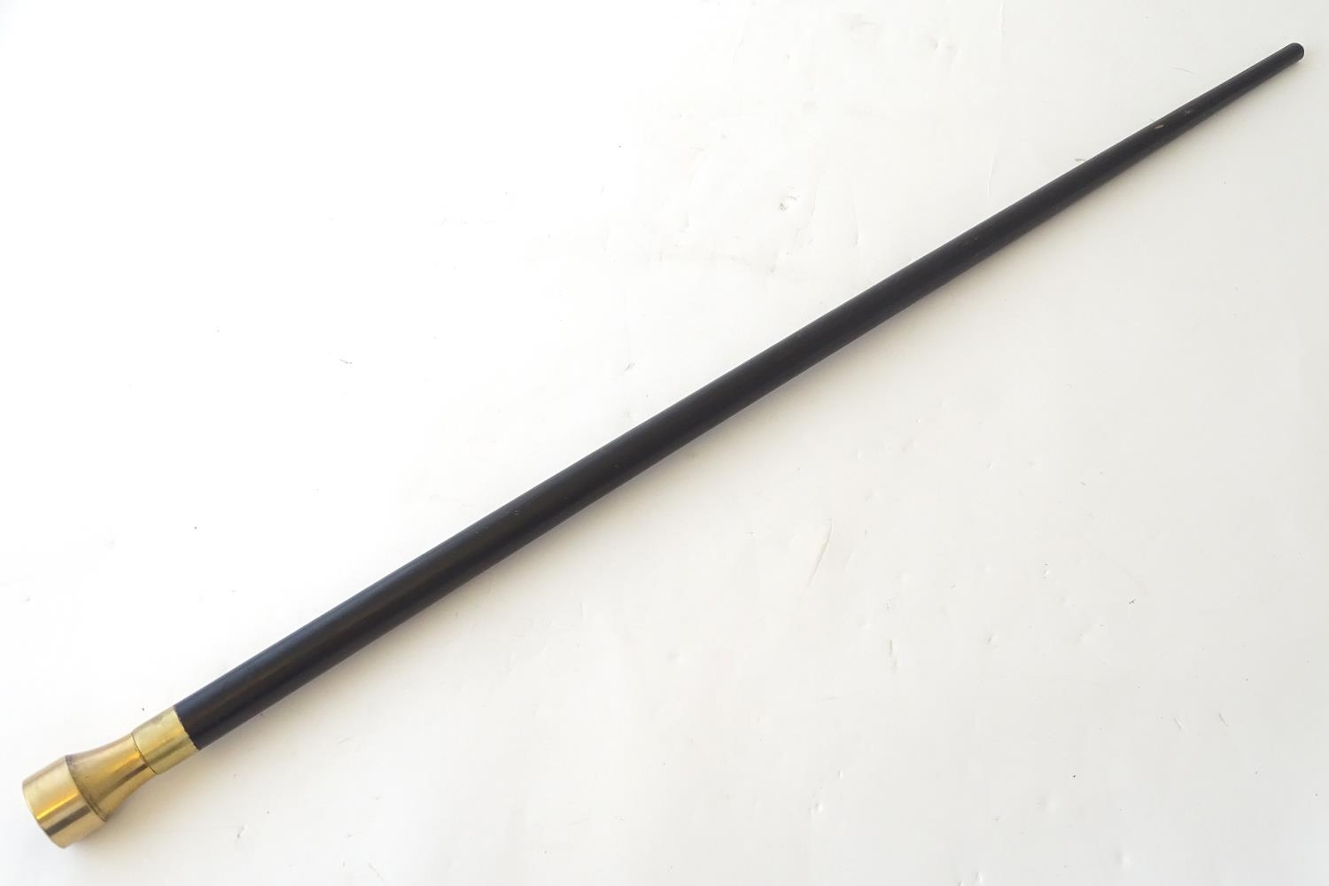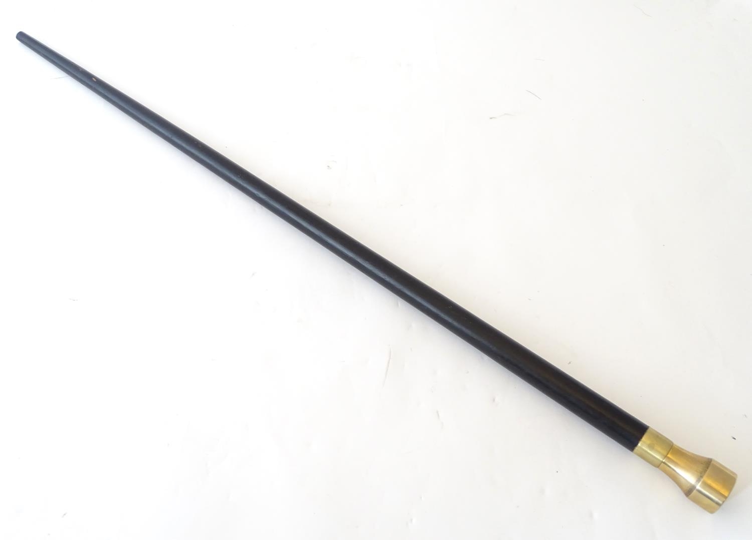 A walking cane with an ebonised shaft, the metal pommel with inset compass. Approx. 34 1/4"
