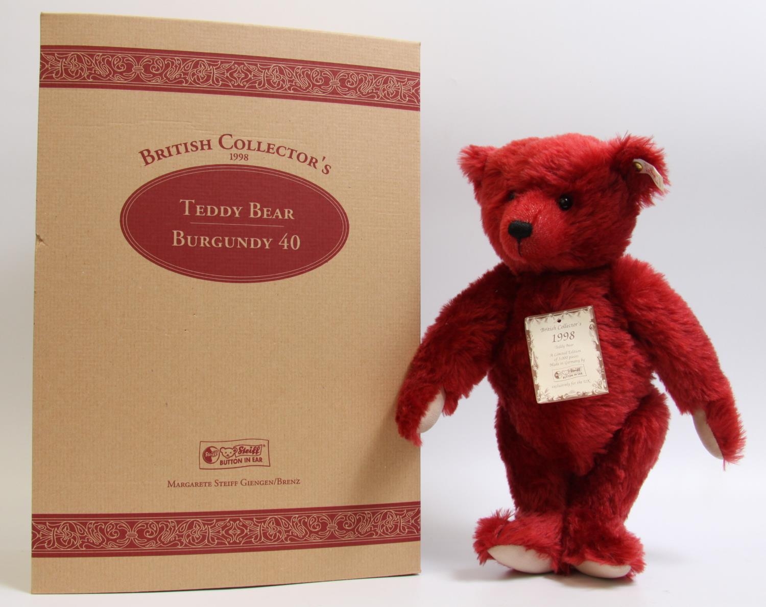 Steiff 1998 British Collectors' teddy bear, Burgundy 40, limited edition 01653/3000 pieces, trademark Steiff button to the ear and chest tag, boxed