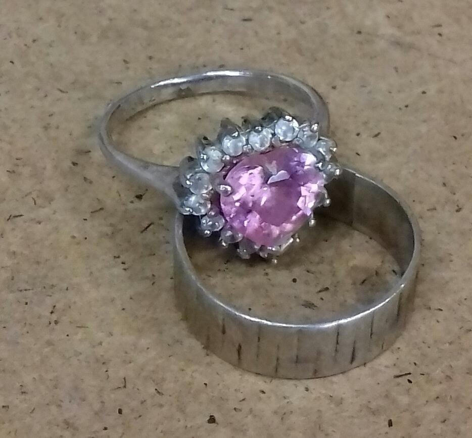 925 CZ stamped silver dress ring size L & split silver band ring