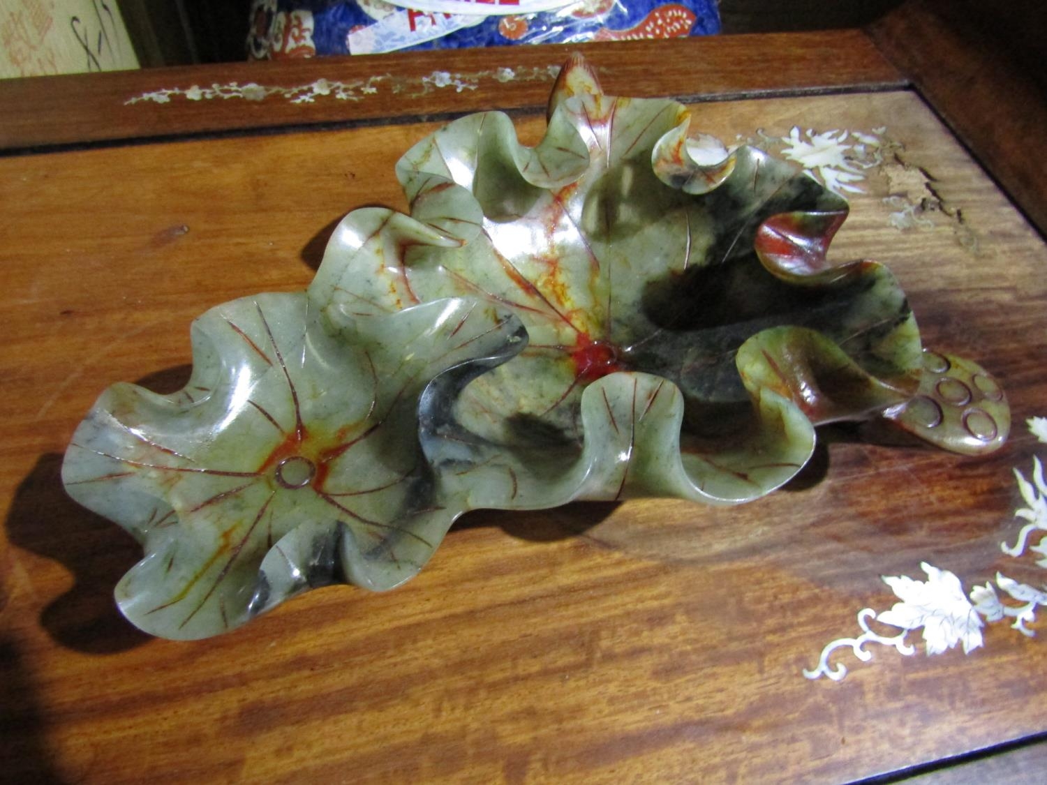 Unusual Jade Carved Dish Oriental Approximately 10 Inches Wide