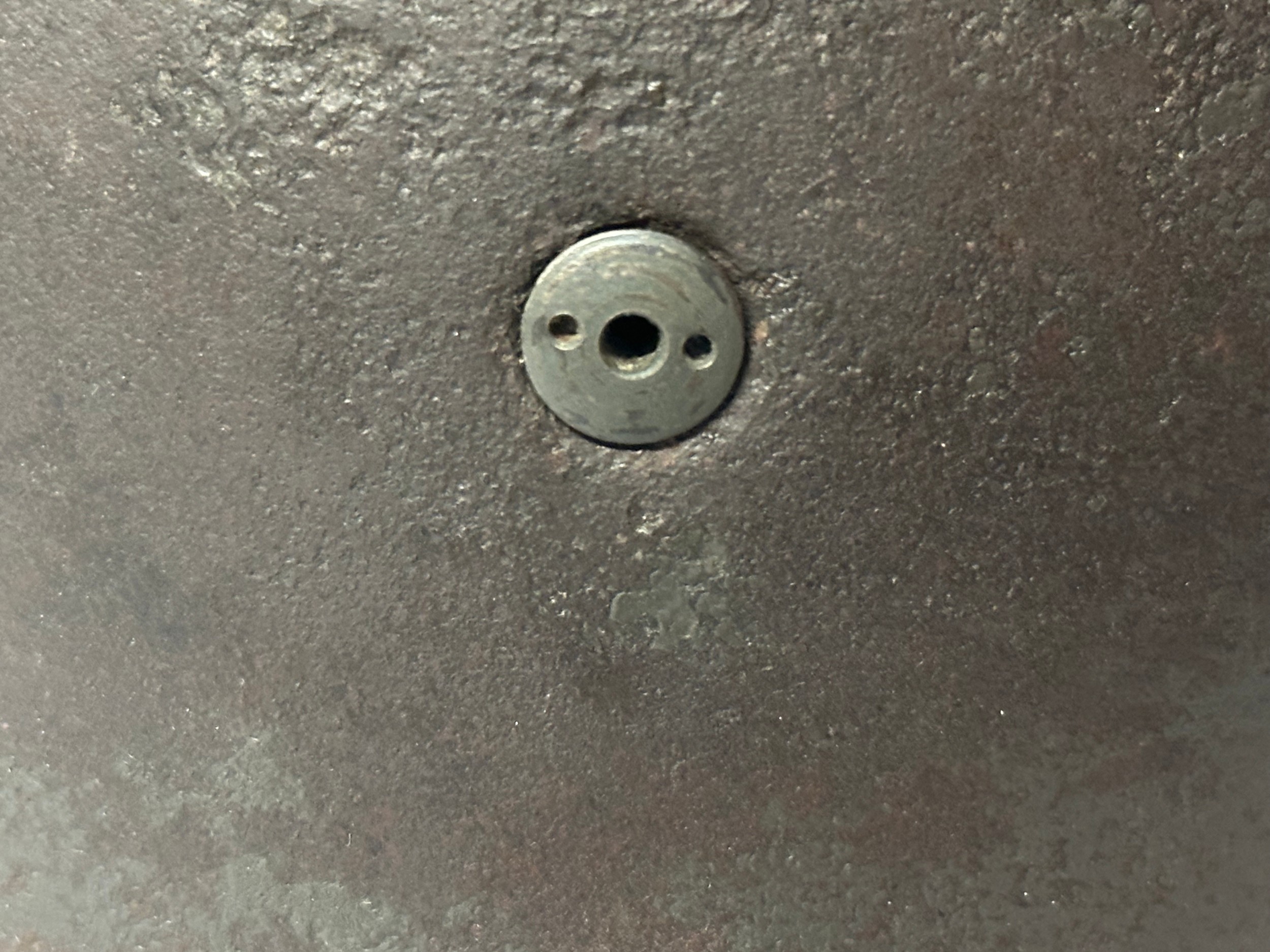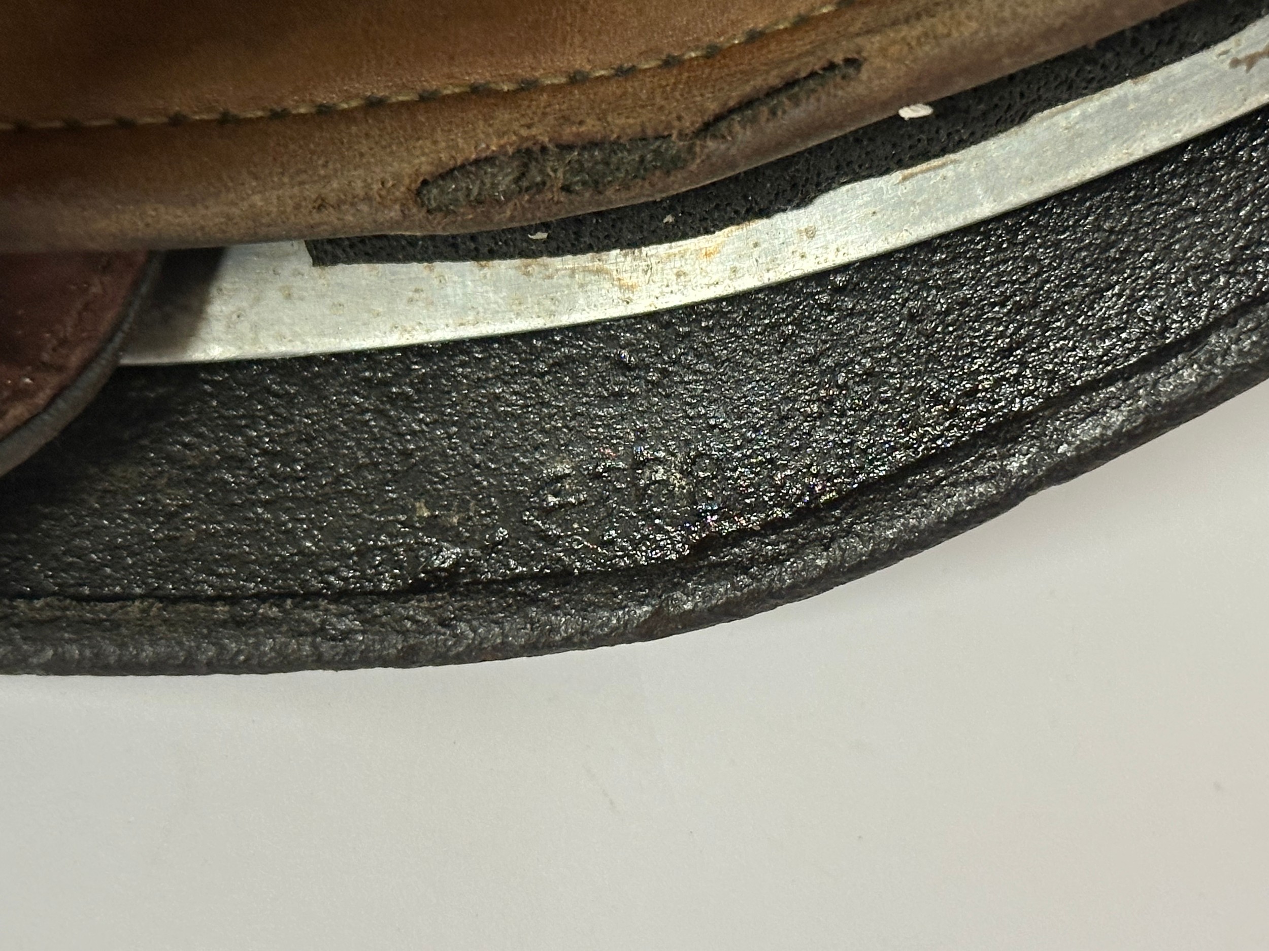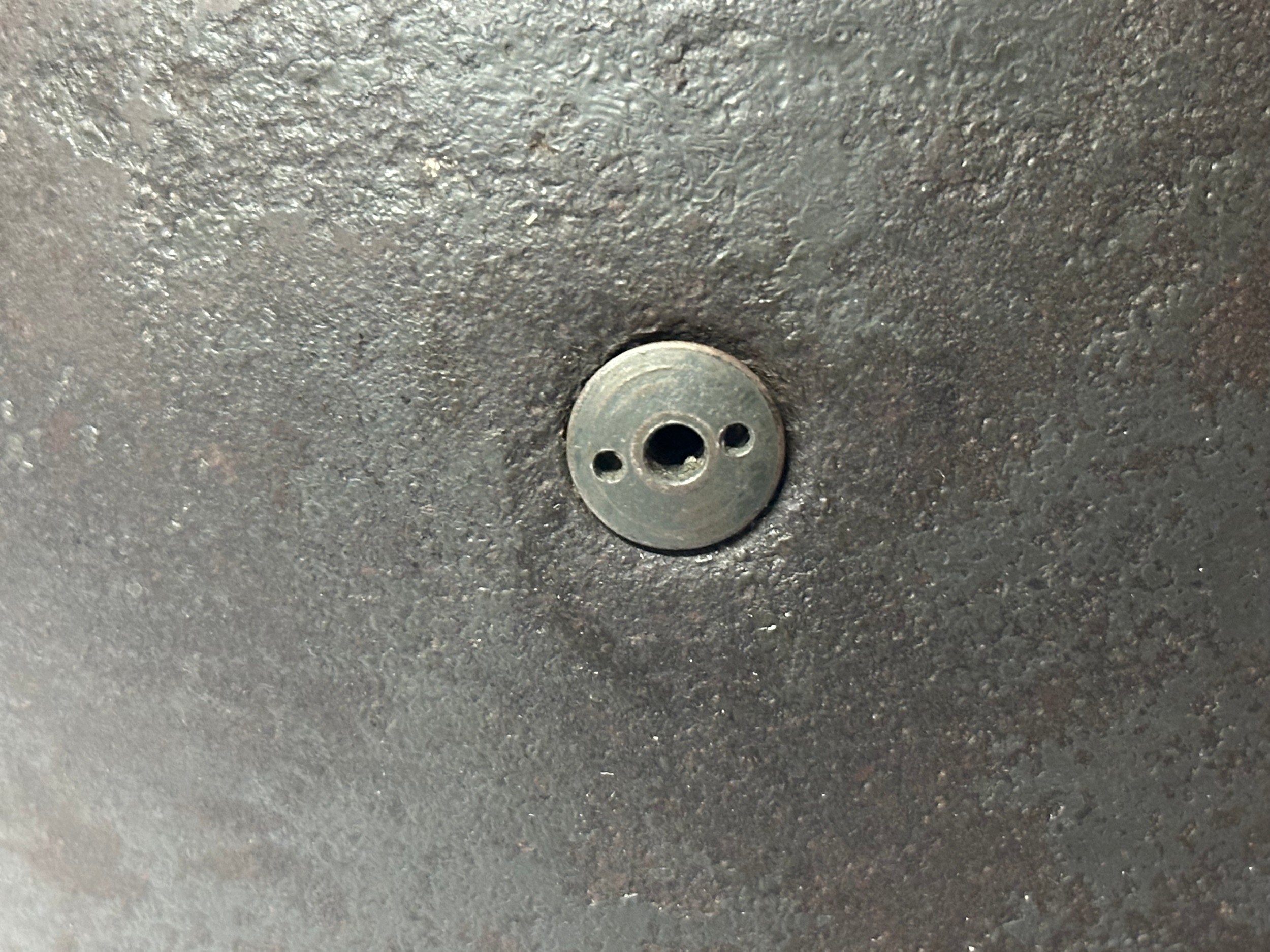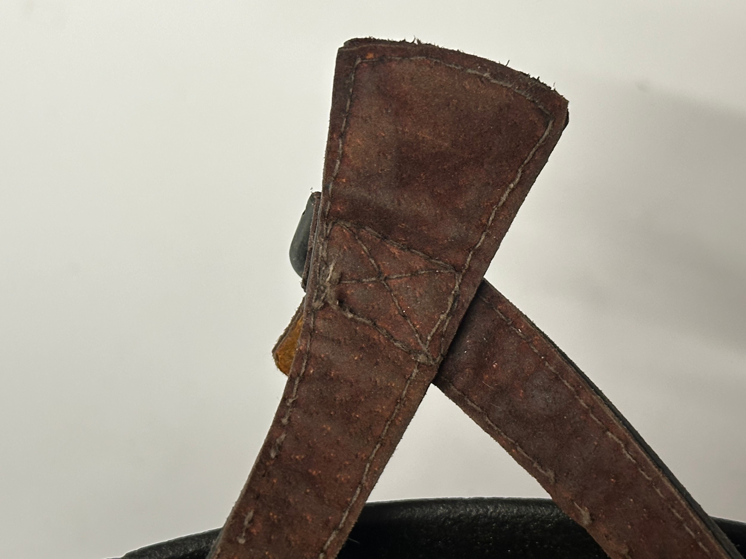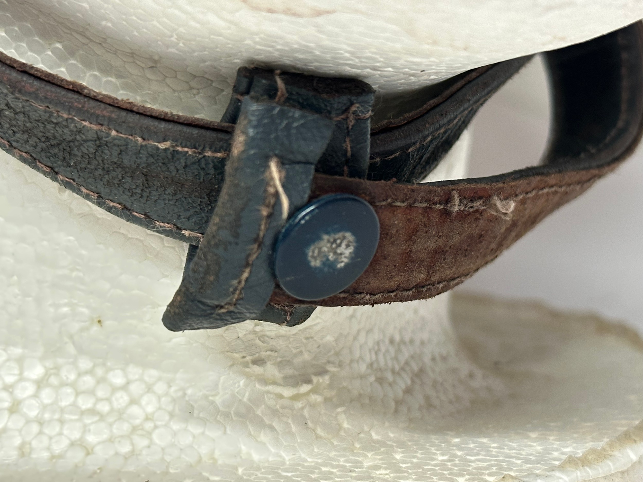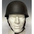 Good restored condition. Rust pitting overall inside and out to the shell. Traces of original paint. Repro chinstraps.