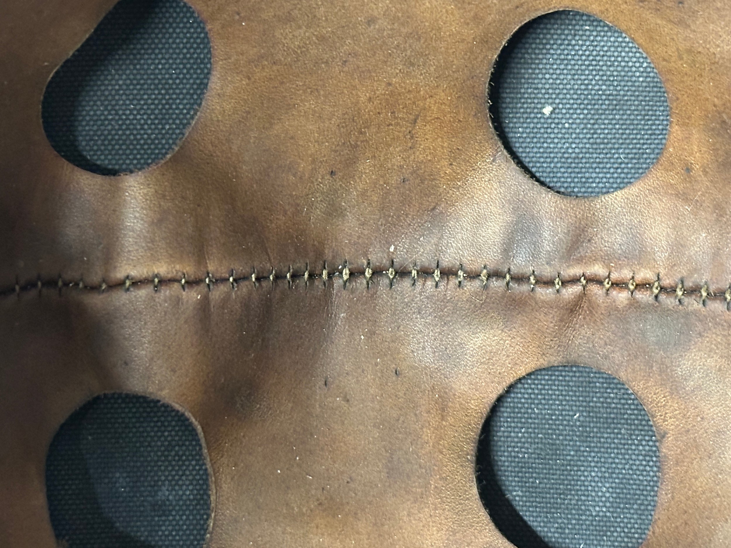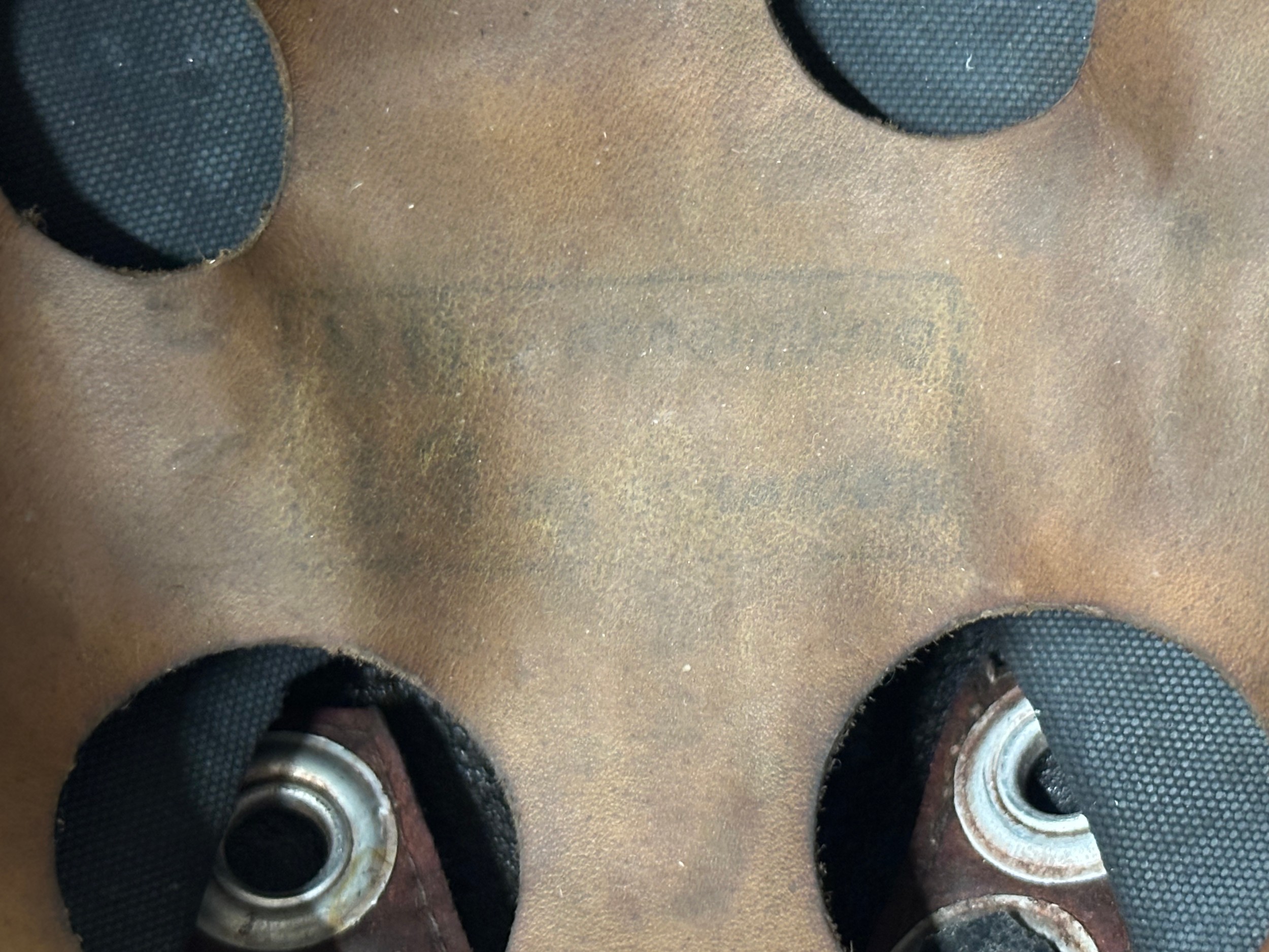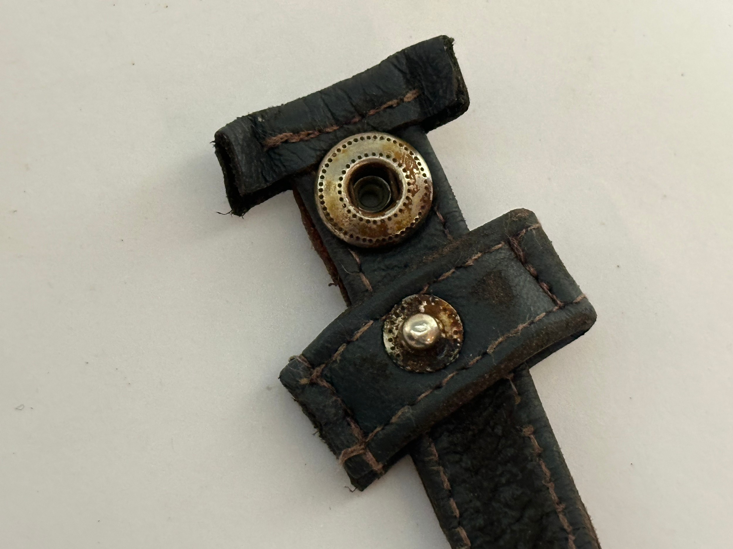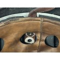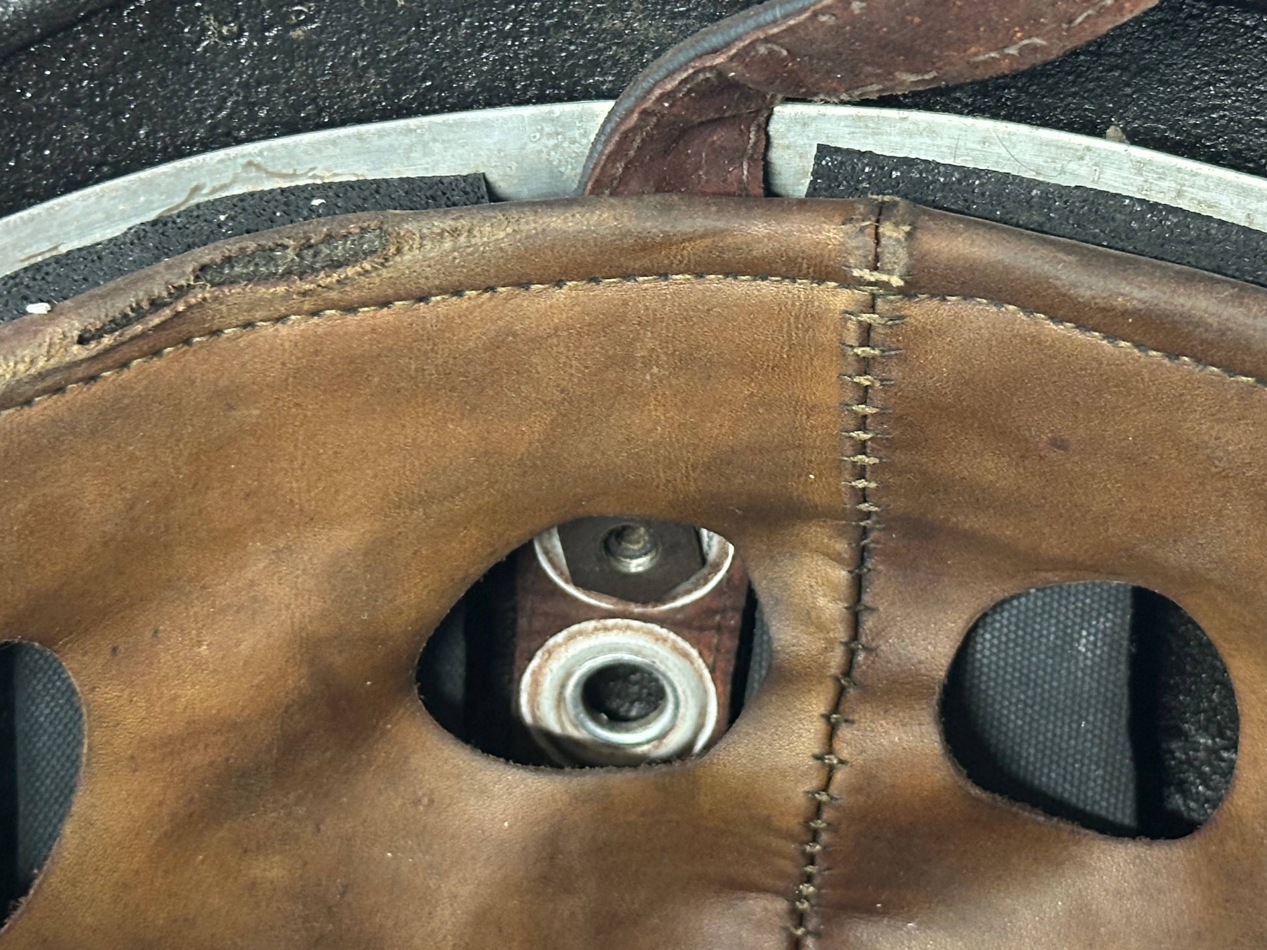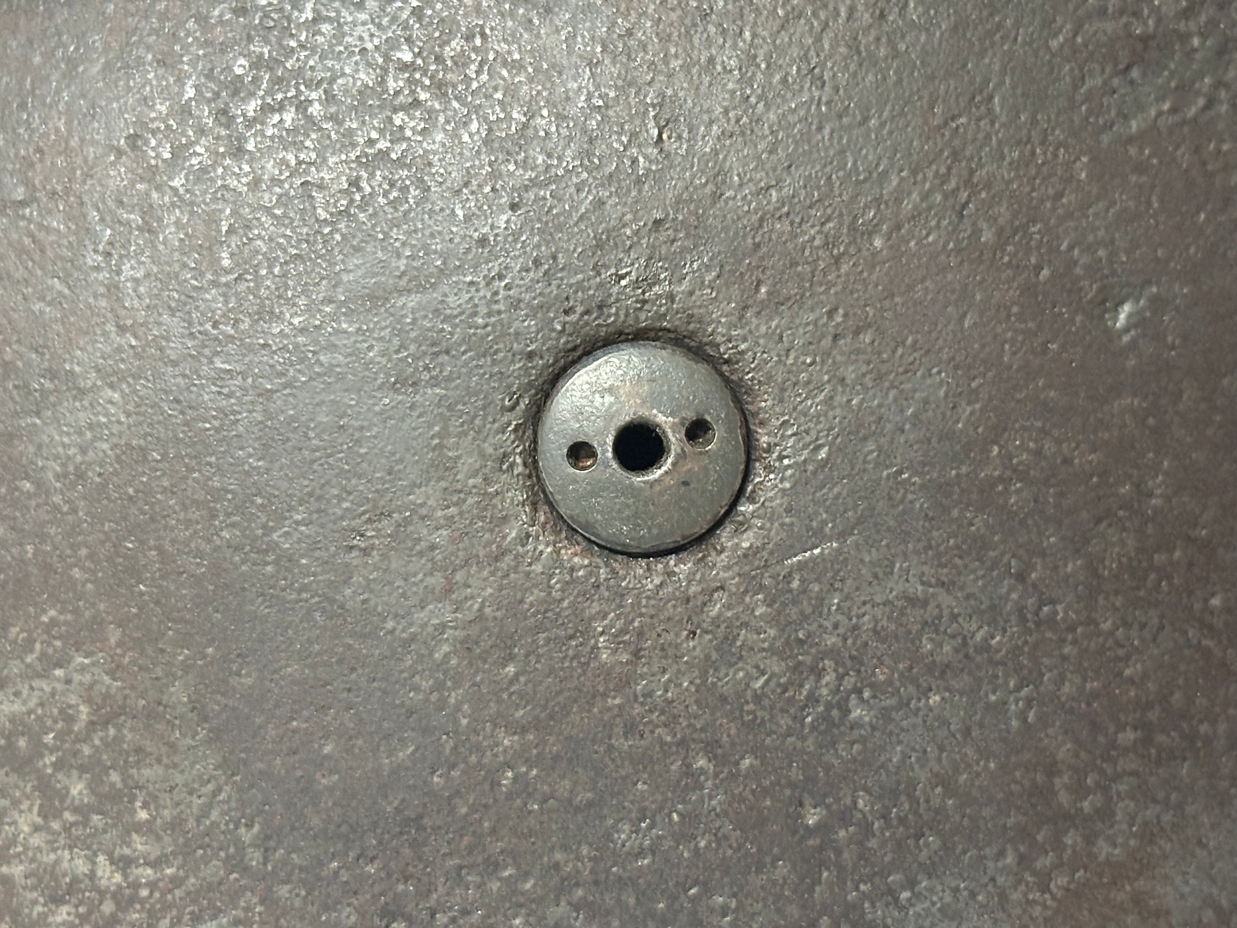 Good restored condition. Rust pitting overall inside and out to the shell. Traces of original paint. Repro chinstraps.