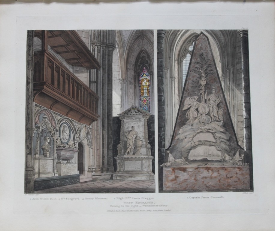 One of the quintessential English Regency colour-plate books. This work is a superbly illustrated study of one of the most interesting edifices in the British Empire. Its remote antiquity, its edificial beauty, the character and variety of its architecture, as well as the ornament it affords to the metropolis, give it a superior distinction. Ackermann employed a variety of artists to bring out in the plates the lustre of stained glass windows and the dim religious light of the chapels.