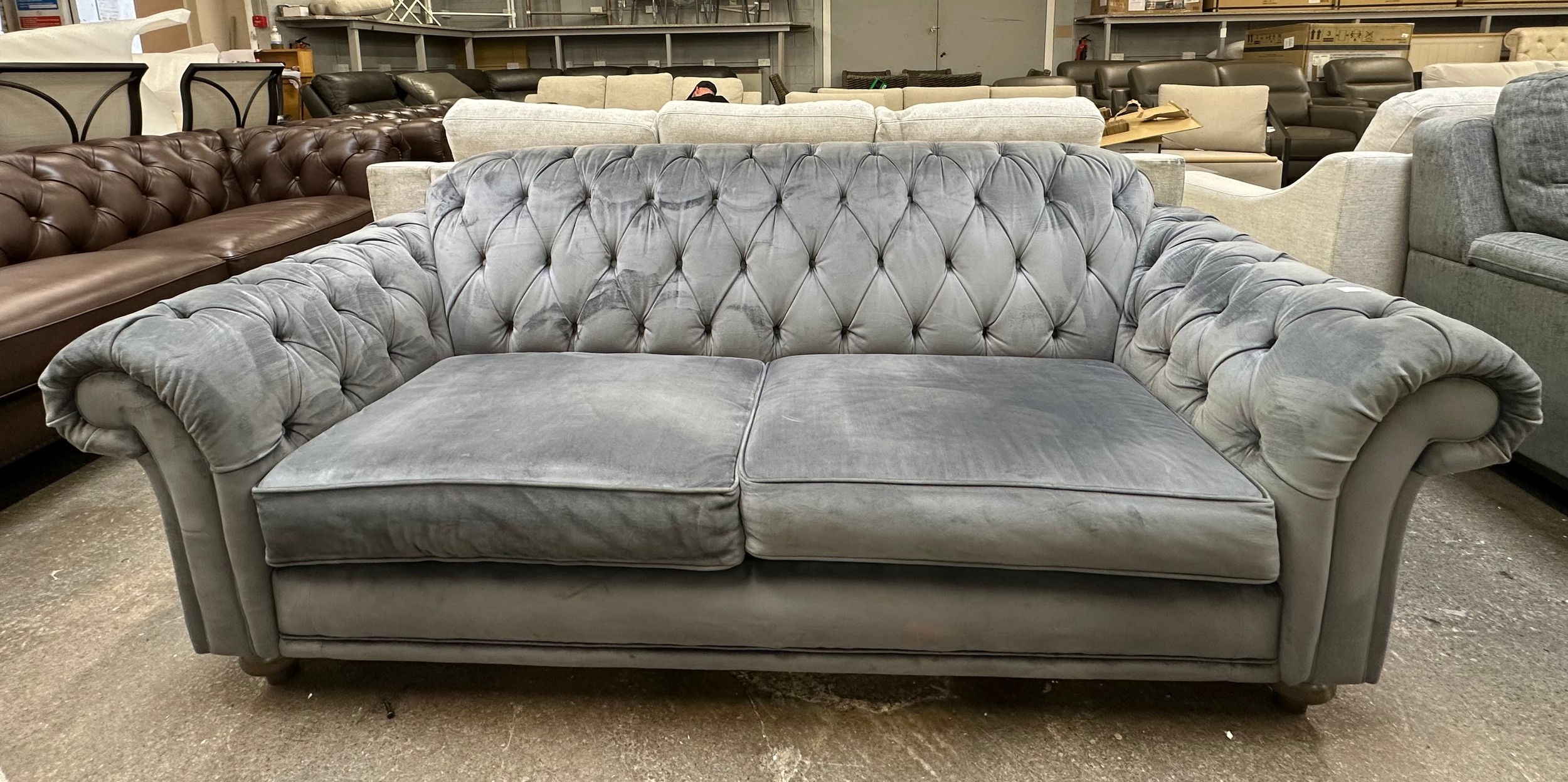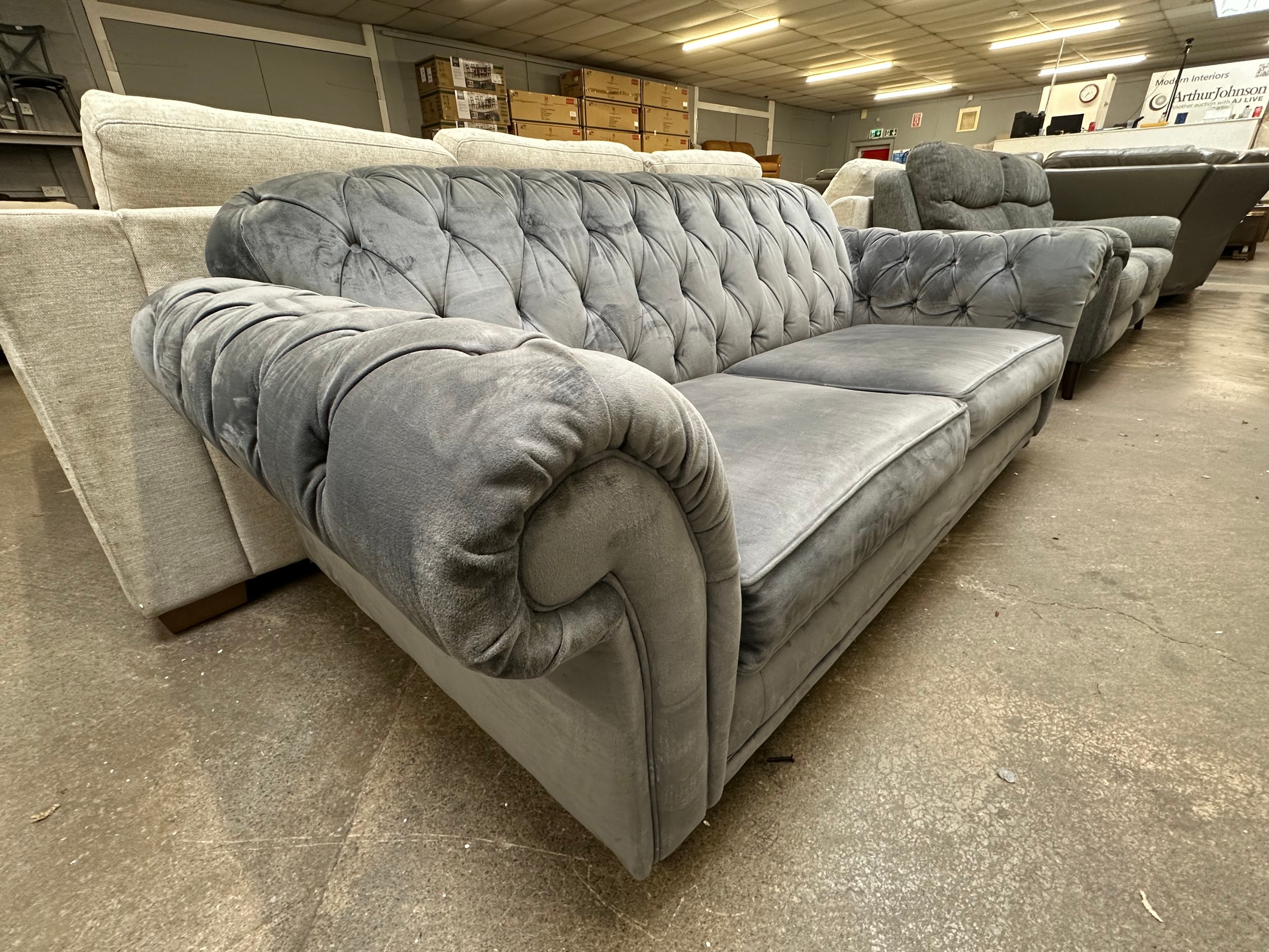 A Bordeaux plush grey velvet 3 seater sofa, original RRP £833.33 + VAT (4235-9) *This lot is subject to VAT