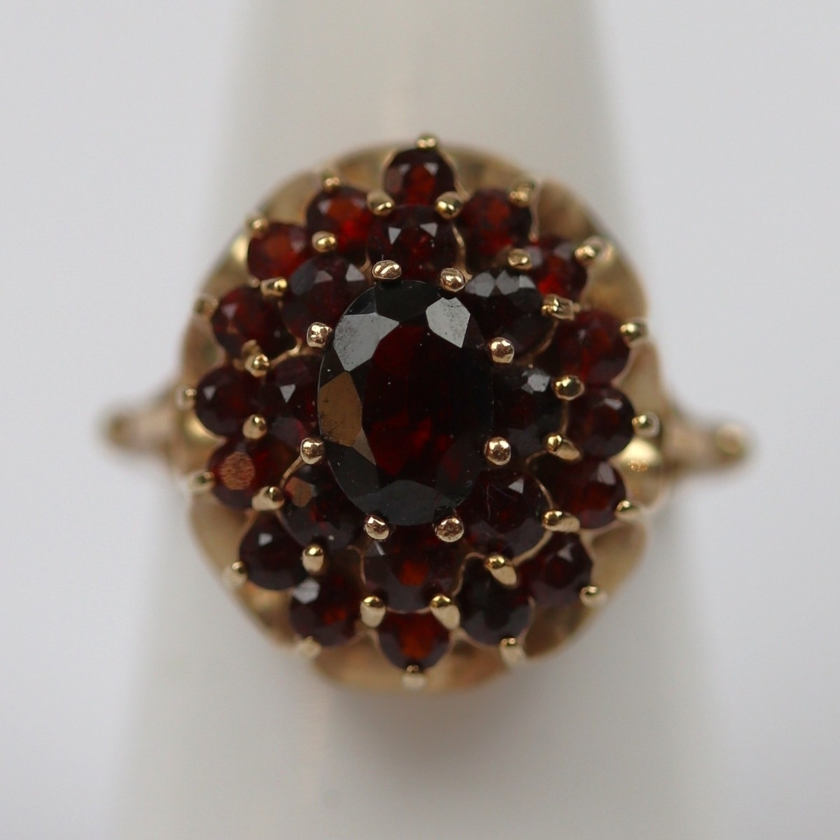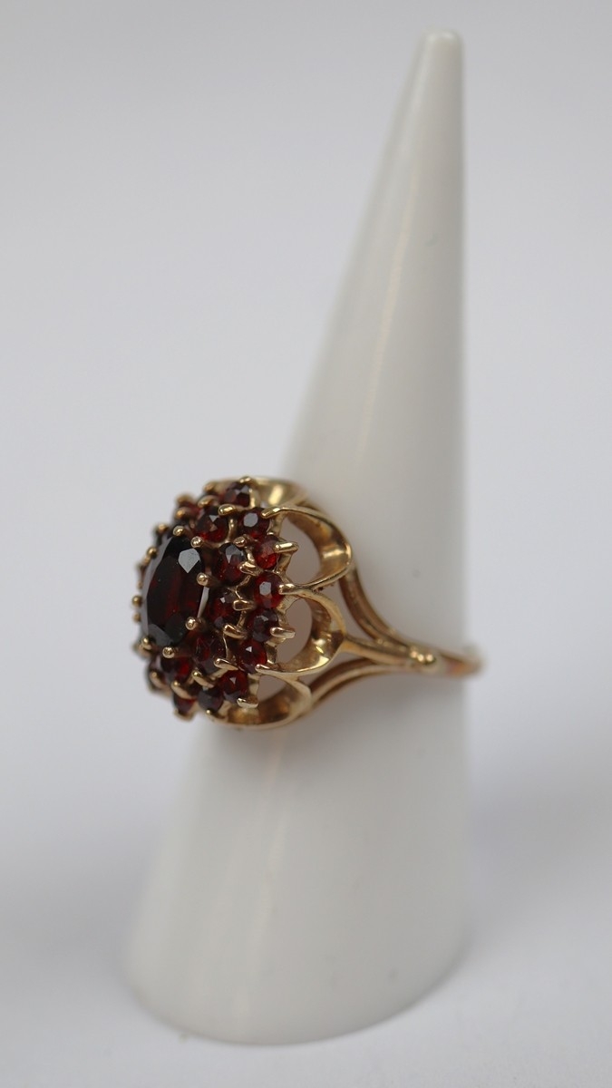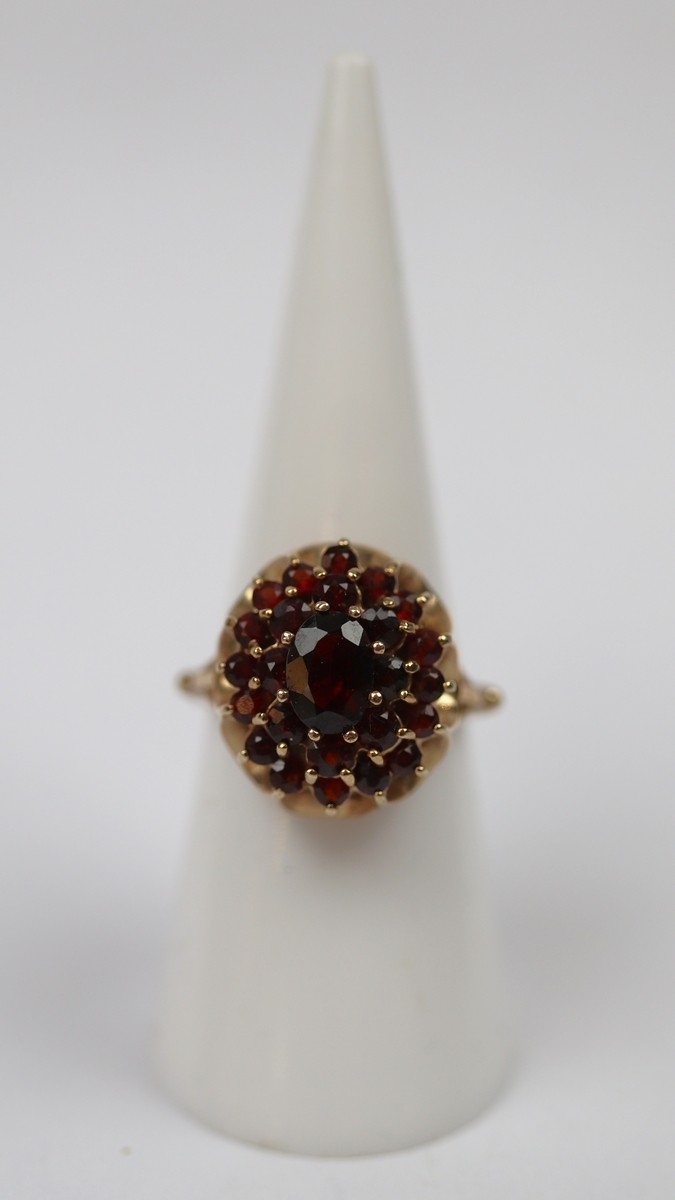 9ct gold garnet cluster ring - Size M - Approx 4.6g