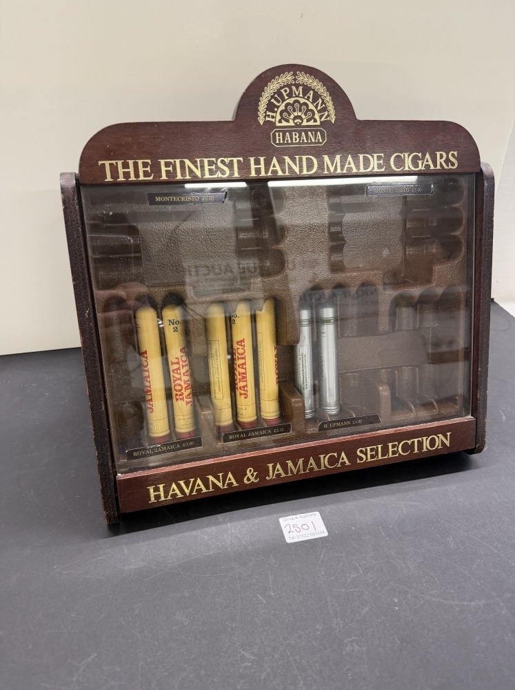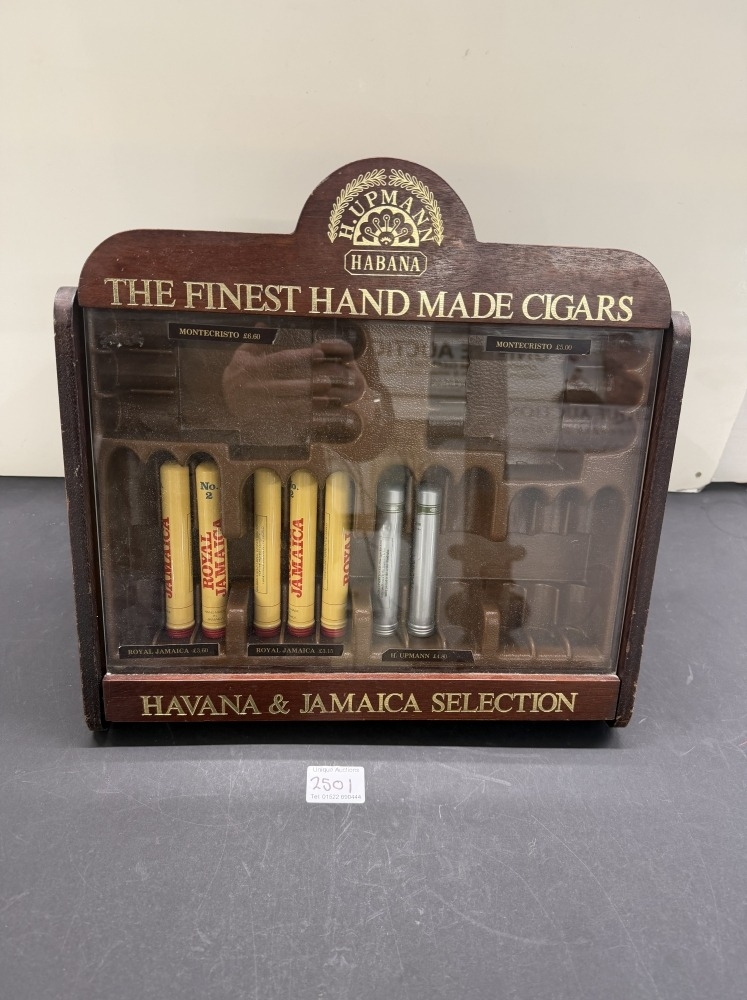 A vintage H.Upman (Habana) cigar counter top display humidor with contents