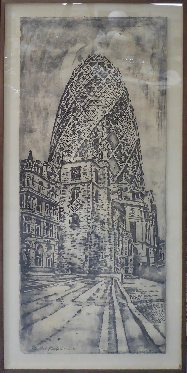 JOSÉ MARIA CANO (Spanish b.1959) 'The Gherkin', 2010, copper plate etching, E/A, signed and dated, 220cm x 93cm, framed and glazed. (Subject to ARR - see Buyers Conditions)