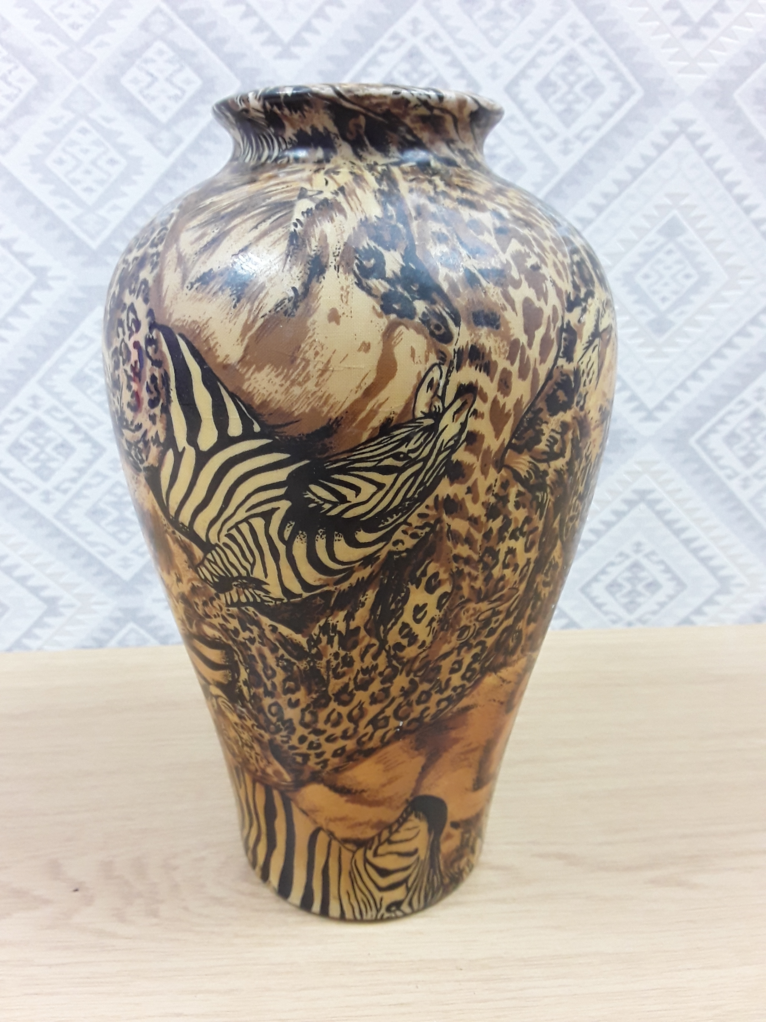 La vie Safari animals wildlife patchwork vase