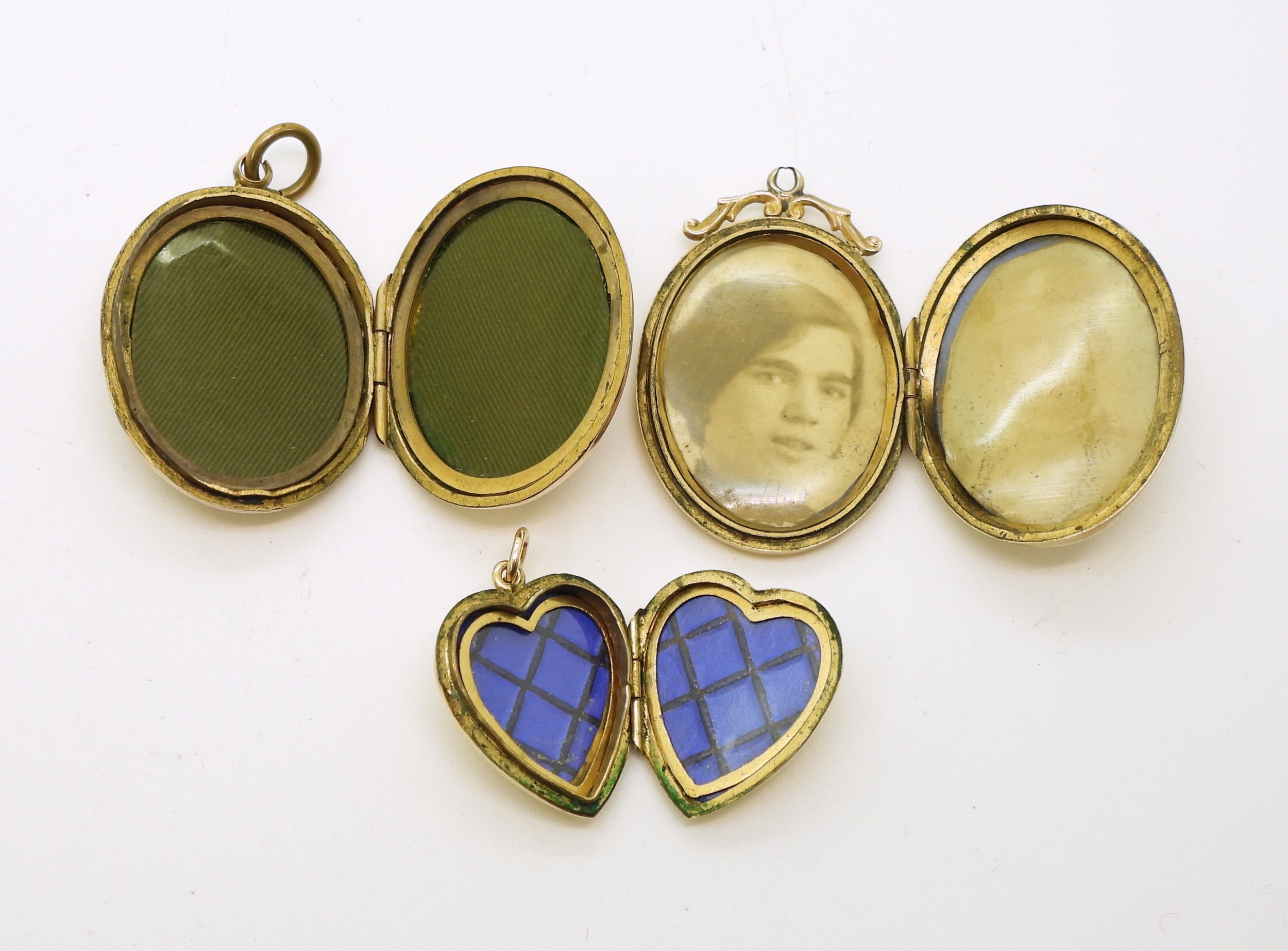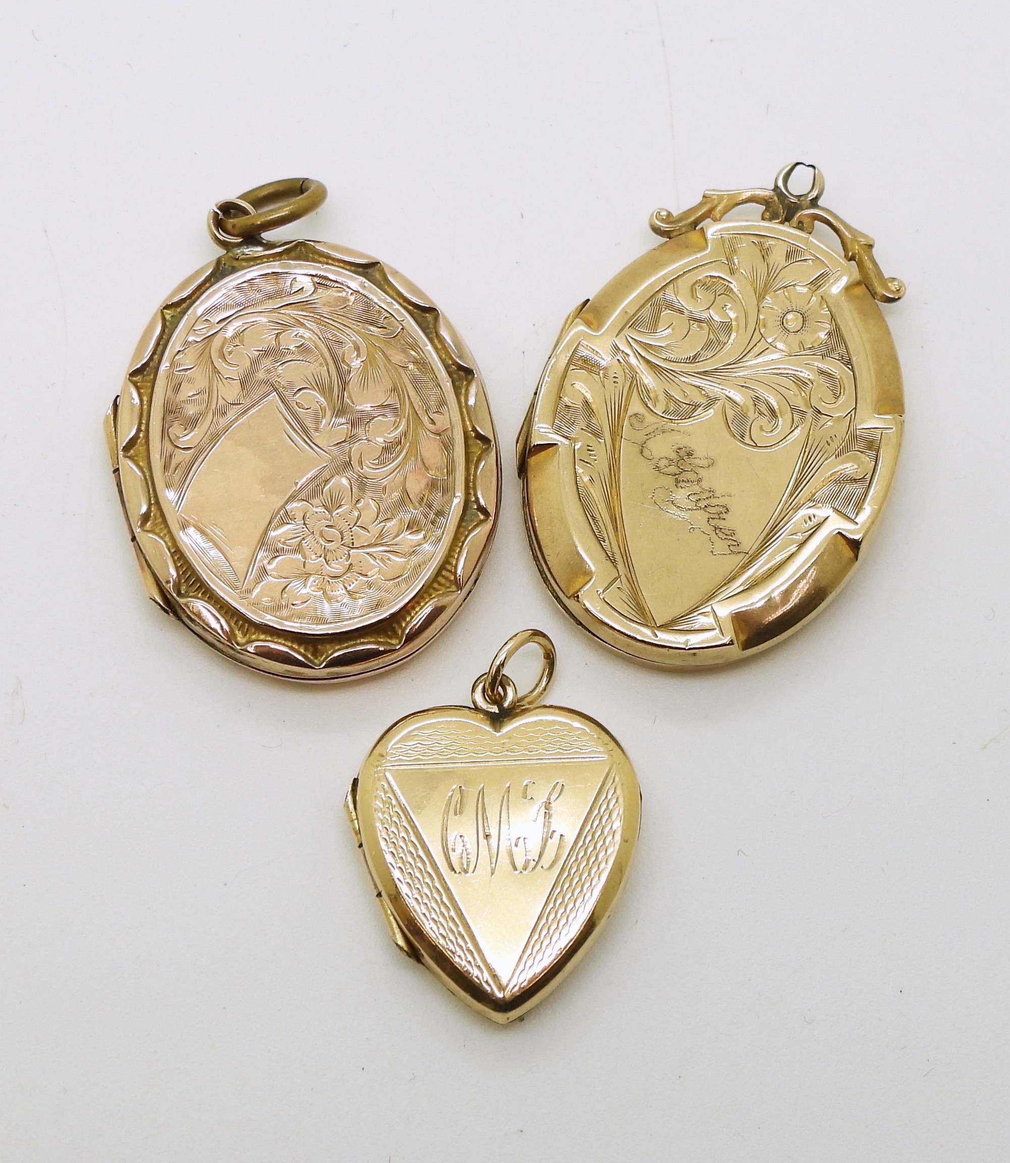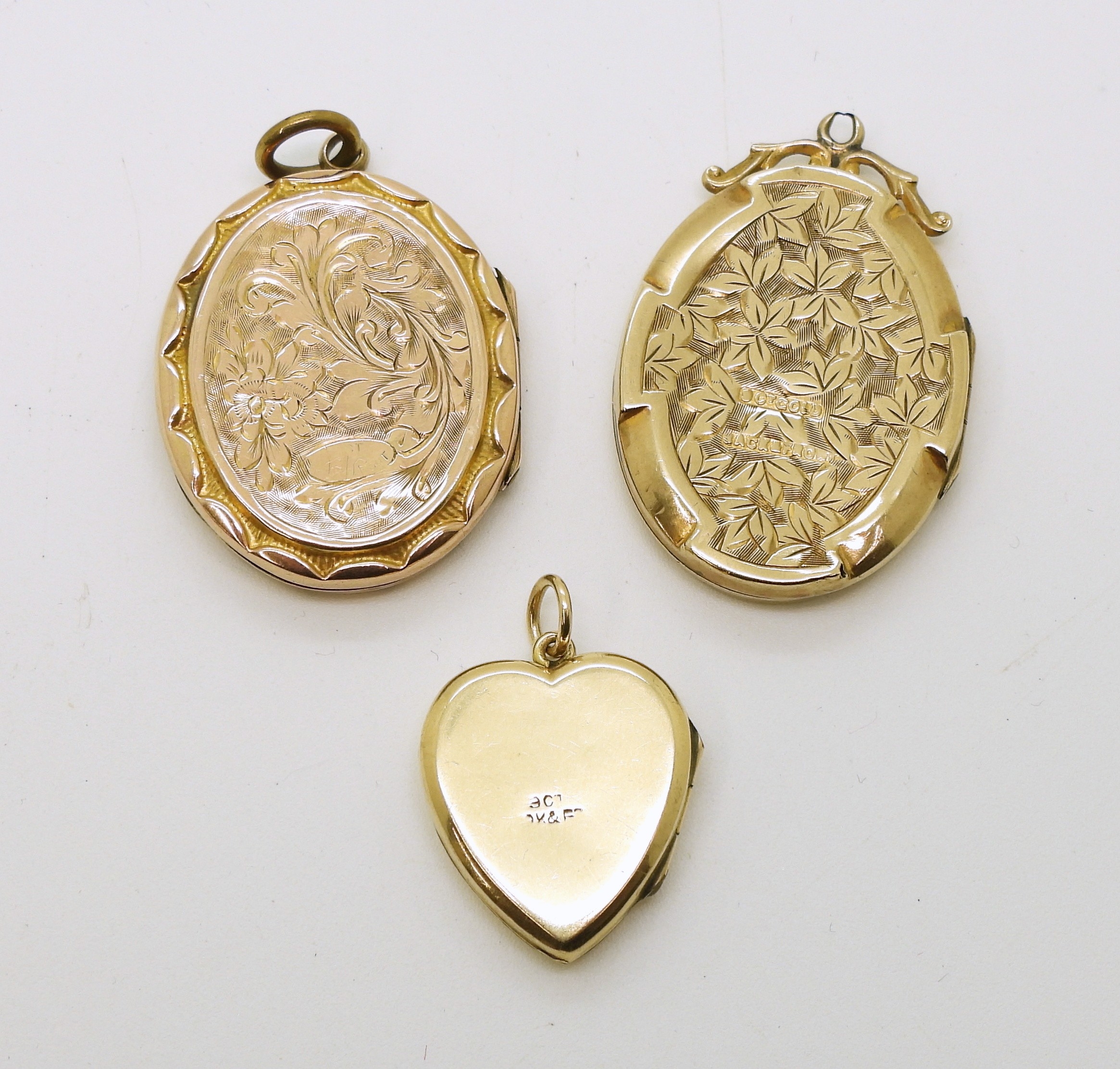 Three 9ct gold, back & front lockets, weight combined 12.8gms