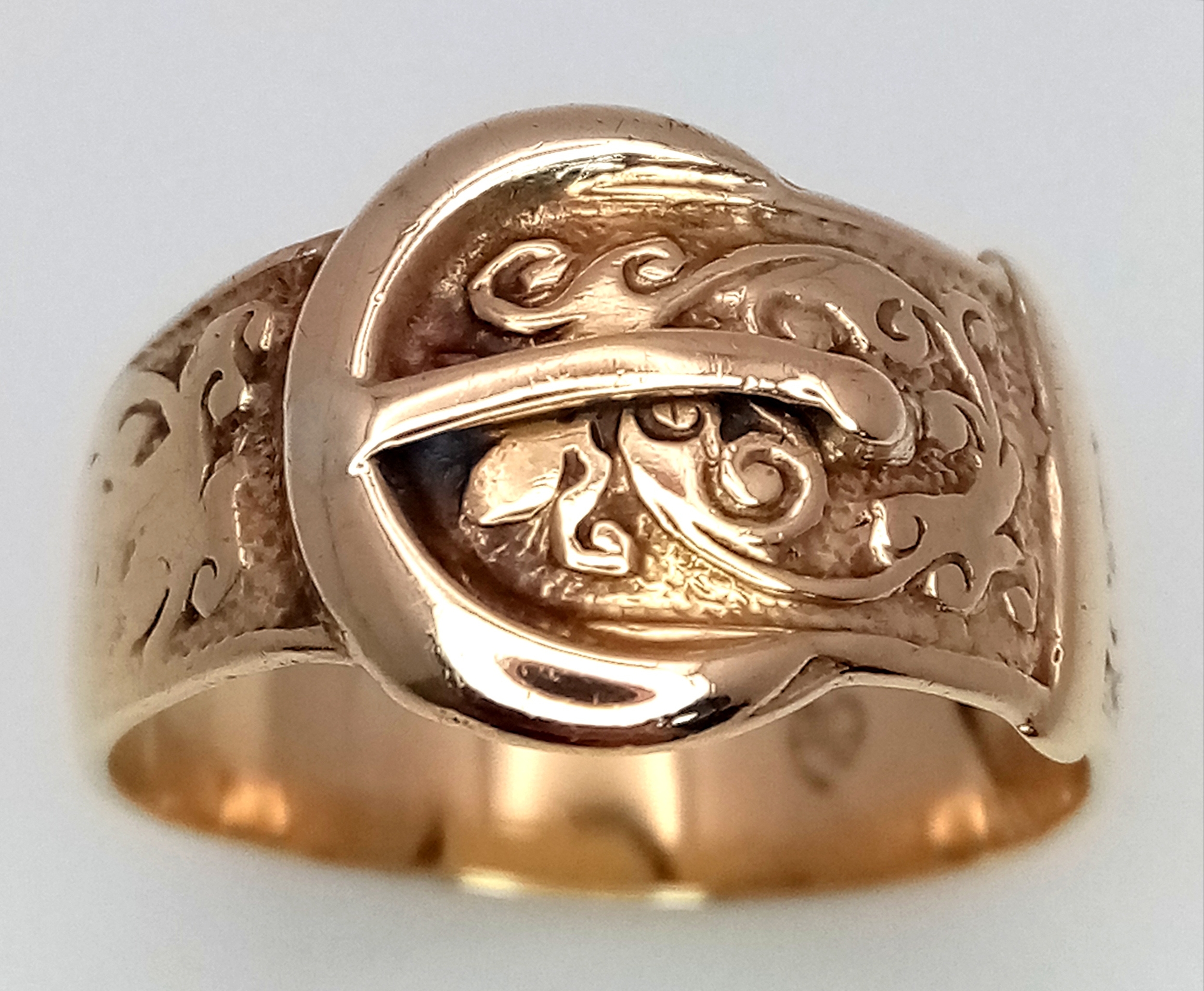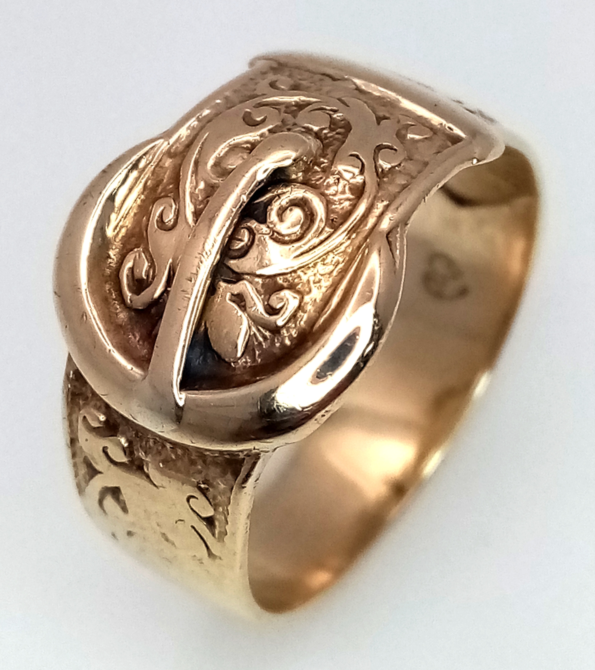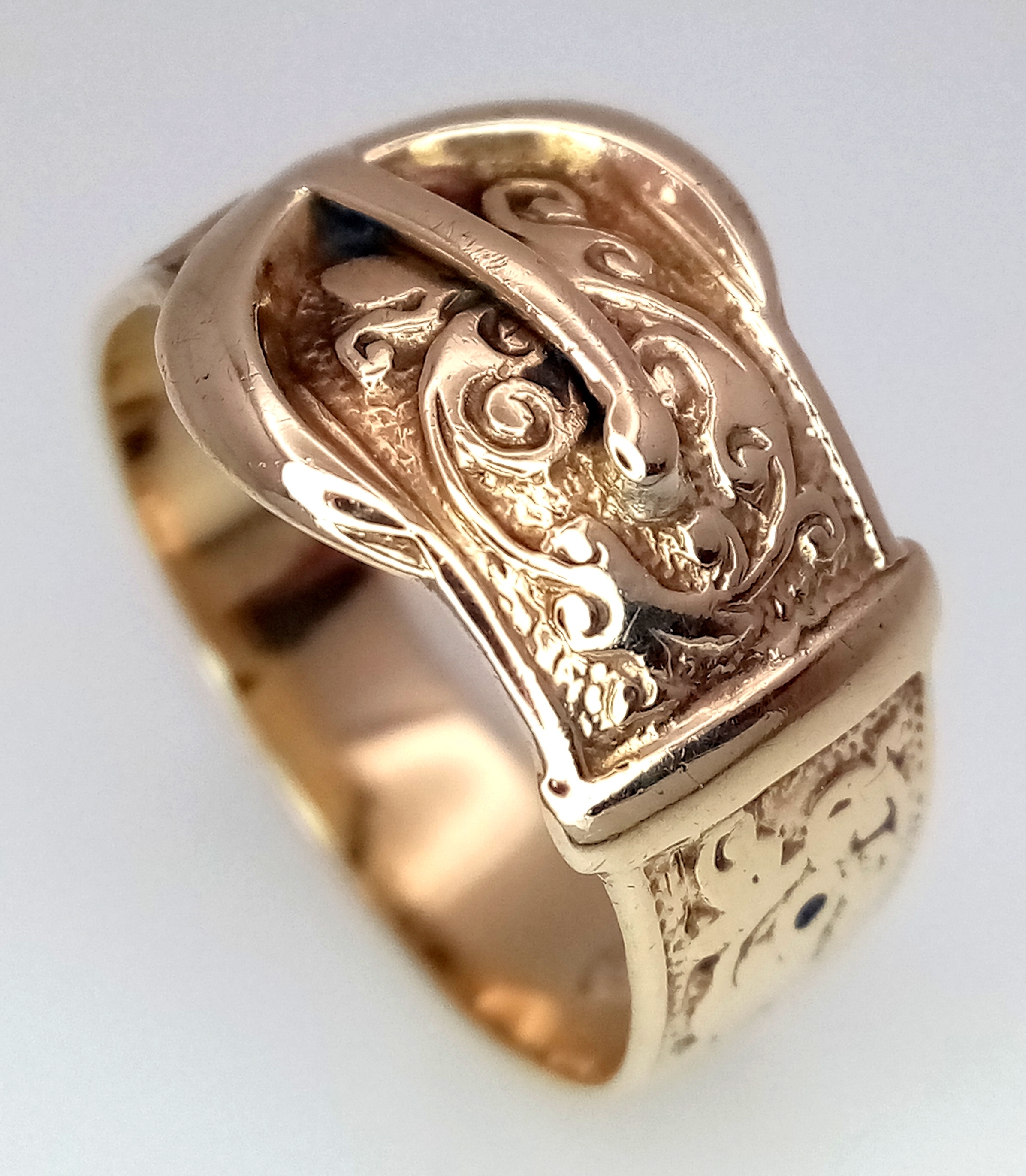 A Vintage 9K Yellow Gold Band Ring in Belt Form. Size L. 3.3...