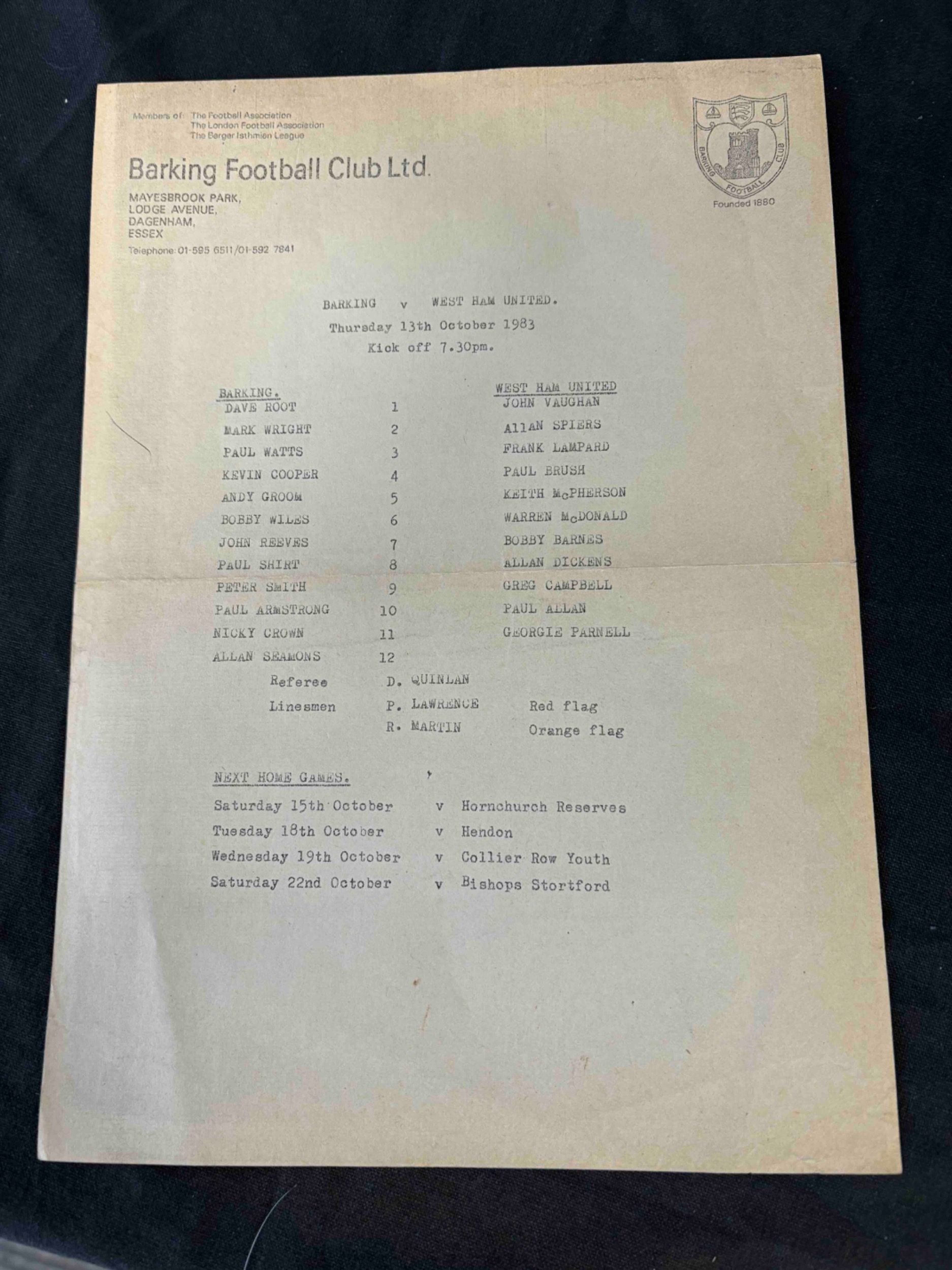 1983 Barking v West Ham United . S/S