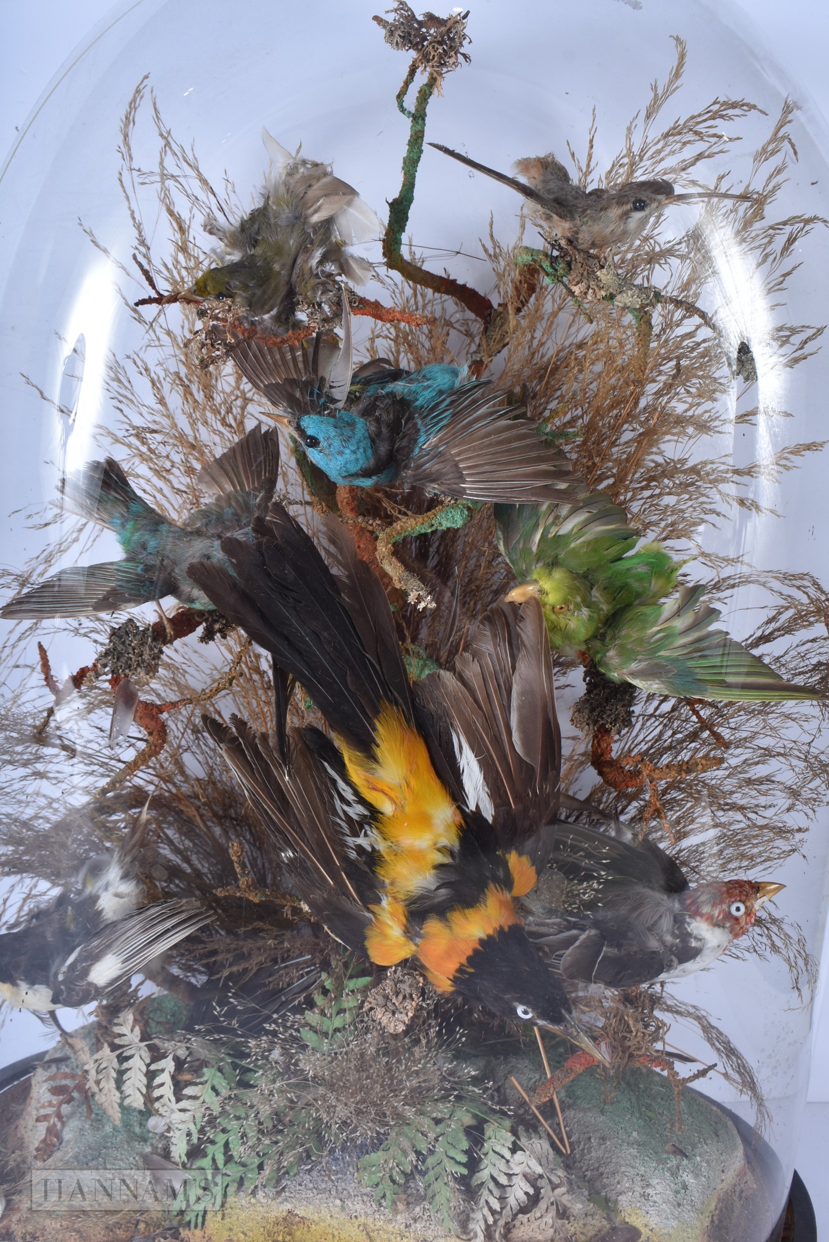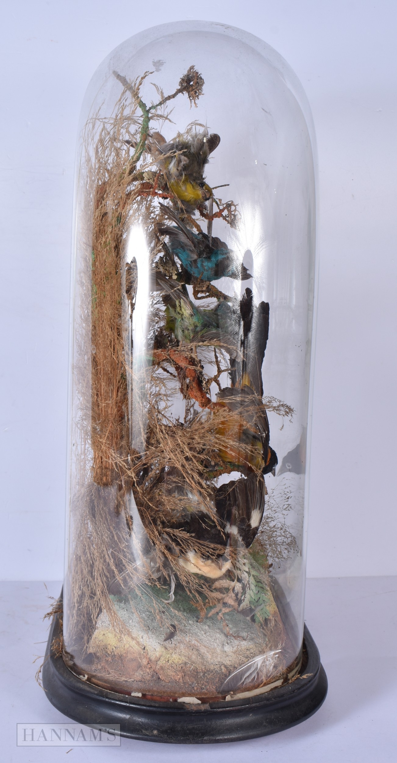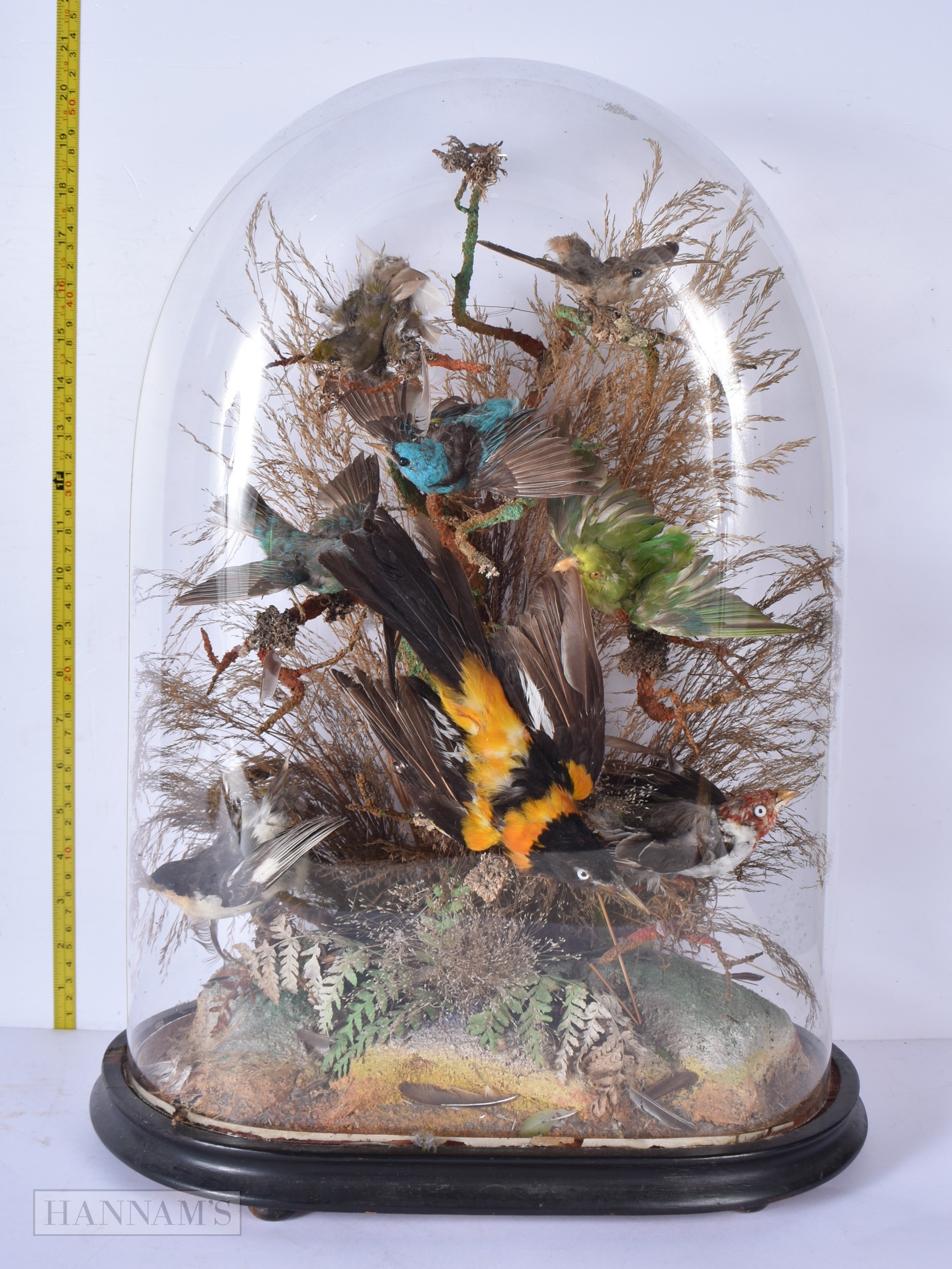 A glass cased Taxidermy collection of birds 52 x 36cm