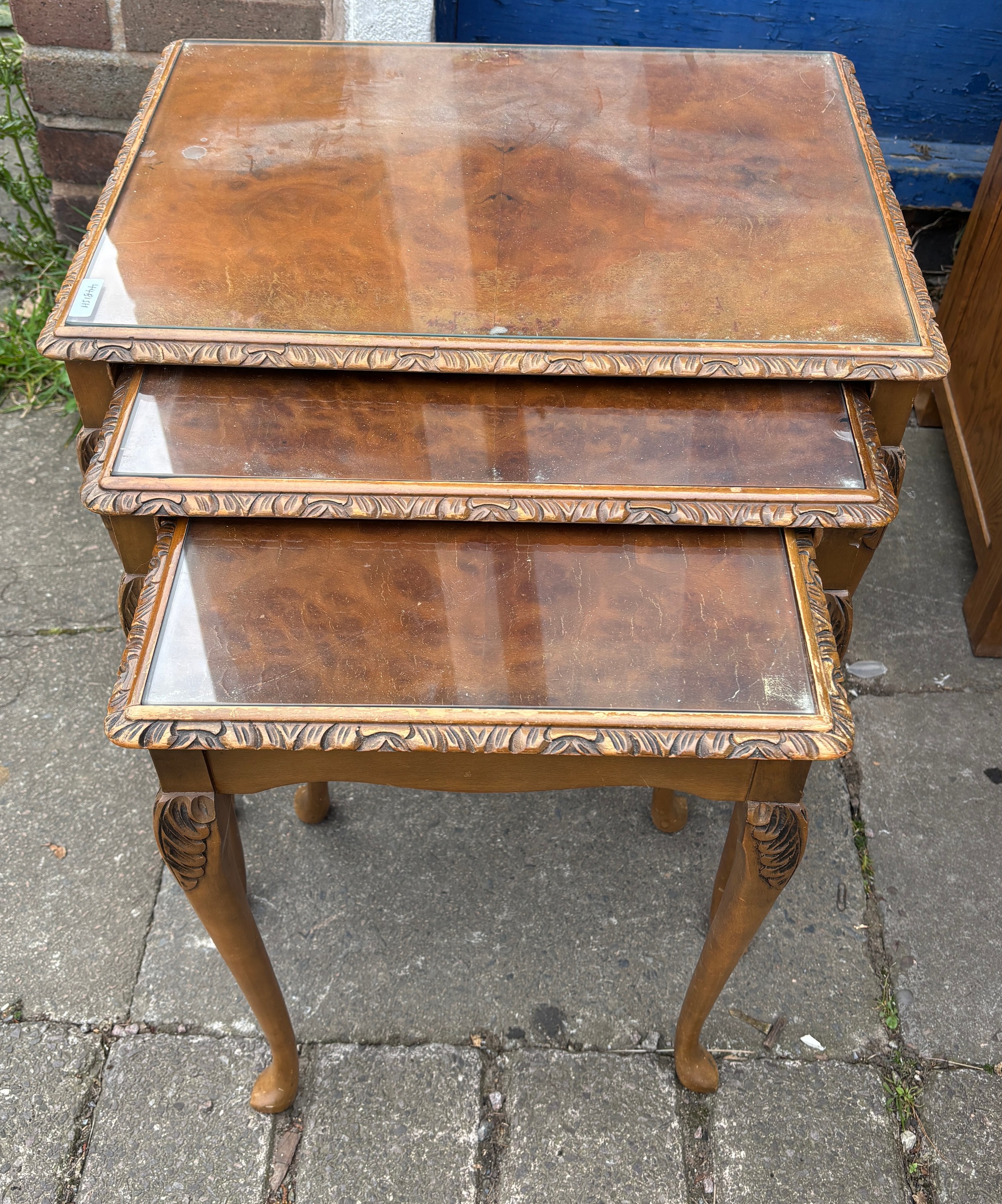 NEST OF CARVED WALNUT CABRIOLE LEG TABLES