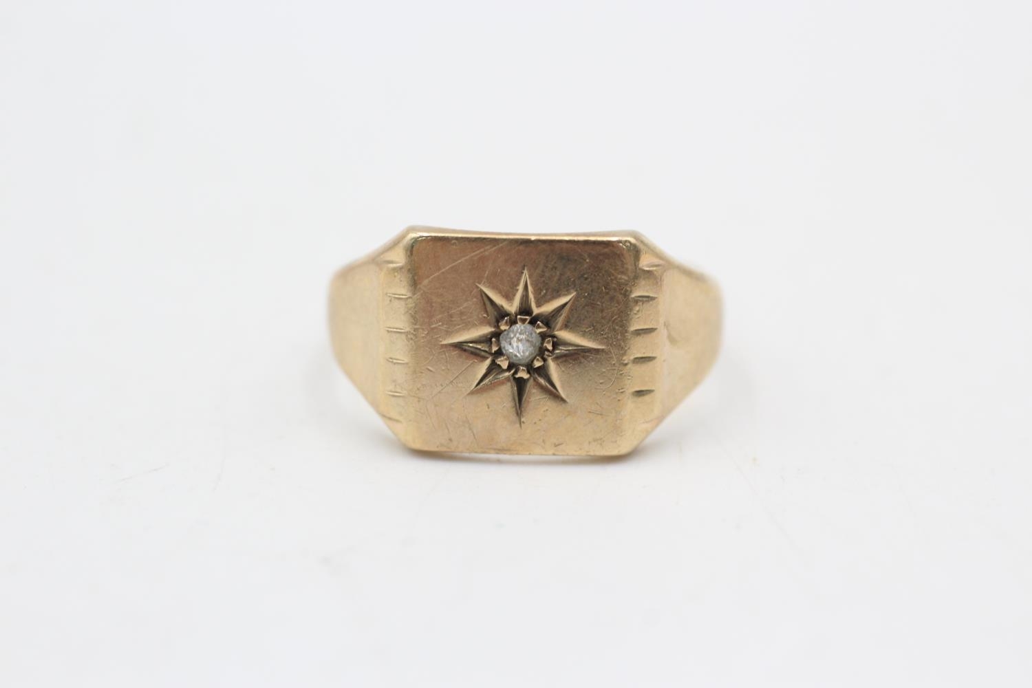 9ct gold vintage diamond set signet ring (4g) Size N