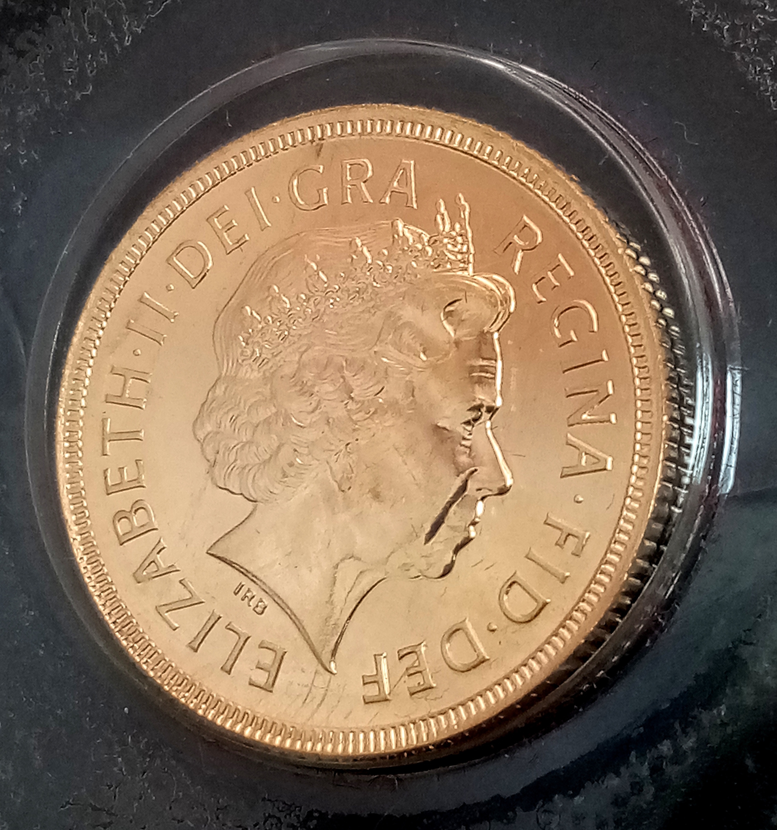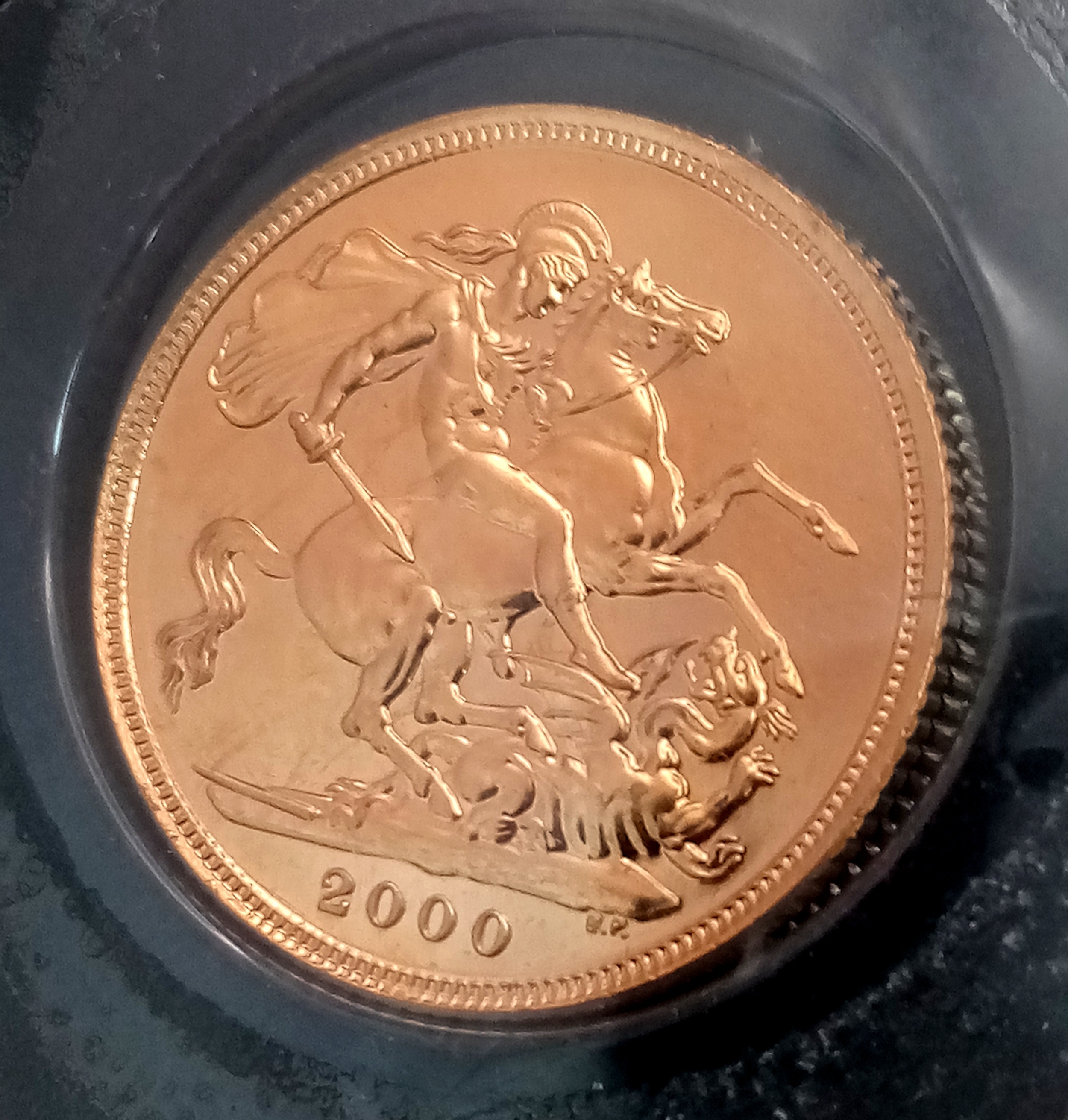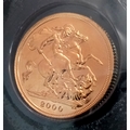 A 2000 Queen Elizabeth II Full Gold Sovereign coin. Proof condition. With case.