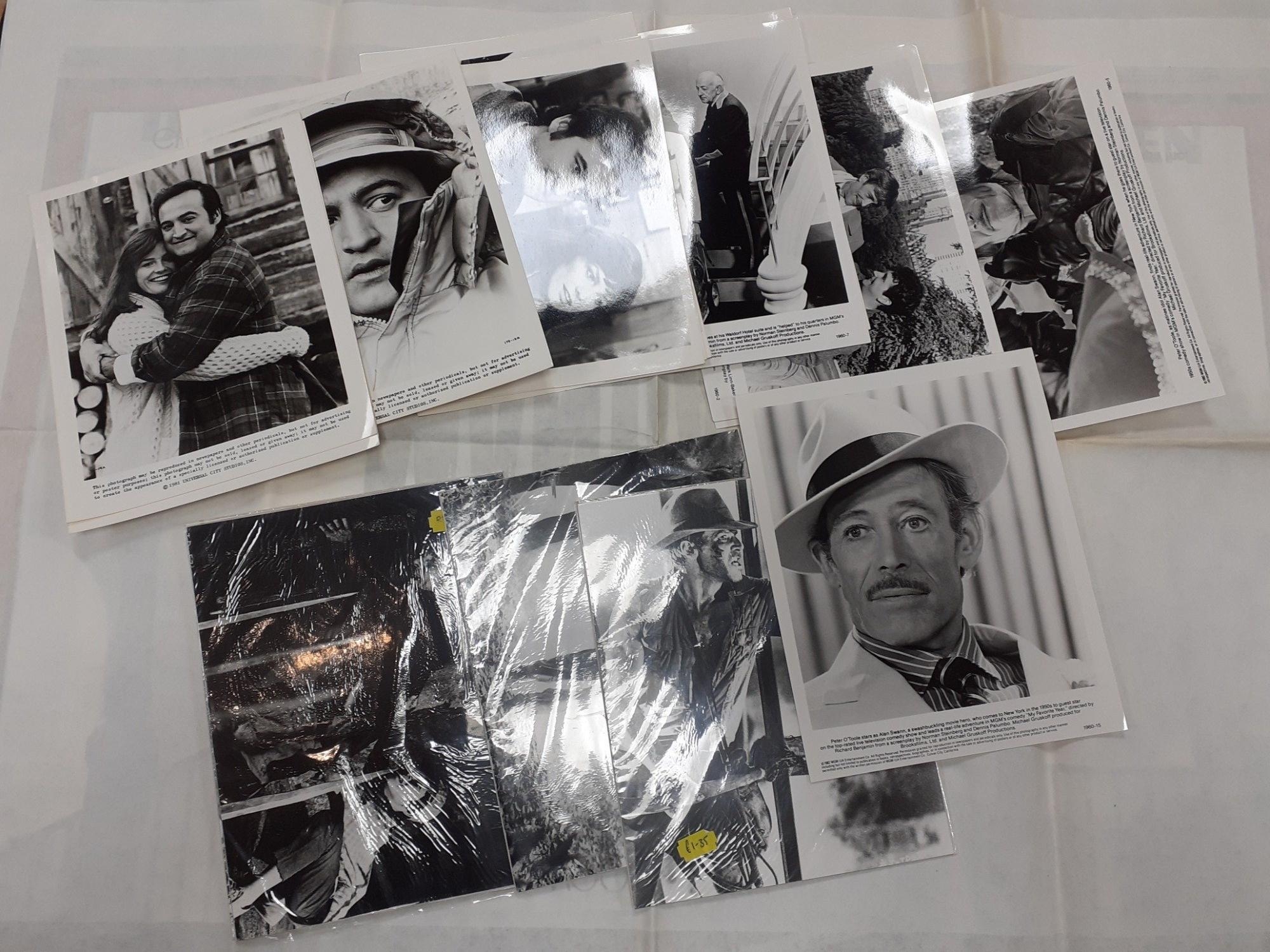 A collection of vintage promotional LOBBY CARD photographs to include 1981 JOHN BELUSHI x 9, PETER O'TOOLE x 6 and packs of HARRISON FORD