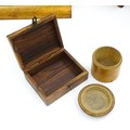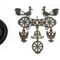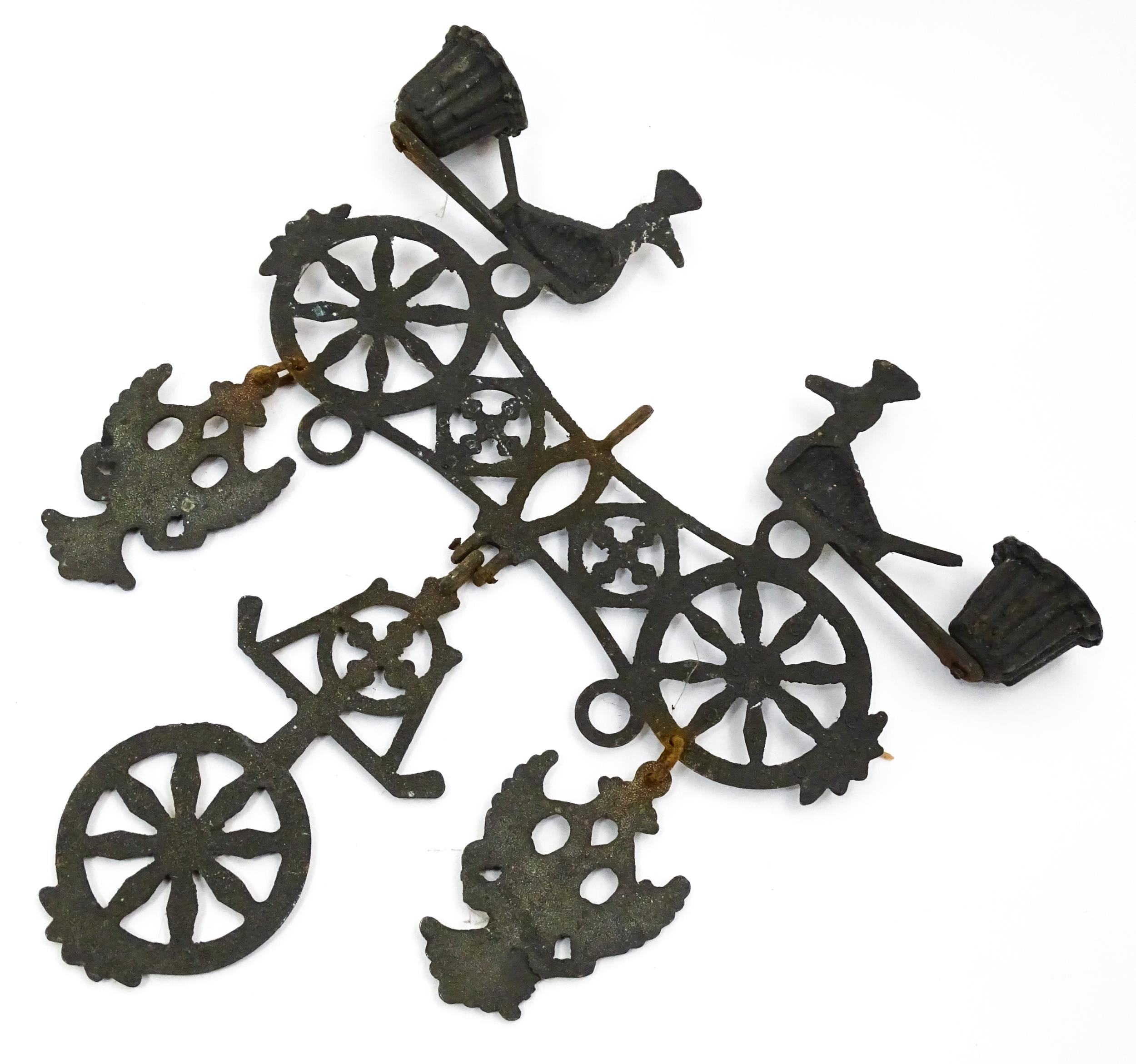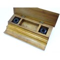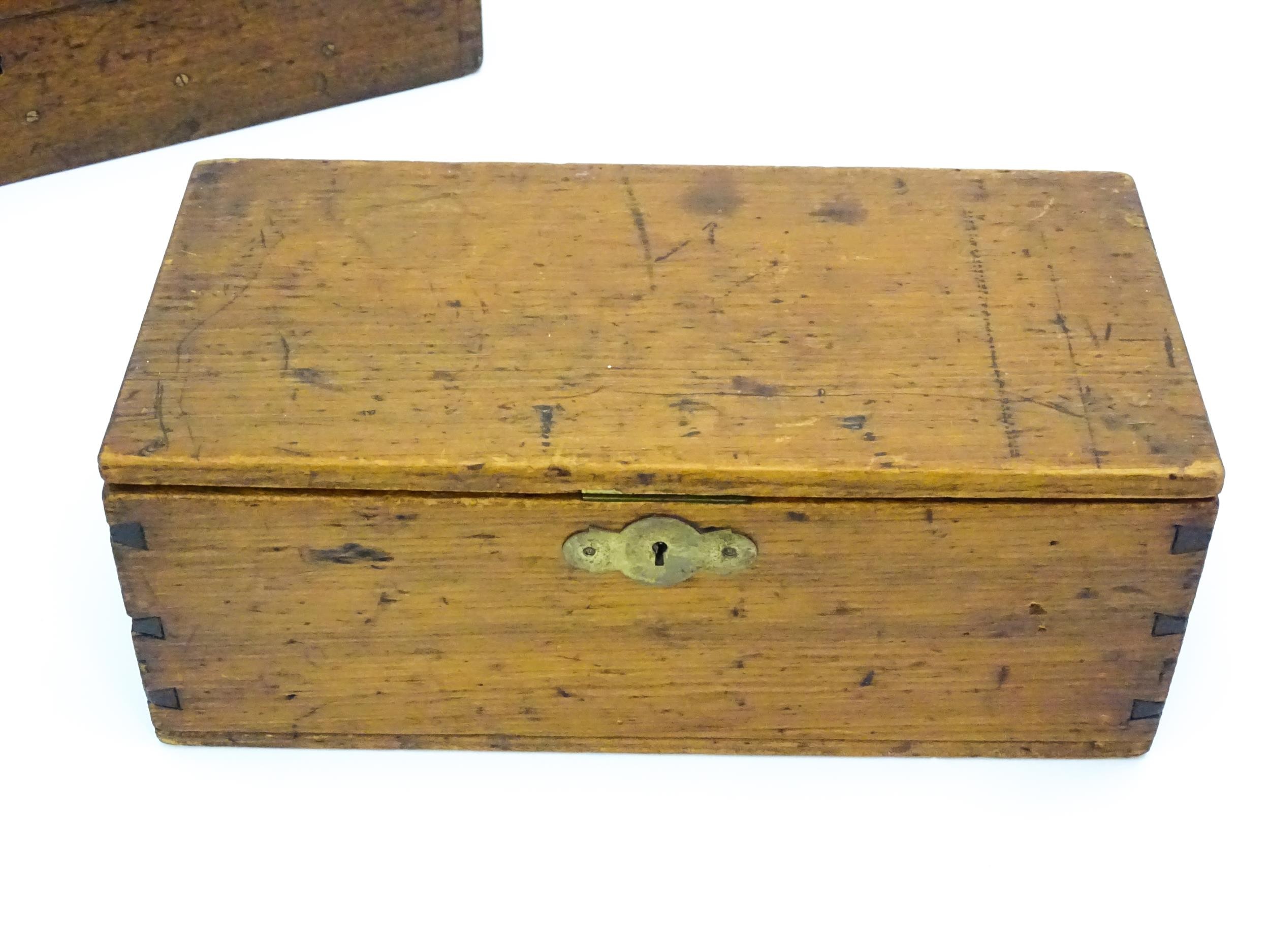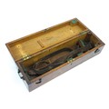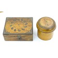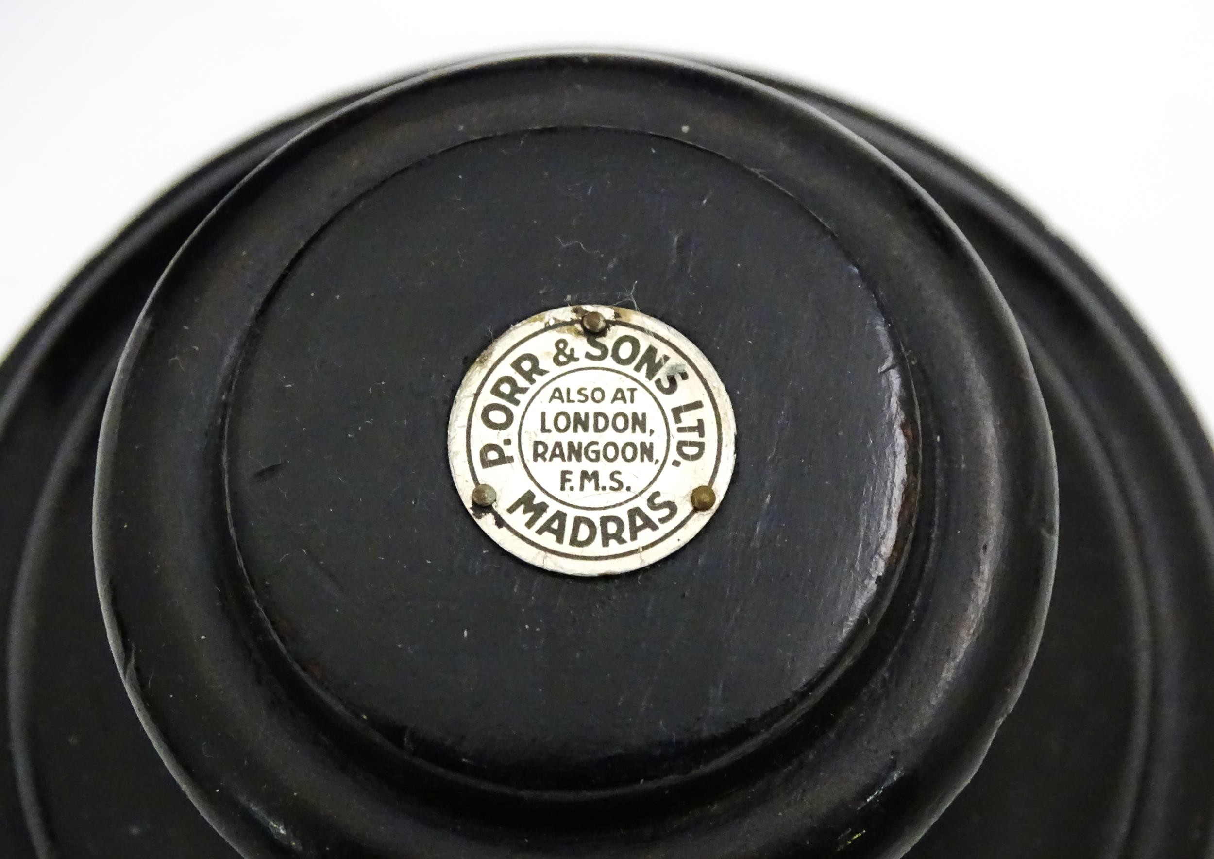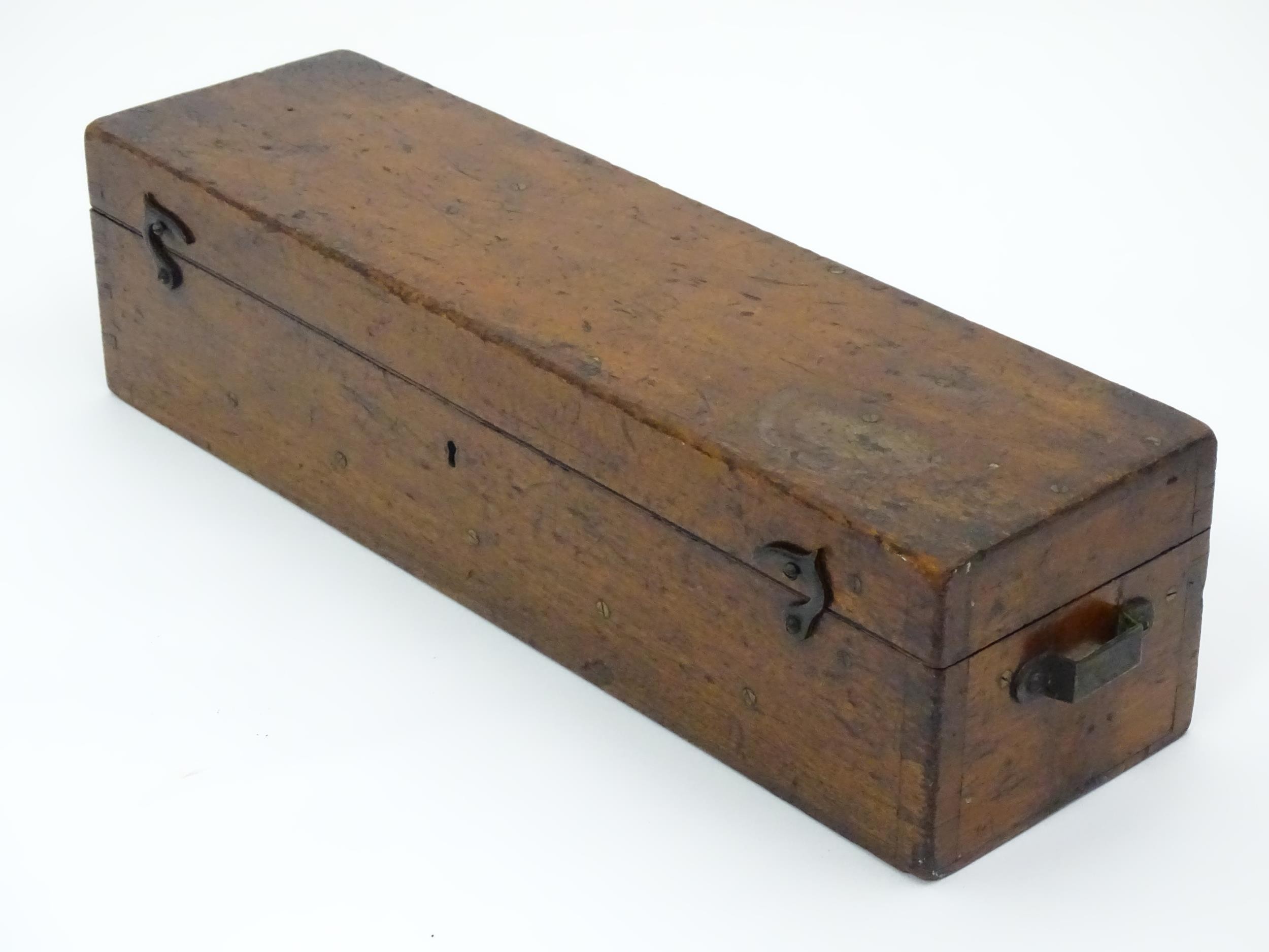 Assorted items to include an oak box with brass handles, a cast wall hanging candle holder with bird detail, a wooden desk stand / standish with marquetry flower detail opening to reveal two inkwells, a mahogany case, ebonised dressing table items to include tray, hair tidy, pot and cover, candlesticks, etc. Largest box approx. 20" long