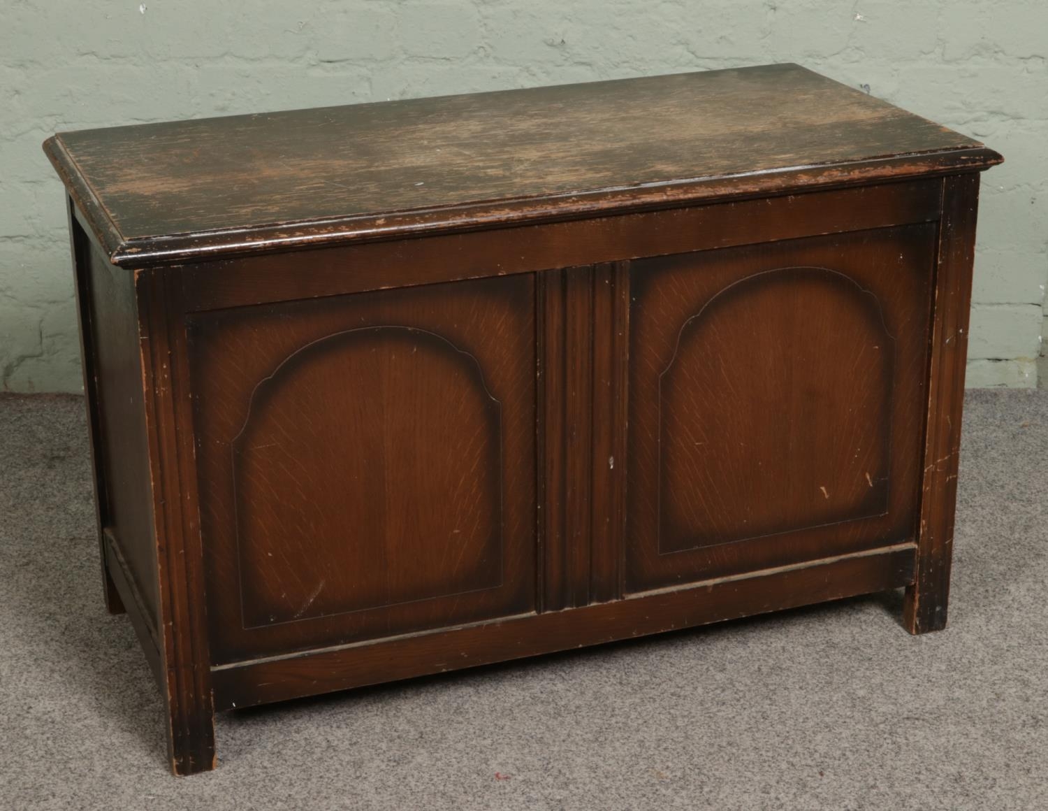 An oak and ply blanket boxHx56cmWx91cmDx44cm