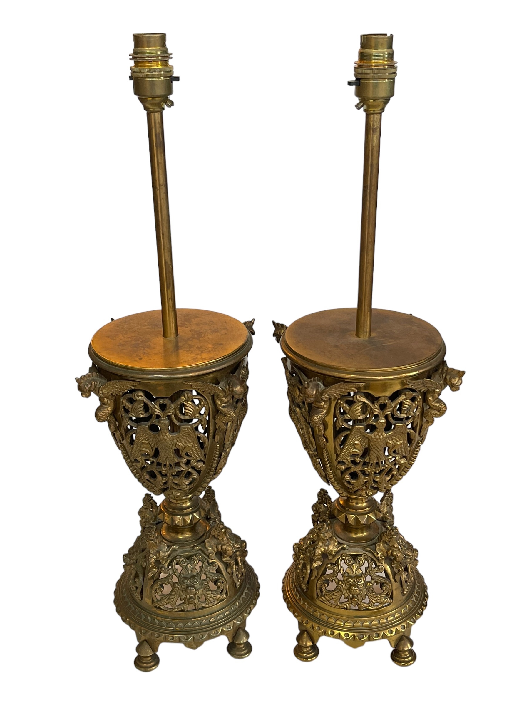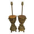 Pair of ornate gilt metal table lamps with dragon decoration, 56cm.