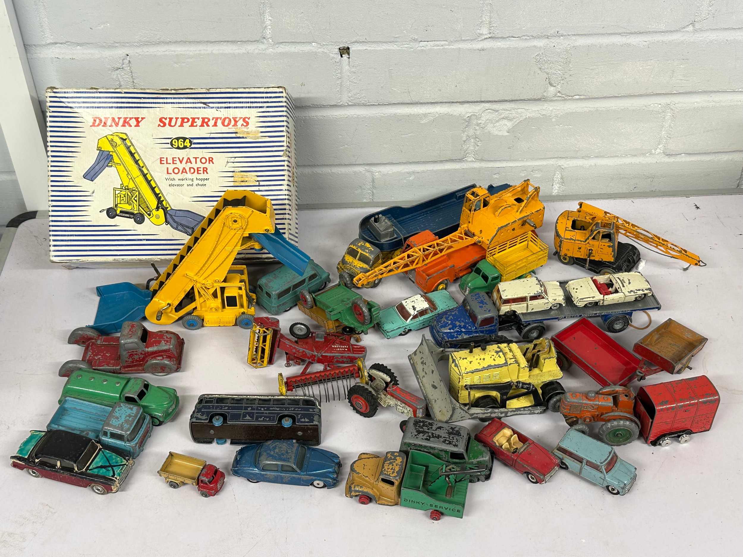 Selection of vintage dinky toys and corgi loose vehicles together with a boxed Dinky 964 elevator loader