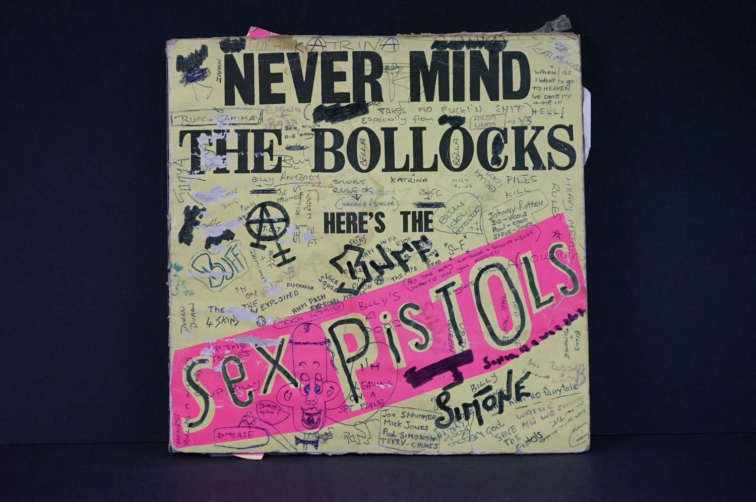 Vinyl - Six punk LP's and one 12" single to include Toy Dolls (VOLT 12), The Damned, Sex Pistols, The Glove, Stranglers. Condition varies significantly throughout.