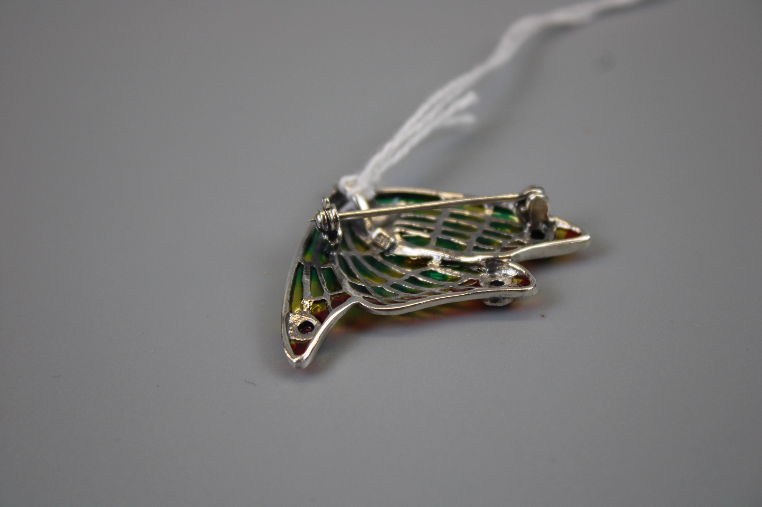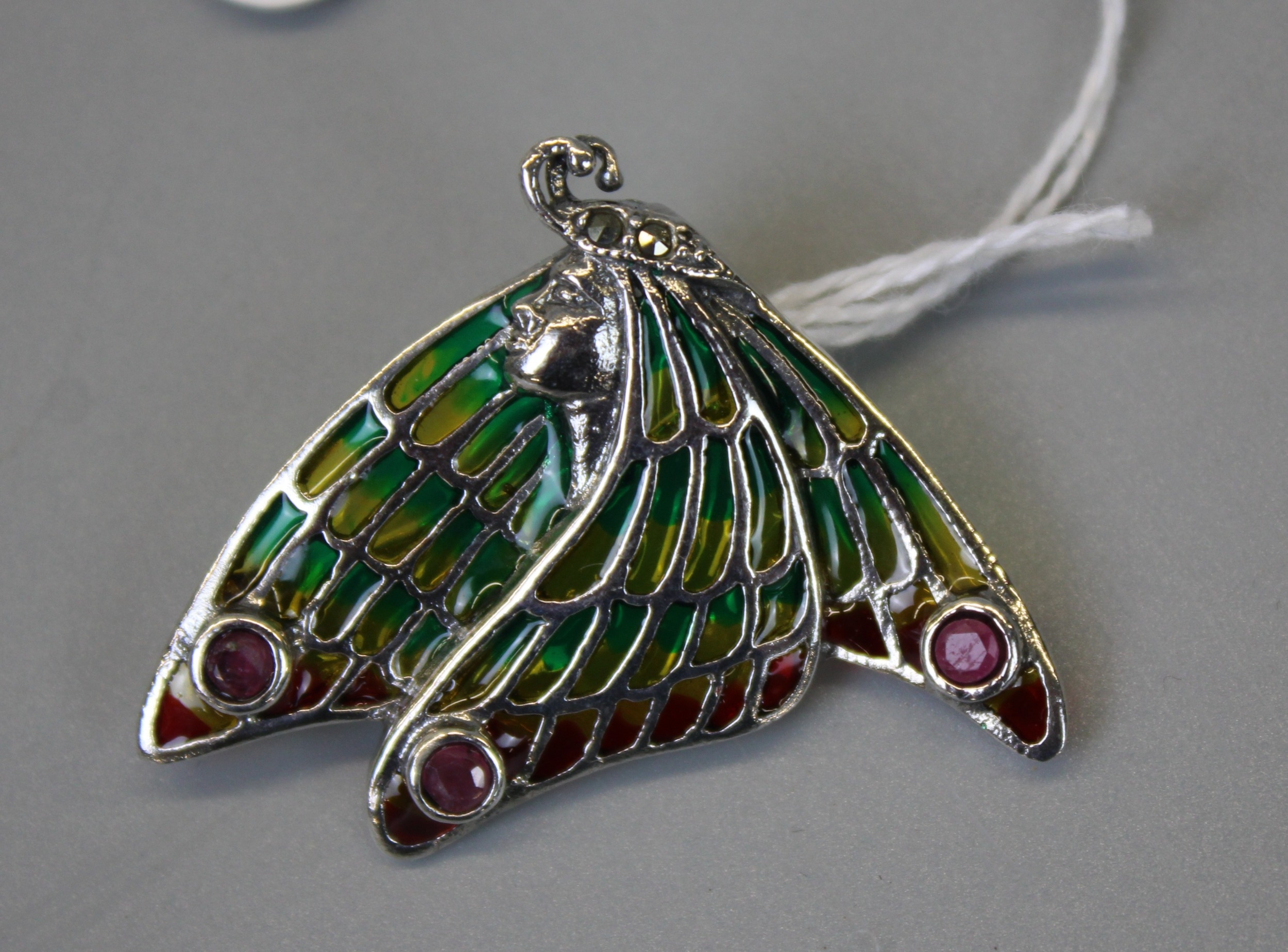 Silver Enamel Fairy Brooch / Pendant Set With Marcasite & Ruby