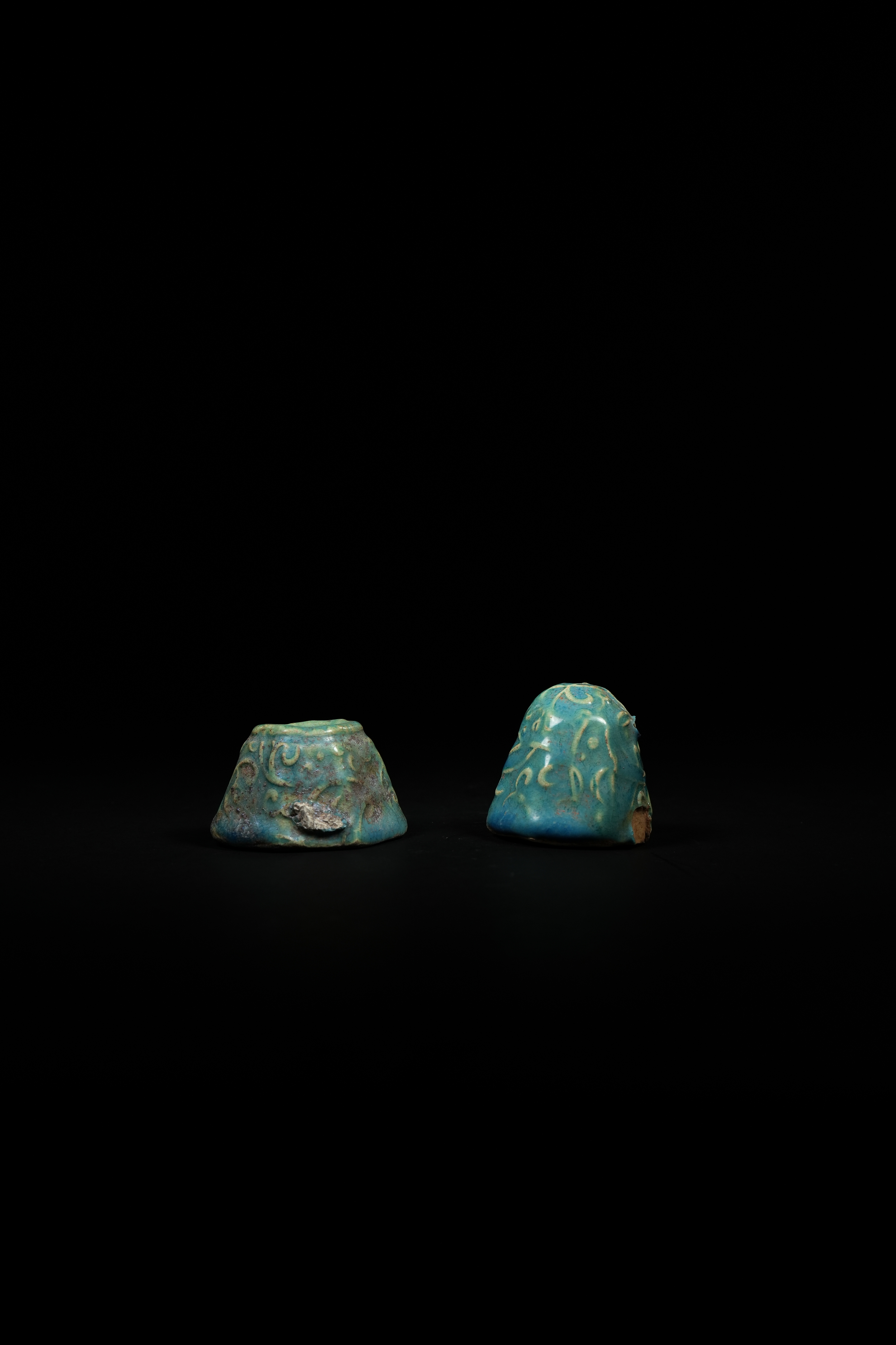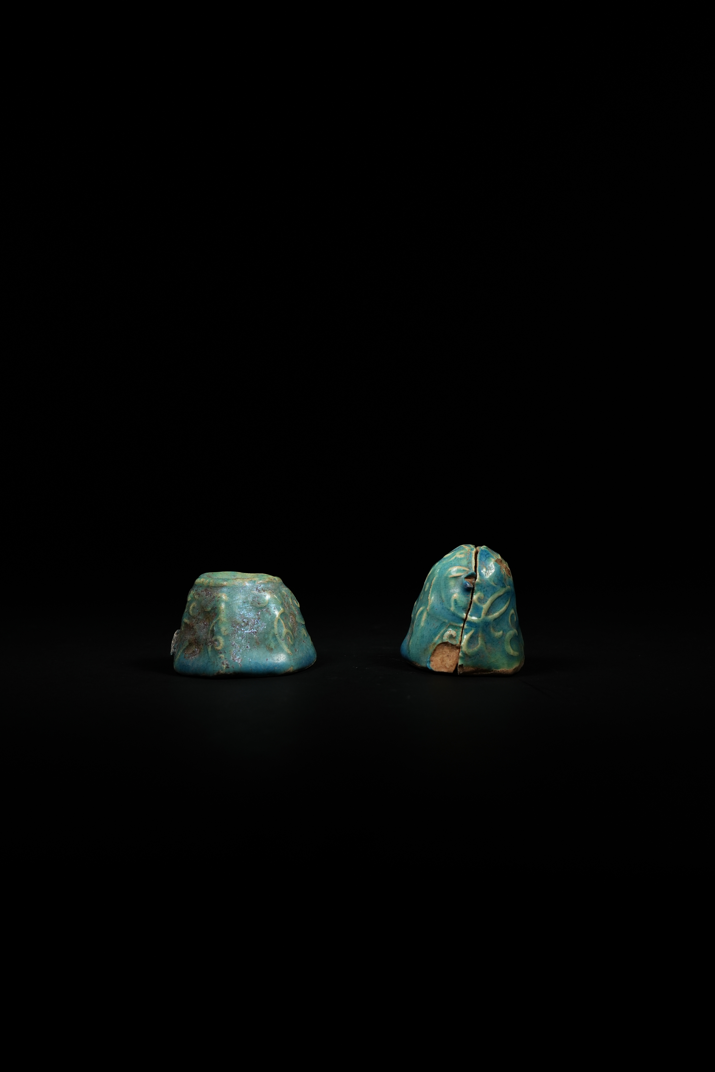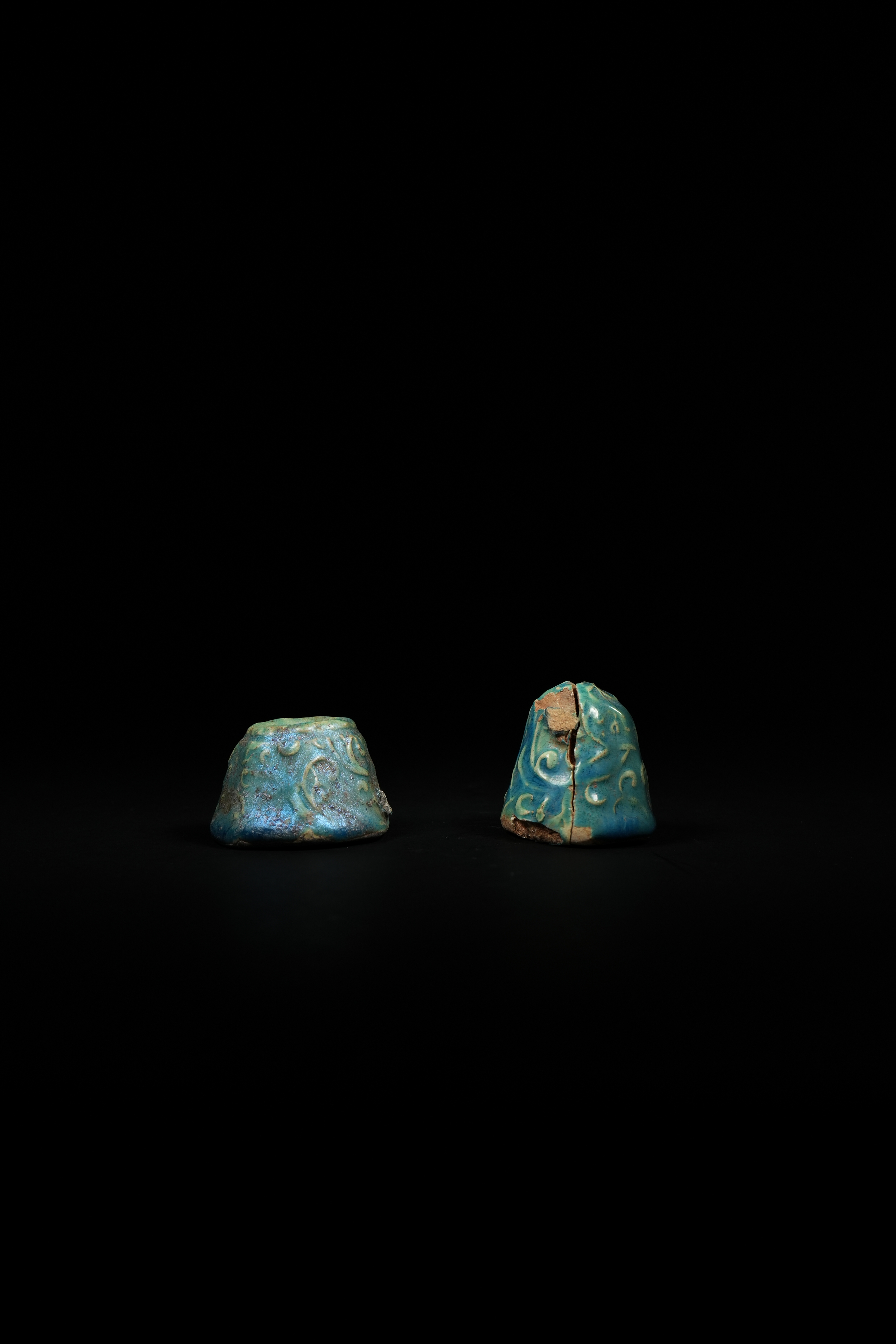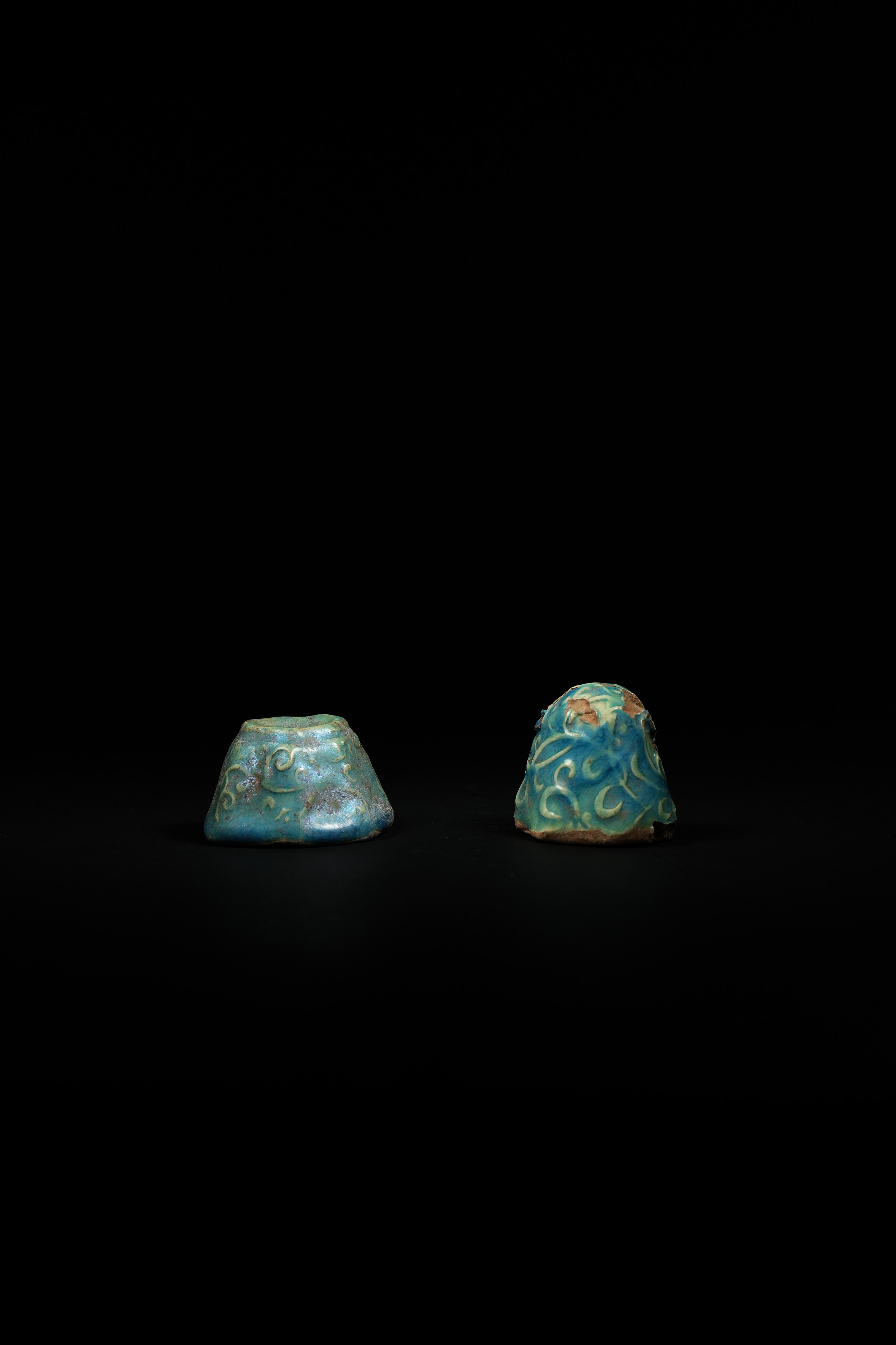 A Pair of Turquoise-Glazed Ceramic Chess Pieces, Possibly Fatimid 12th Century.