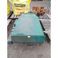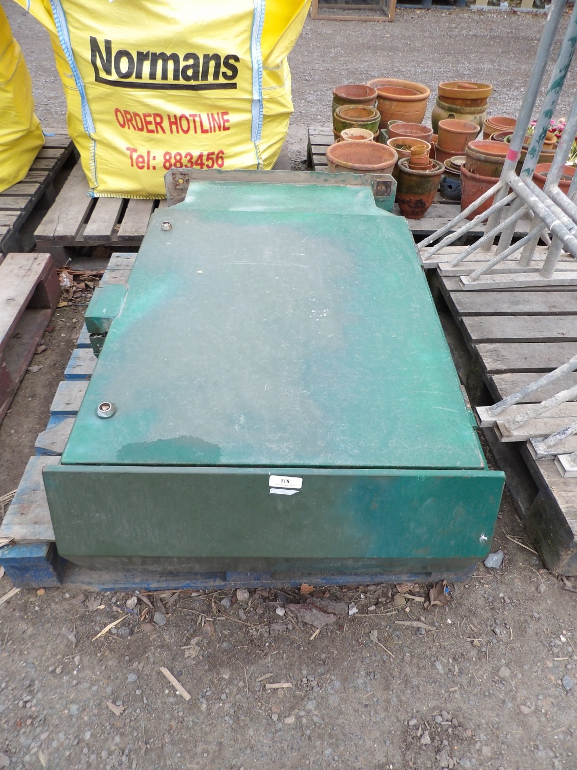 A green metal utilities cabinet