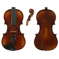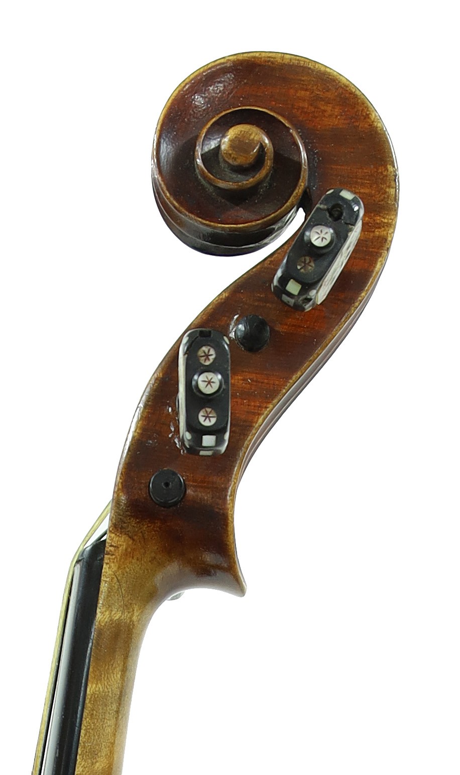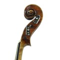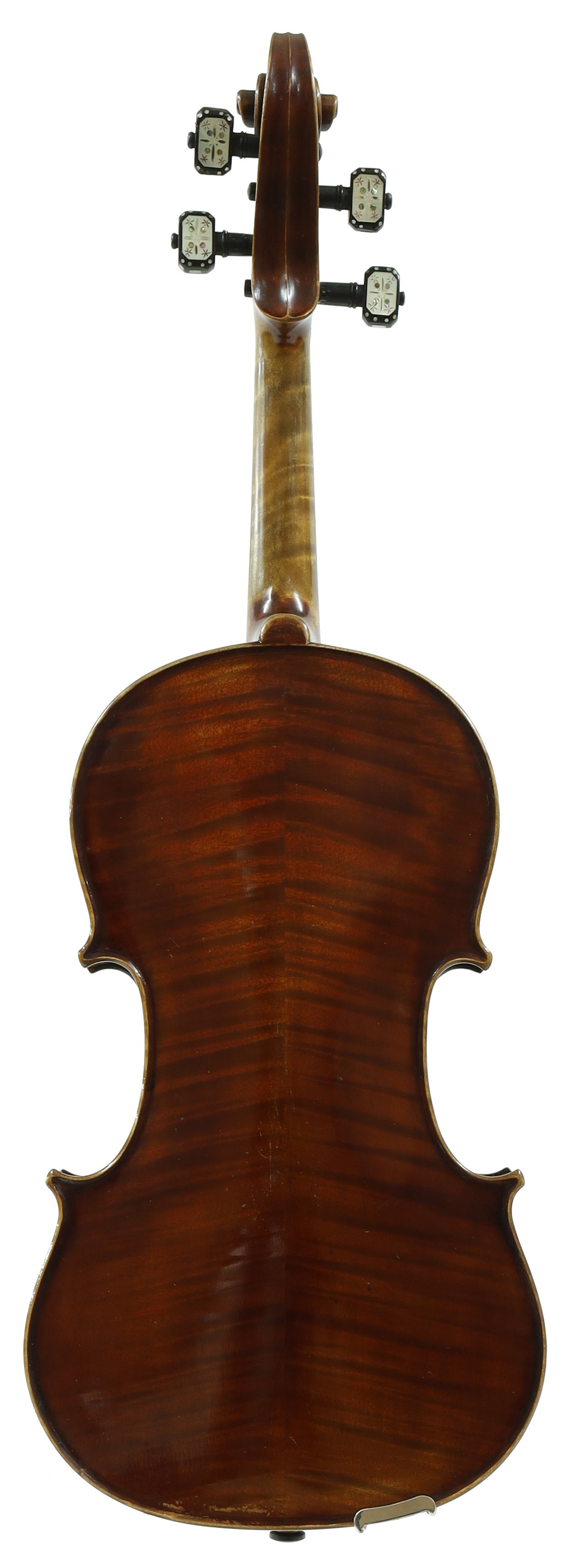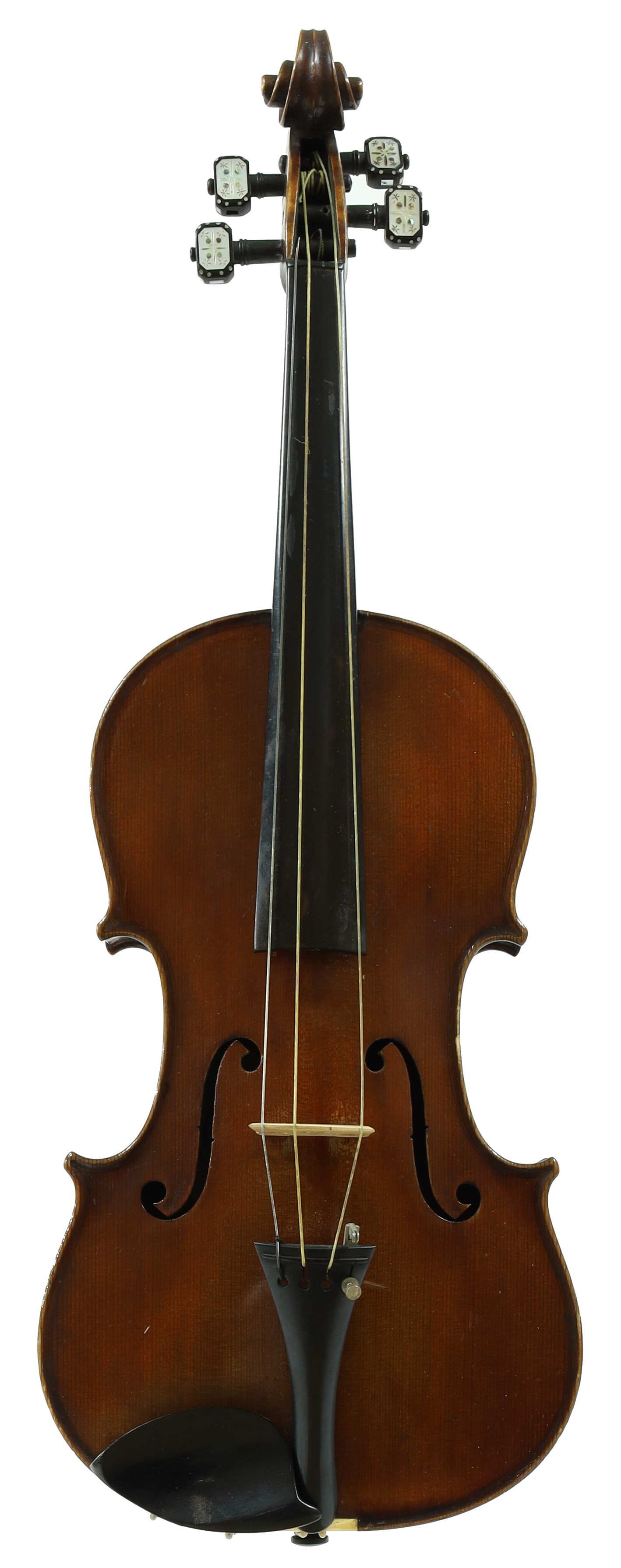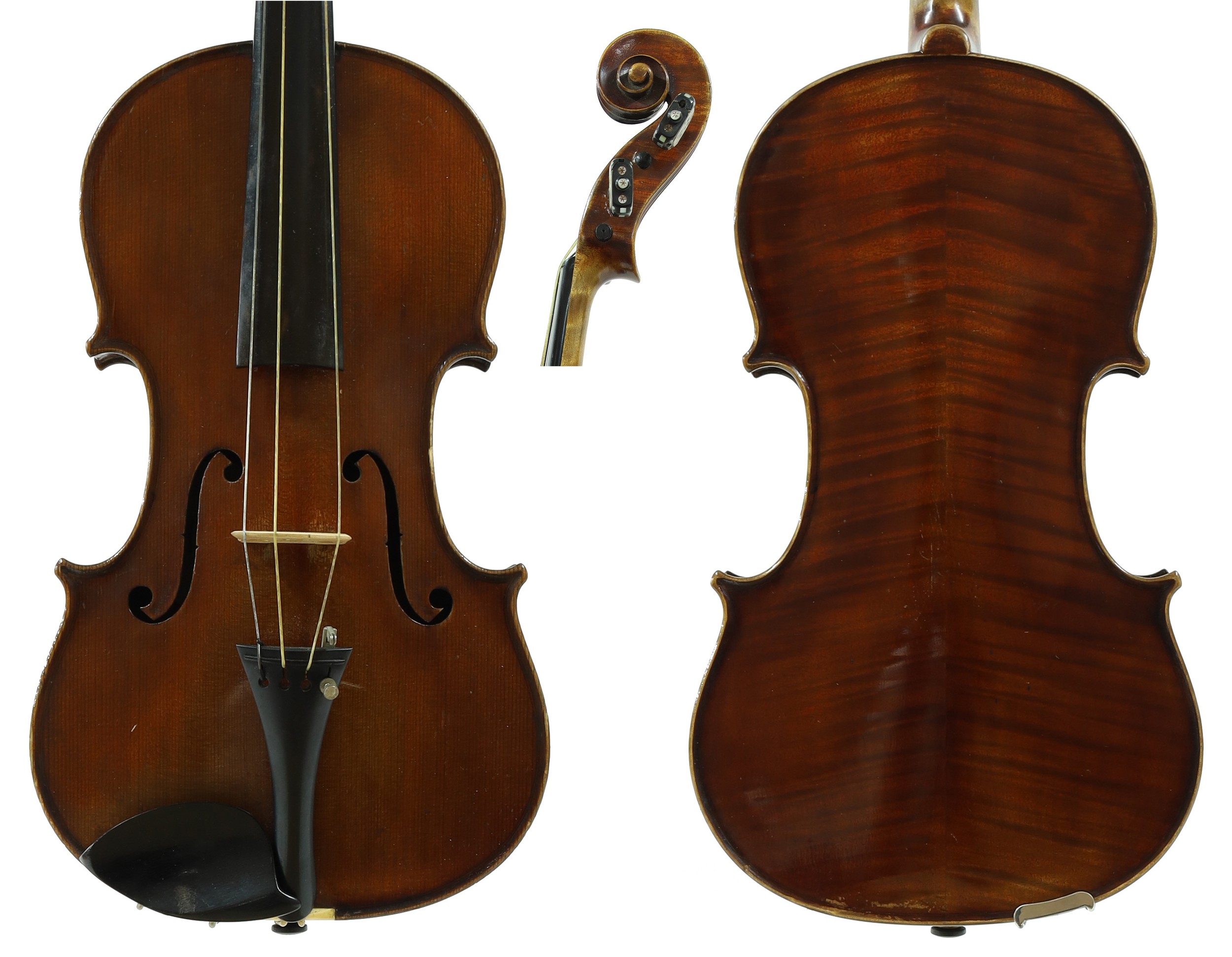 Good violin labelled Richard Peat, Manufacturer and Importer of Every Description of Musical Instruments, Tibshelf, Alfreton, Derbyshire, the one piece back of medium curl with similar wood to the sides and head, the table of a medium width grain and the varnish of a plum red colour on a golden ground, 14 1/16", 35.70cm, bow, case