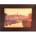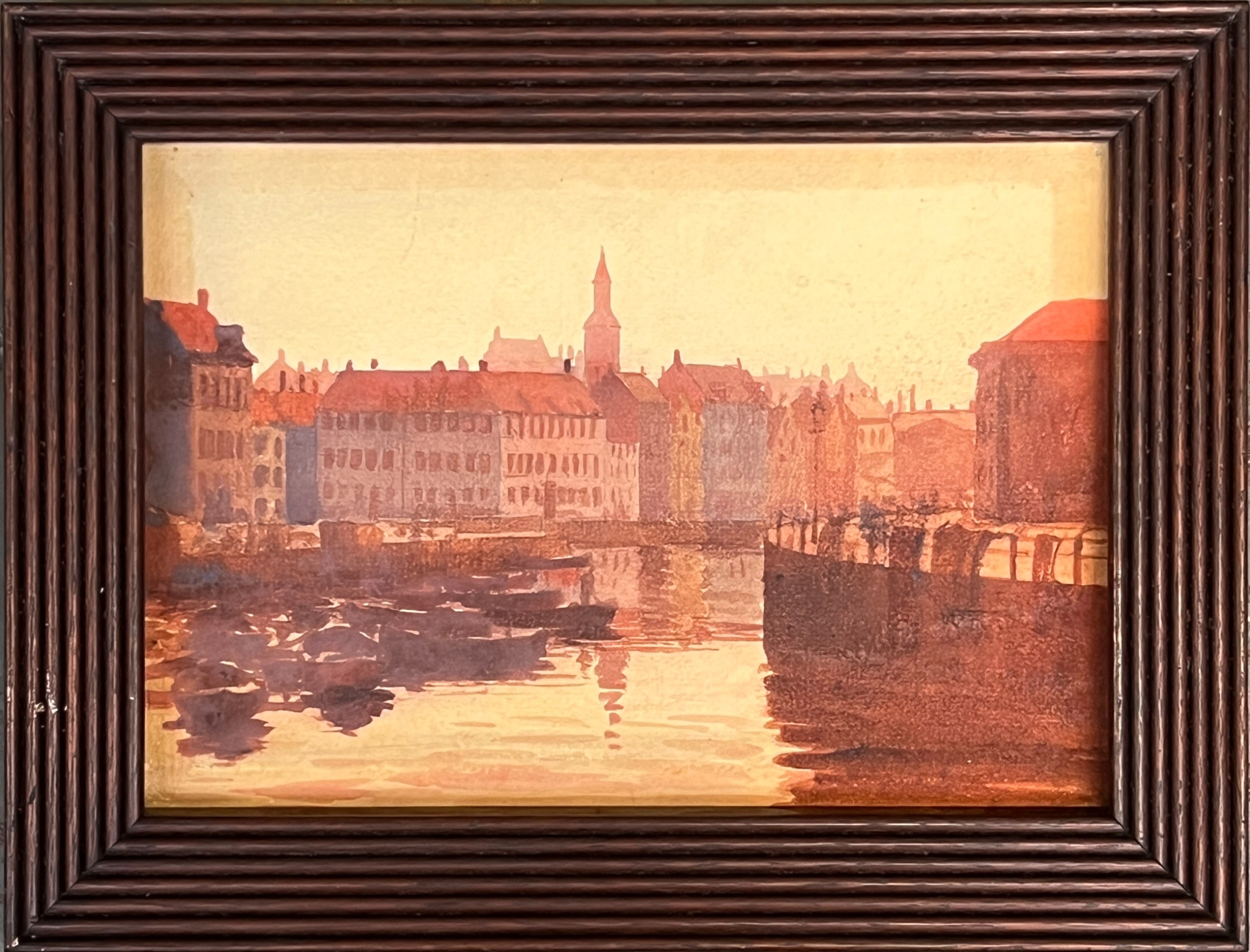 A late 19th/early 20th century watercolour of a Belgian/Dutch town, in a good reeded oak frame, 17x24cm