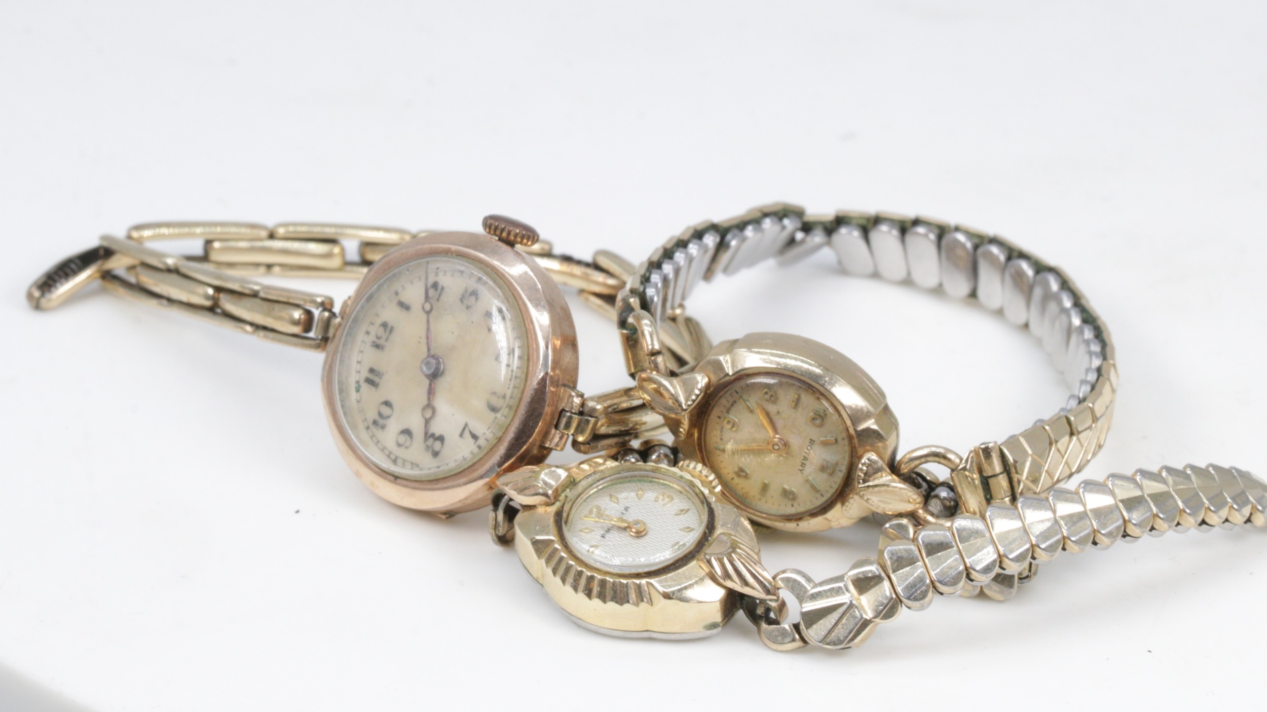 Two 9ct gold ladies wristwatch and one other ladies wristwatch