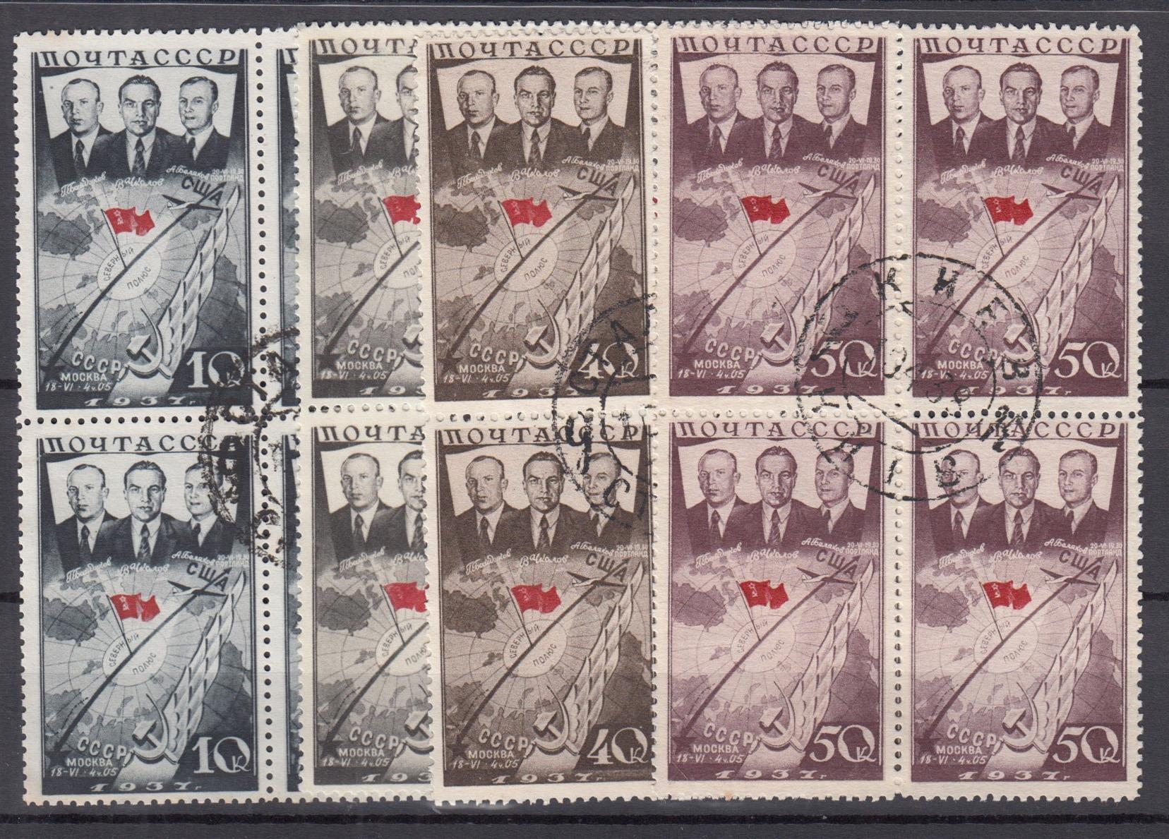 1938 First and Second Flights over North Pole sets, 36 sets of each, many in blocks of 4, used (cto), Cat £477, SG780/86