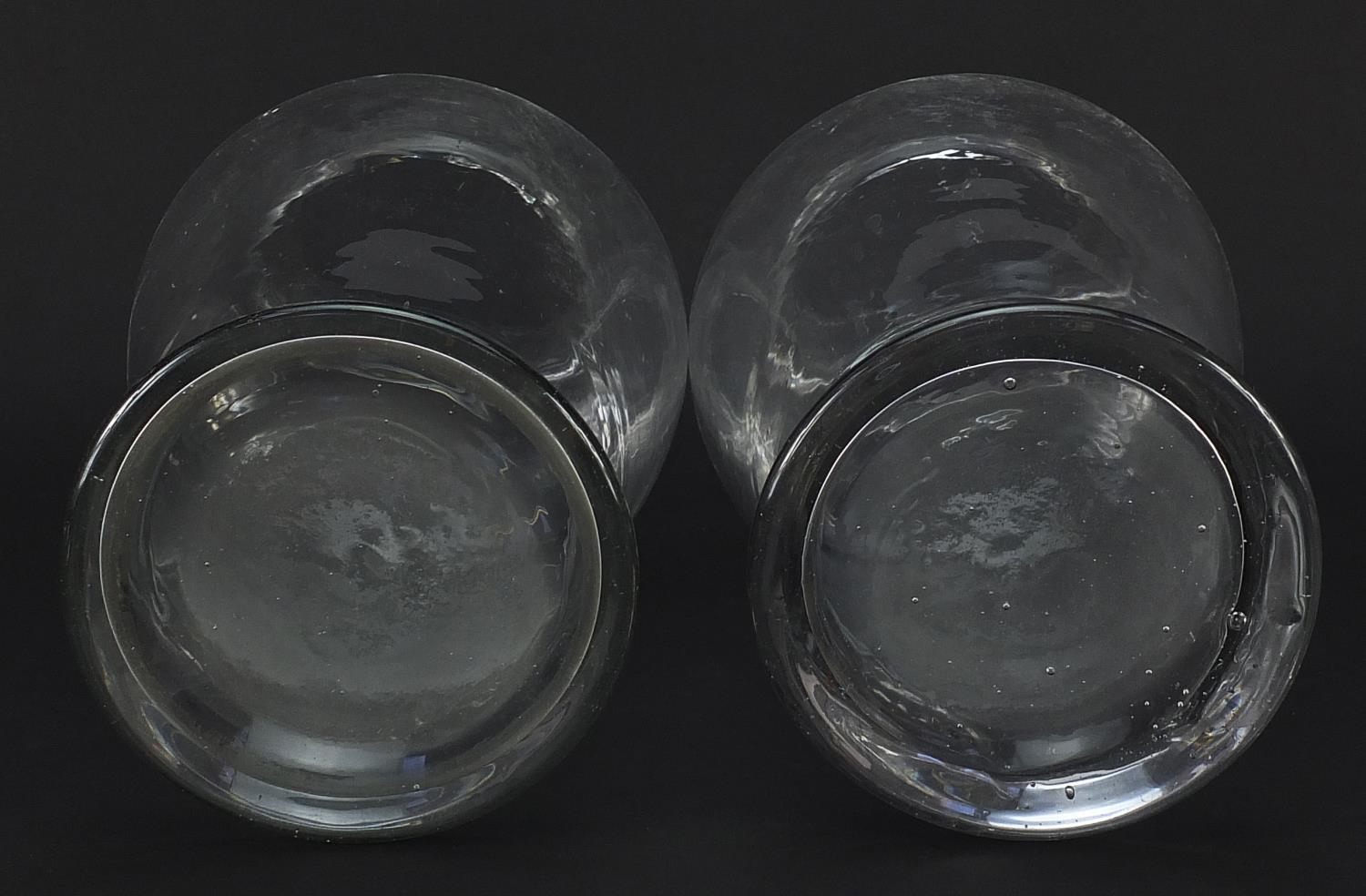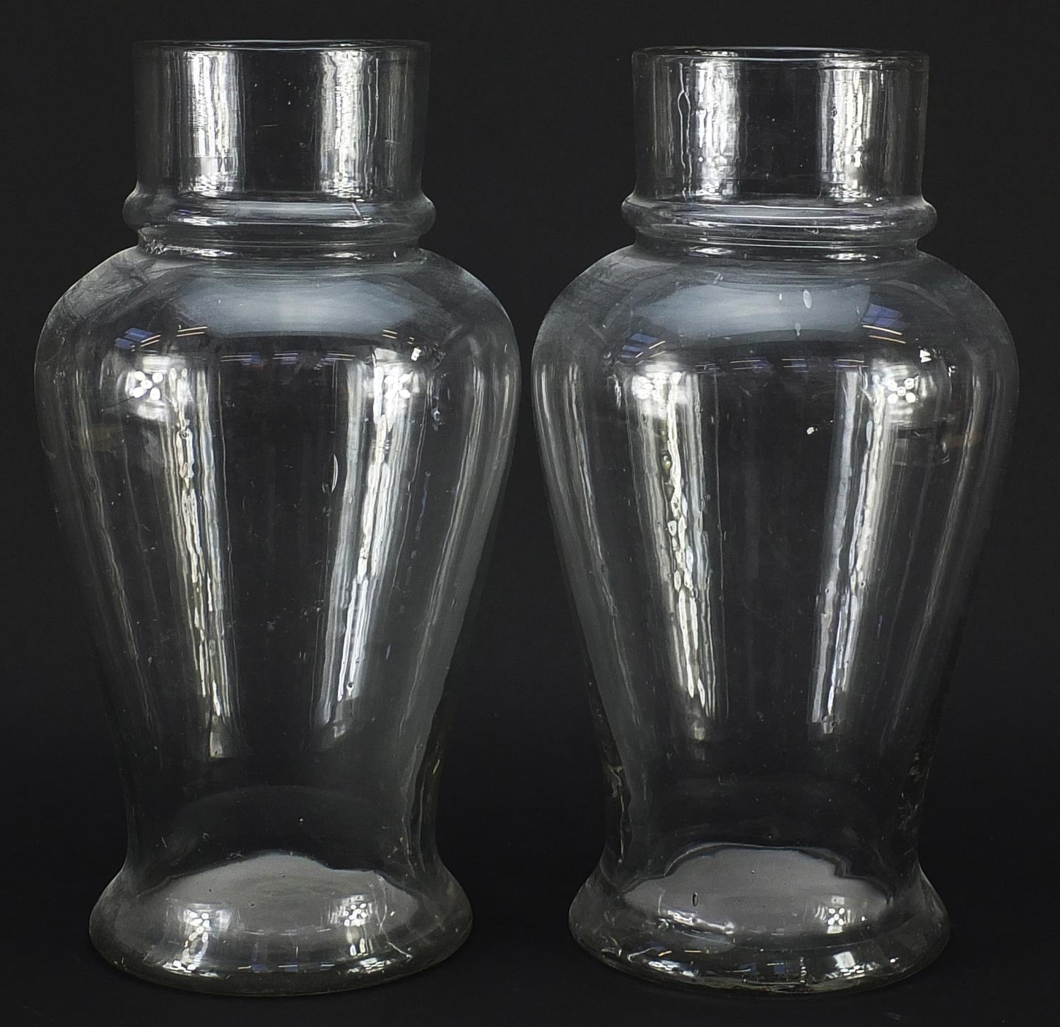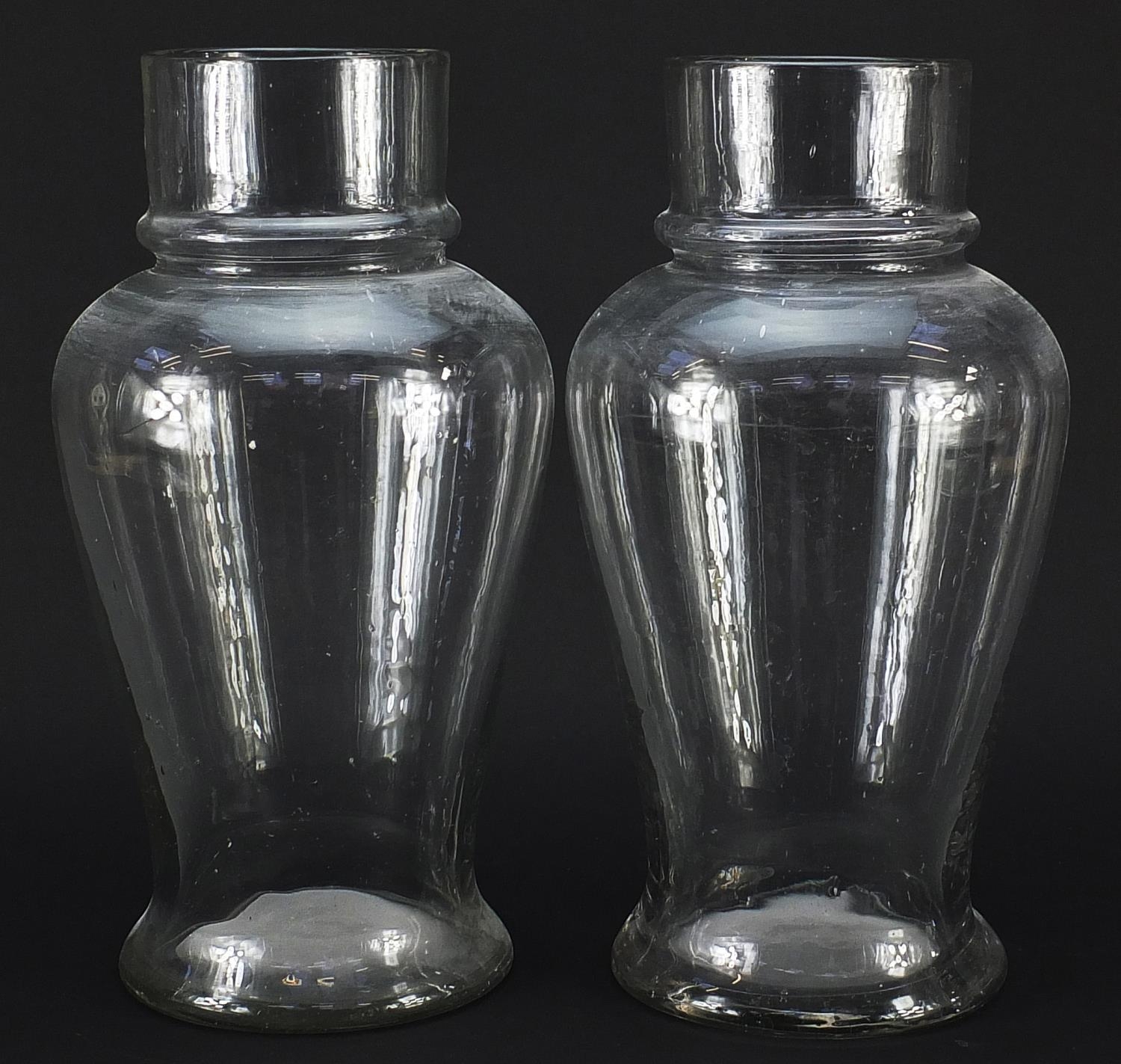 Pair of 19th century apothecary baluster glass vases, each 32.5cm high