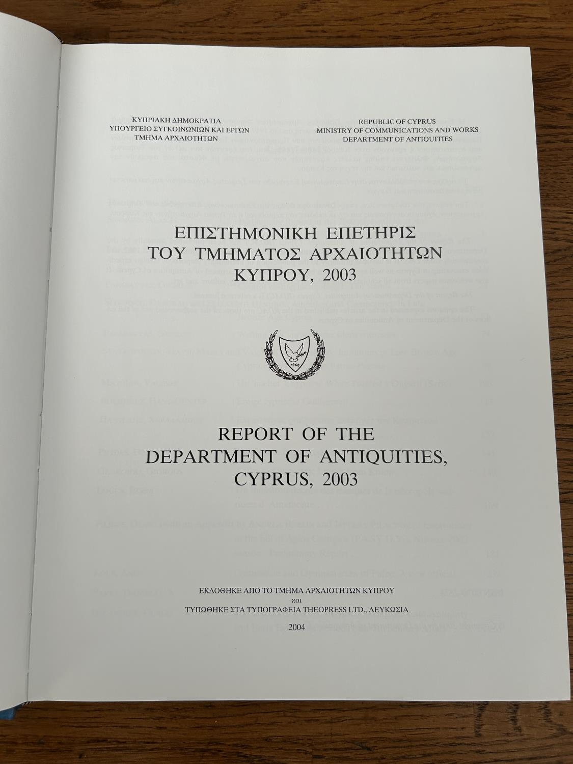 Report of the Department of Antiquities Cyprus 2003 Book