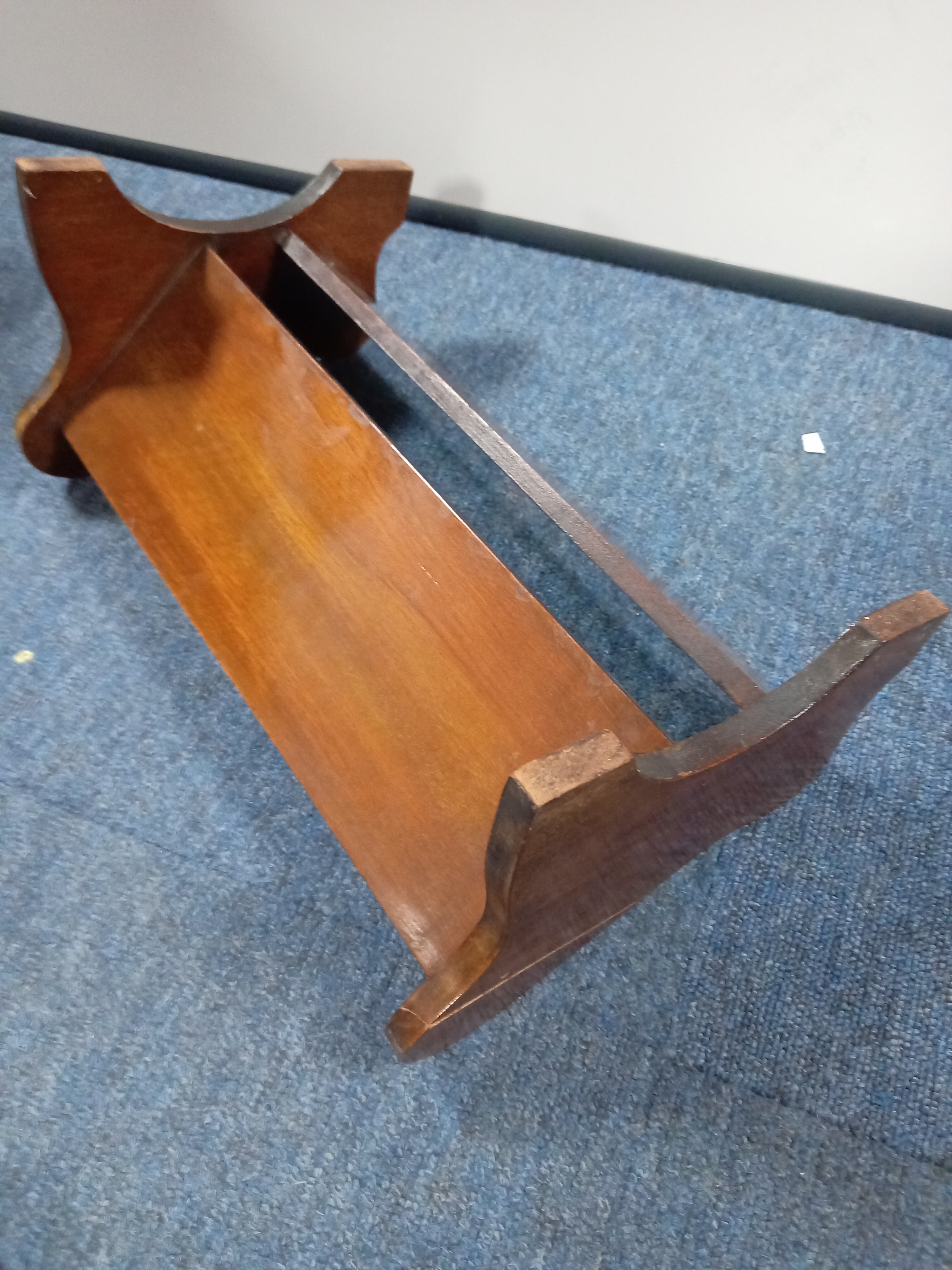 A dark oak bookshelf. H 19 W 38
