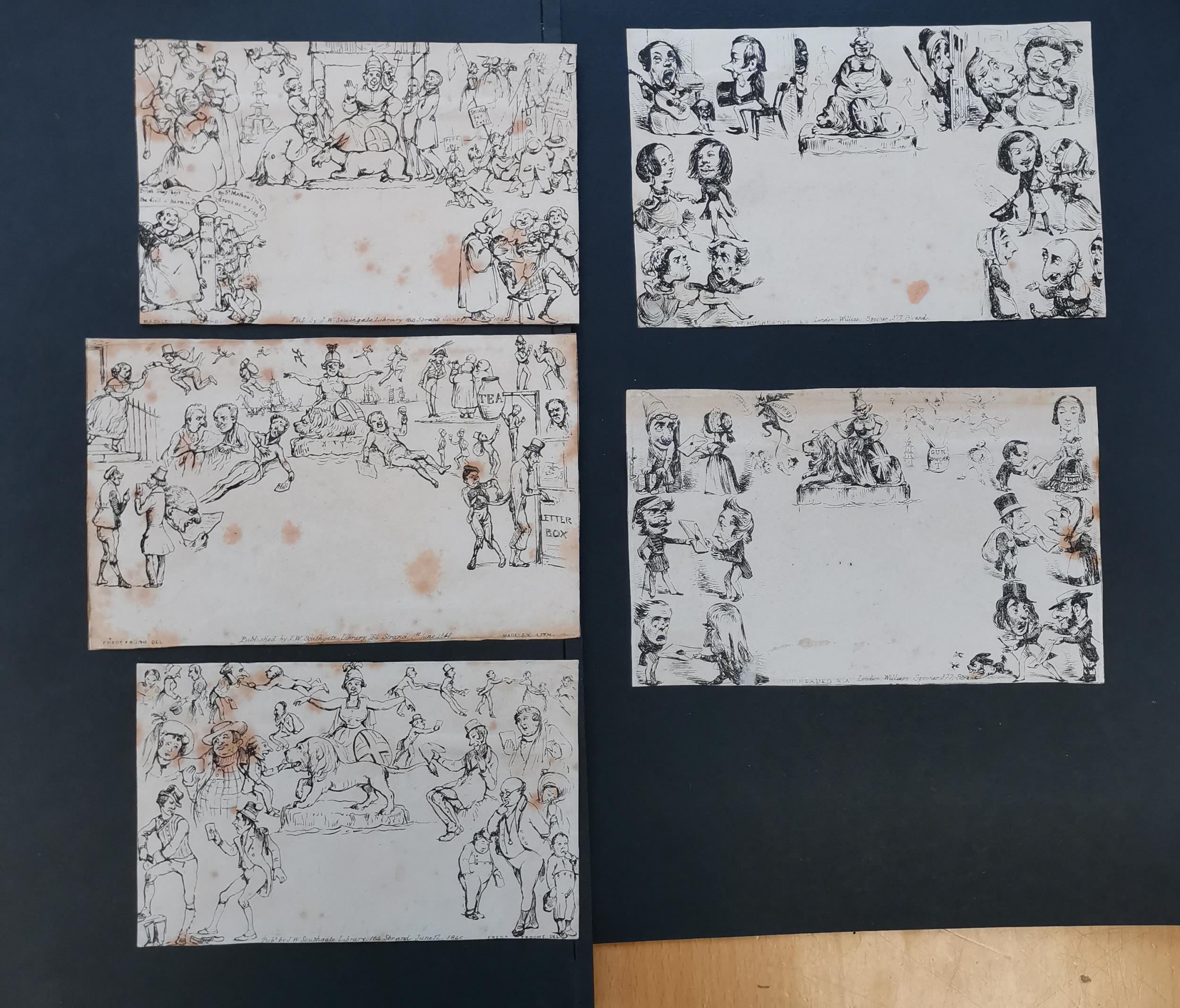 QV. MULREADY CARICATURES. 5 different Spooner fronts unused all with some staining. (5 items)