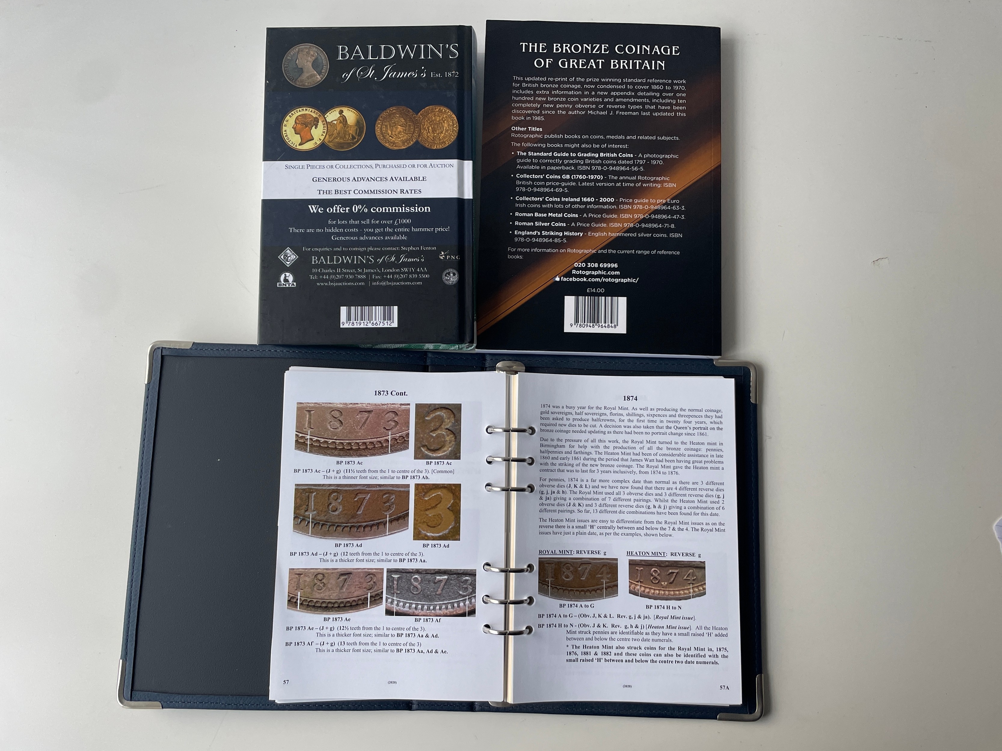 Collection of numismatics British coin reference books including The British Bronze Penny Victoria 1860 - 1901, Coins of England and United Kingdom Pre decimal issue, Bronze coinage of Great Britain 1860 - 1970 - Michael J Freeman