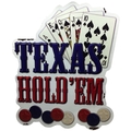 A'TEXAS HOLD'EM' Embossed Tin Sign. Dimensions (H x W x D) approx. 60 x 55 x 1 cm.