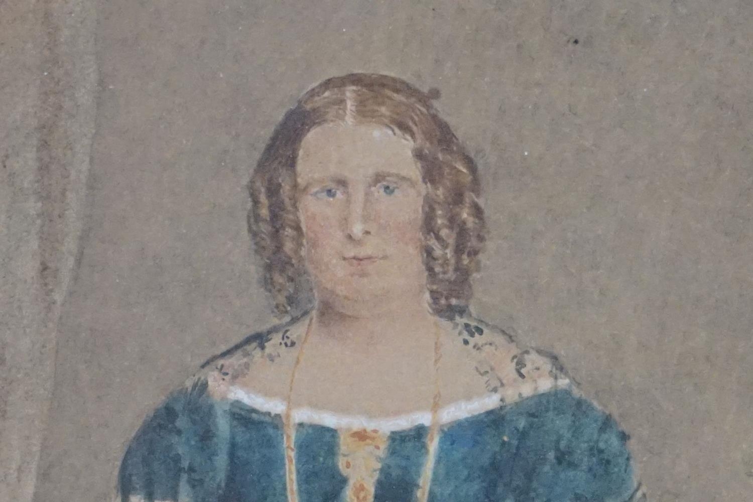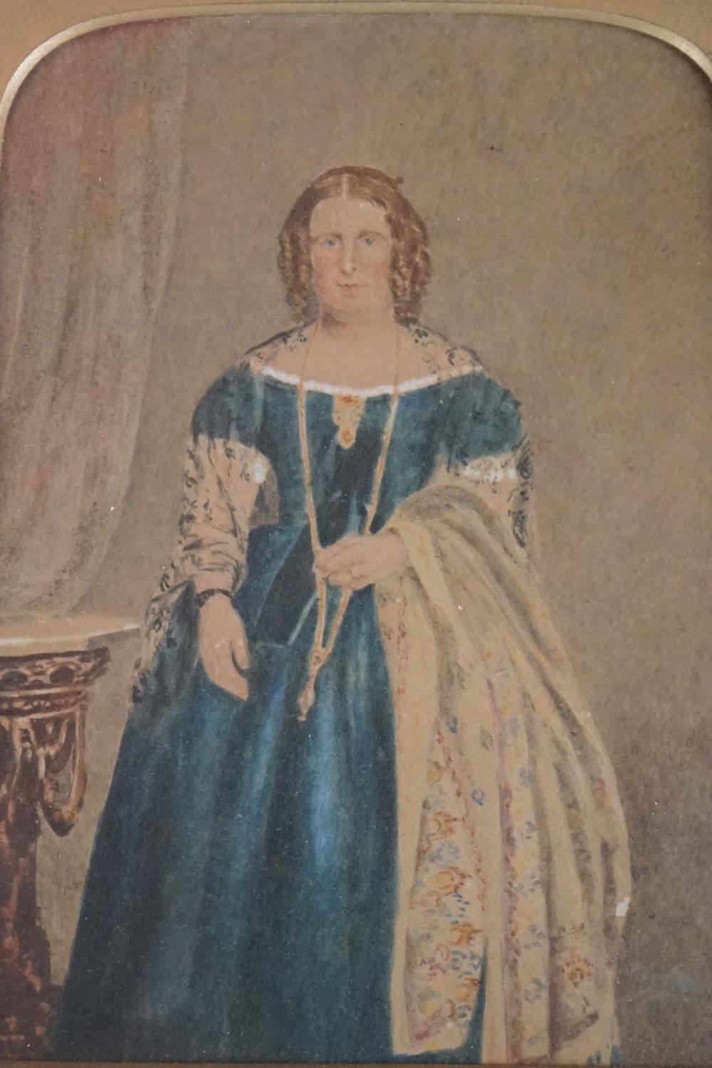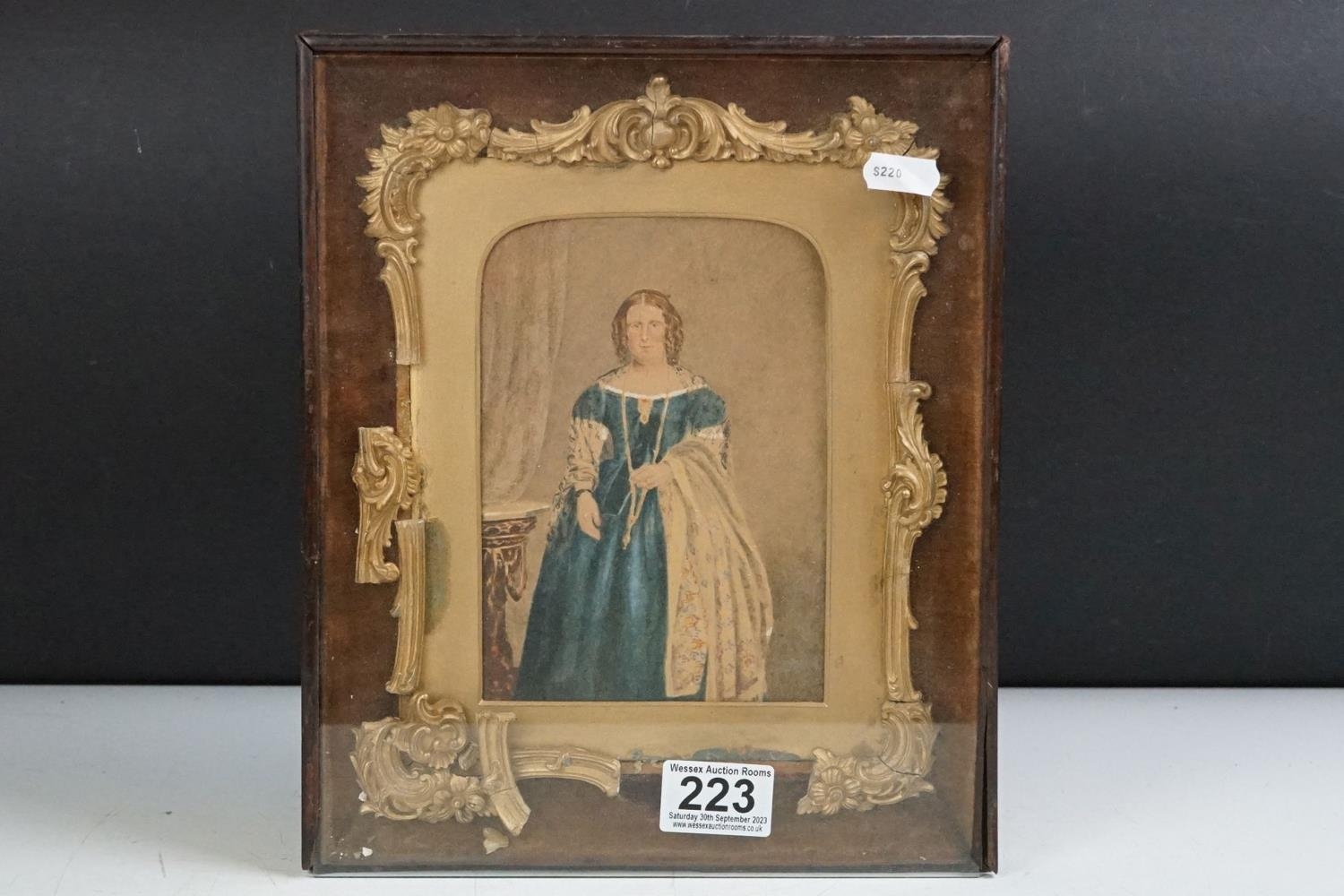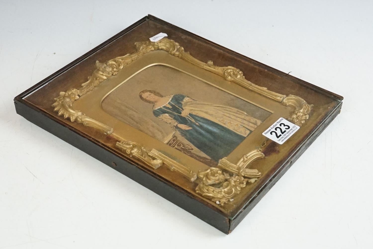 A 19th century picture frame, the outer case with glazed panel enclosing an ornate gilt frame framing a watercolour of a lady, 16 x 11.5cm, 28 x 23.5cm overall