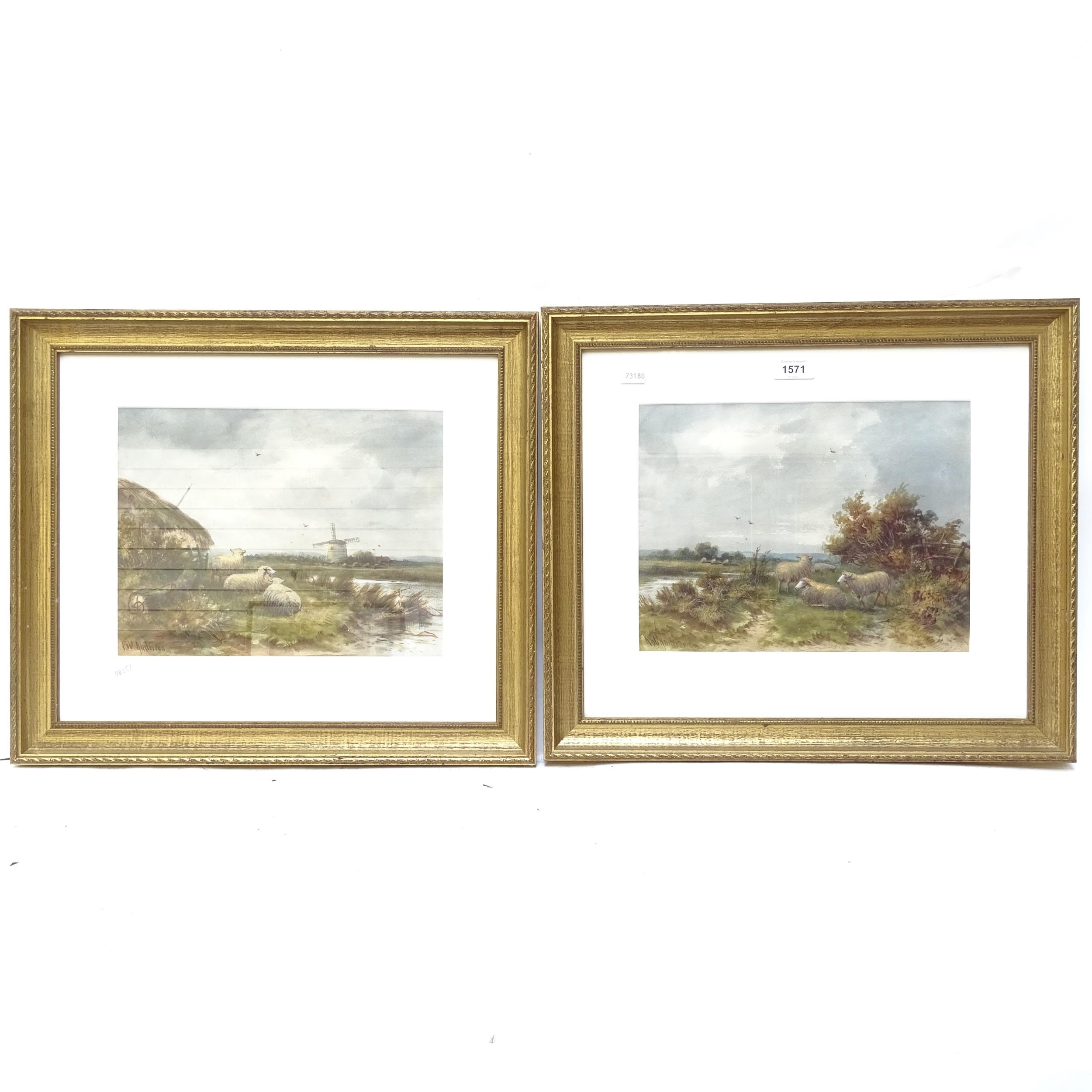 Robert Anderson, a pair of watercolours, river views with grazing sheep, gilt-framed, overall 42cm x 48cm