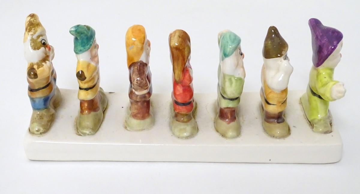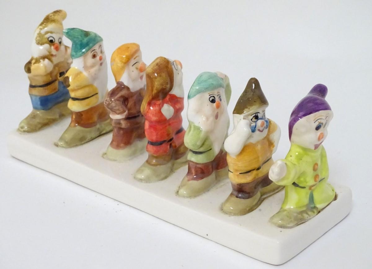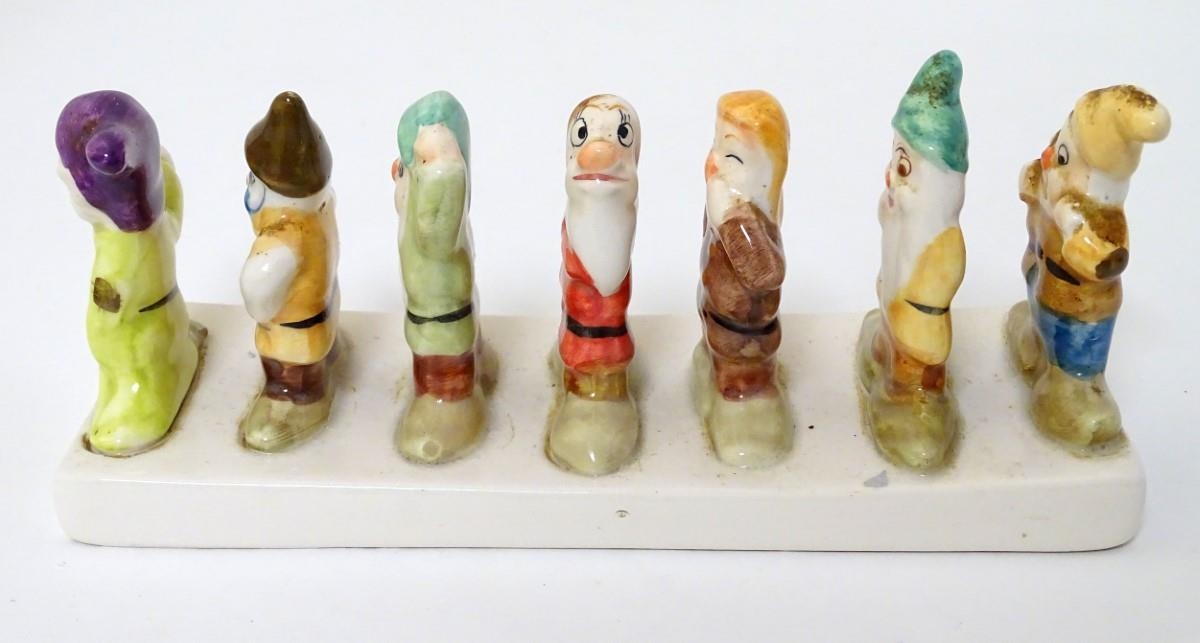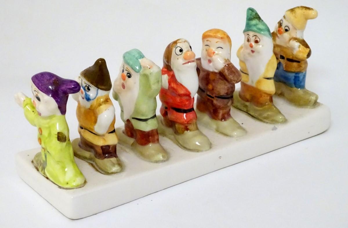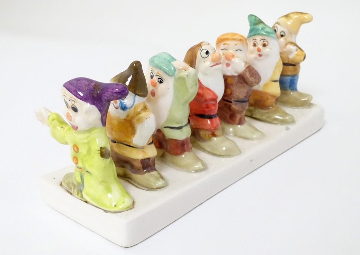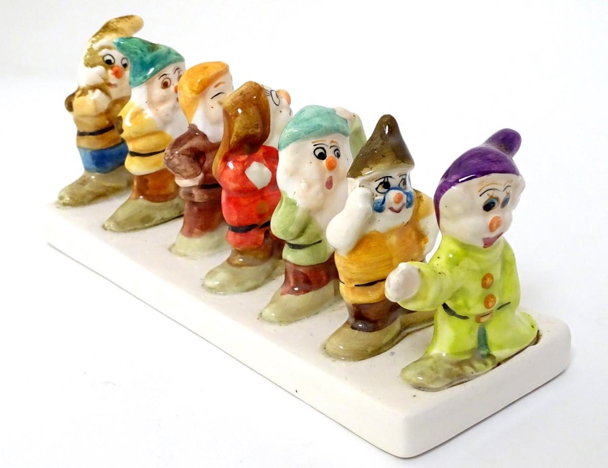 'Clover, Loved all over', an advertising ceramic toast rack in the form of Walt Disney's Classic Snow White and the Seven Dwarfs, 8'' long