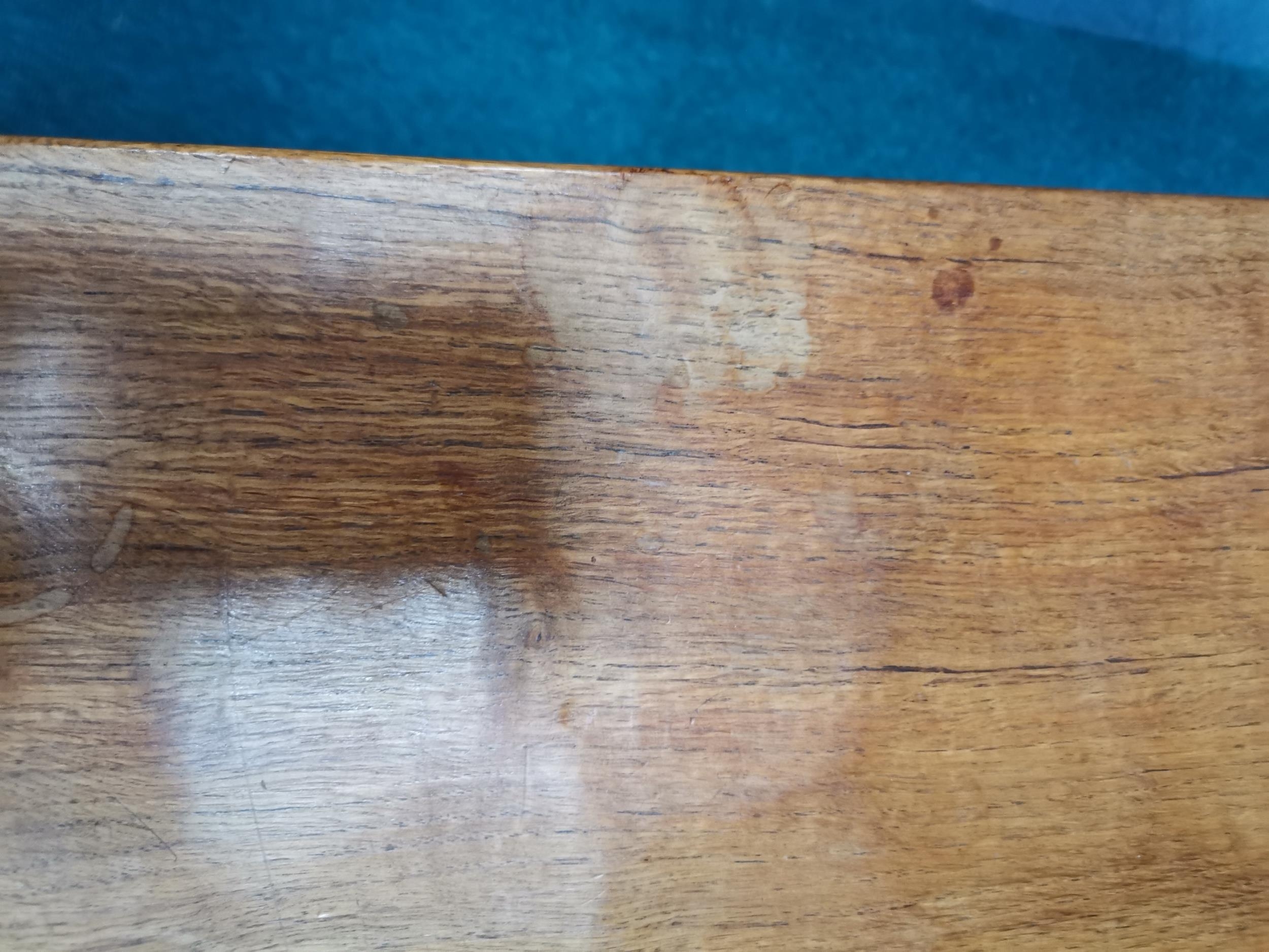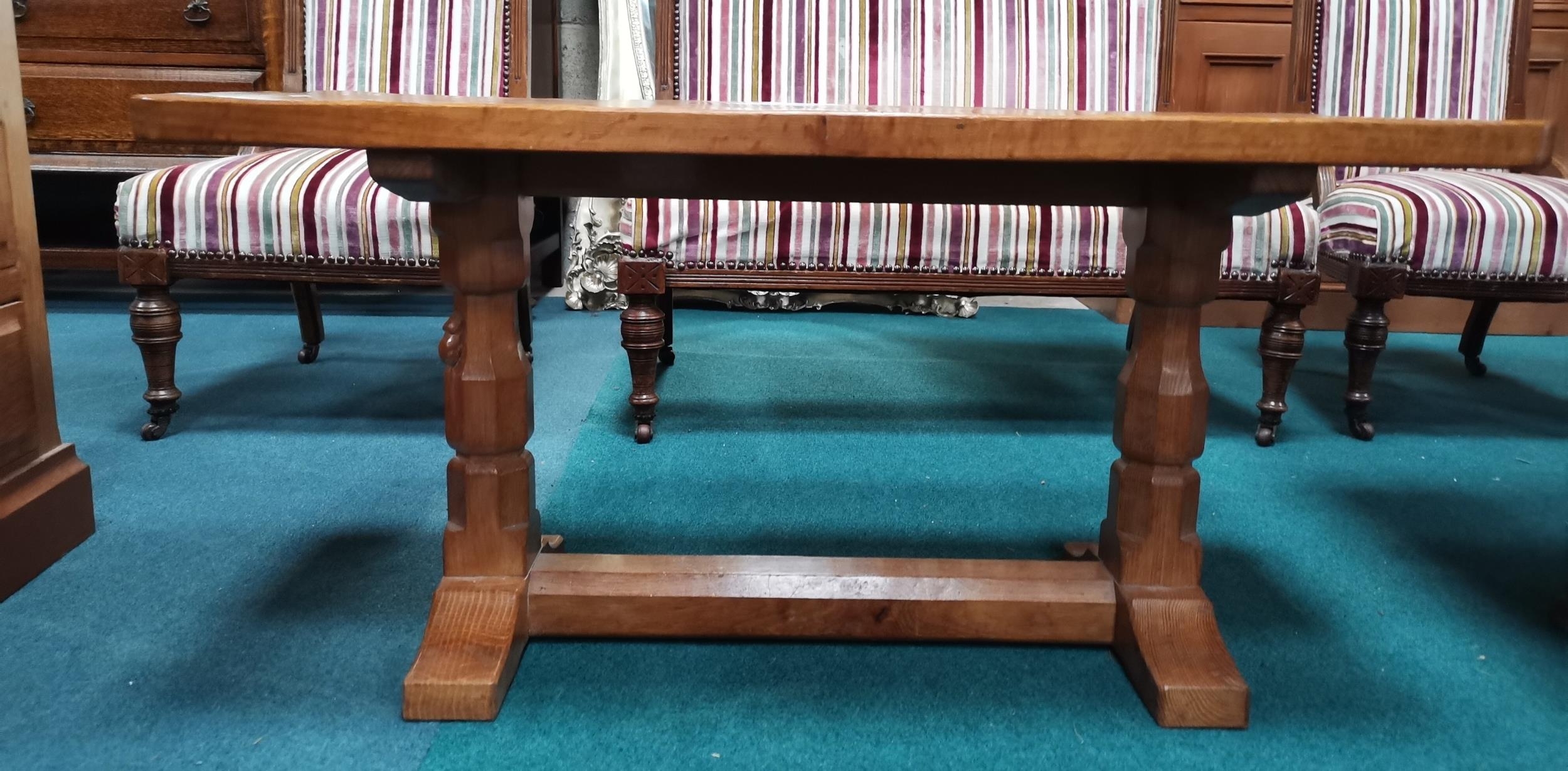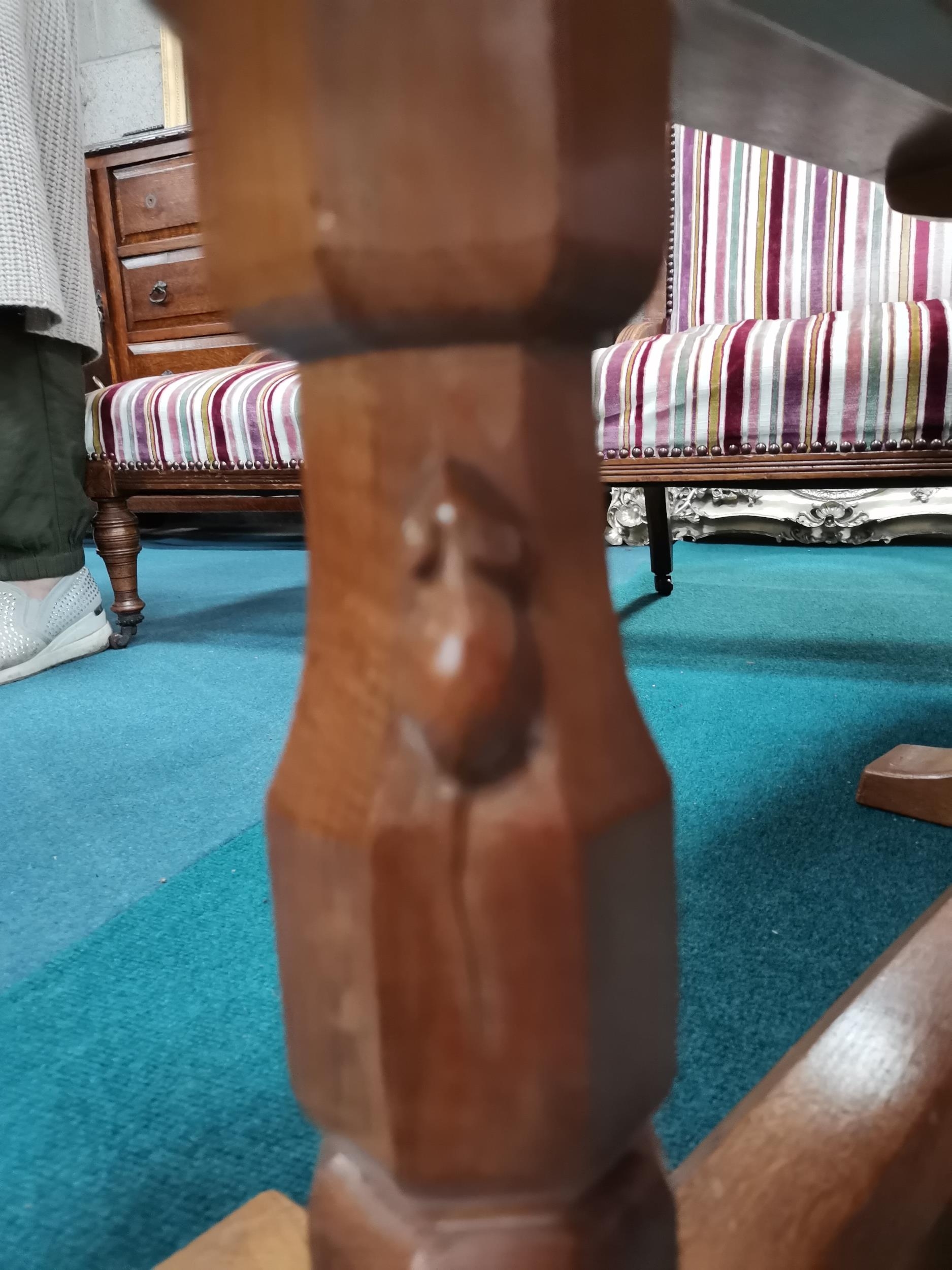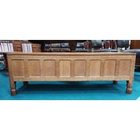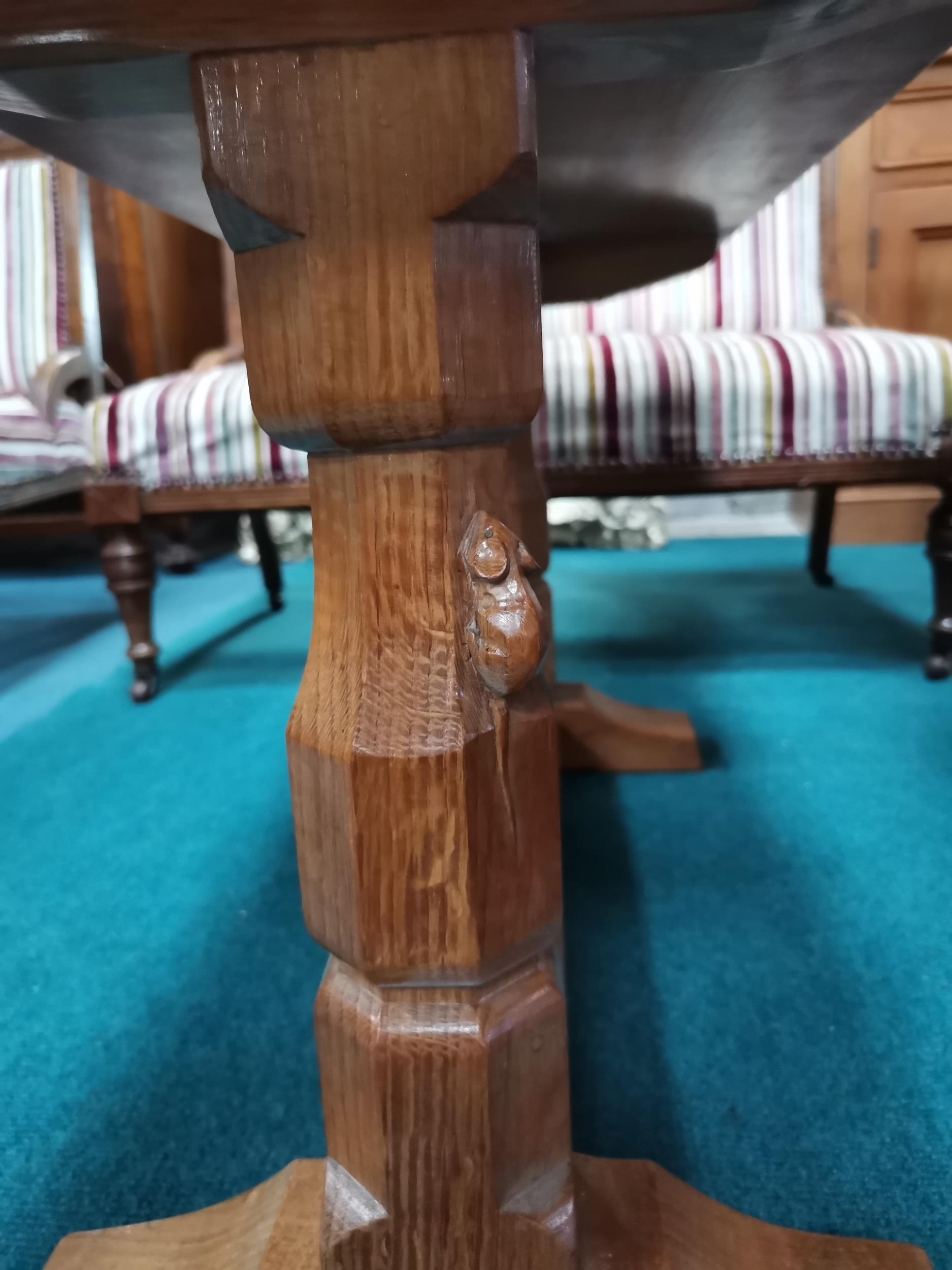 Mouseman Robert Thompson Yorkshire Oak coffee table with Adzed top and signature mouse carving on one leg. L91cm x W36cm x H44cm