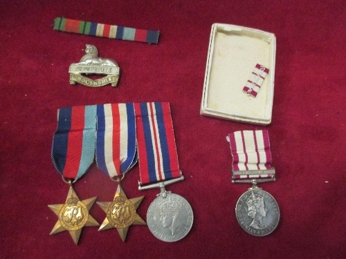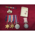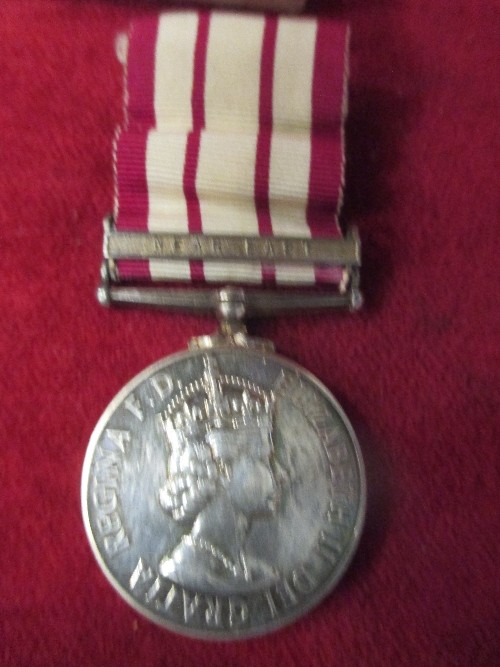 ROYAL NAVY GENERAL SERVICE MEDAL NEAR EAST (SUEZ CANAL) 1951-54 PLUS THREE WWII MEDALS 1939-45, THE FRANCE AND GERMANY STAR, 1939-45 STAR. WITH RIBBON BARS FOR ALL. PLUS LINCOLNSHIRE