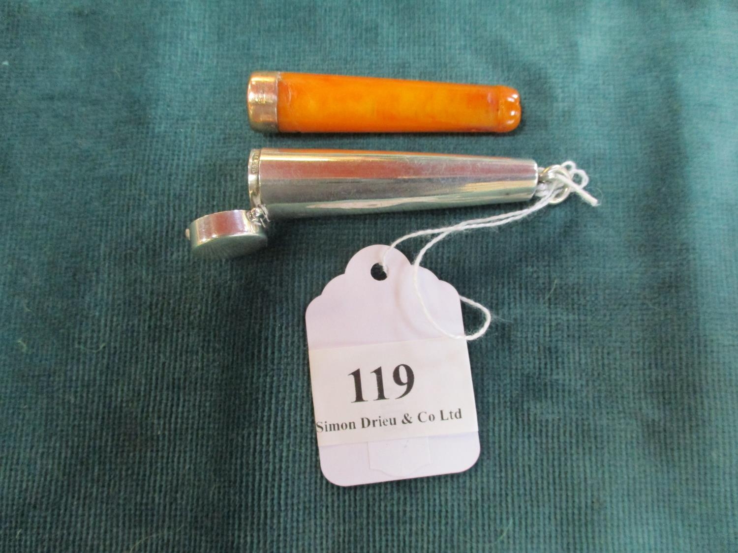 A silver cheroot holder with gold band (Chester)
