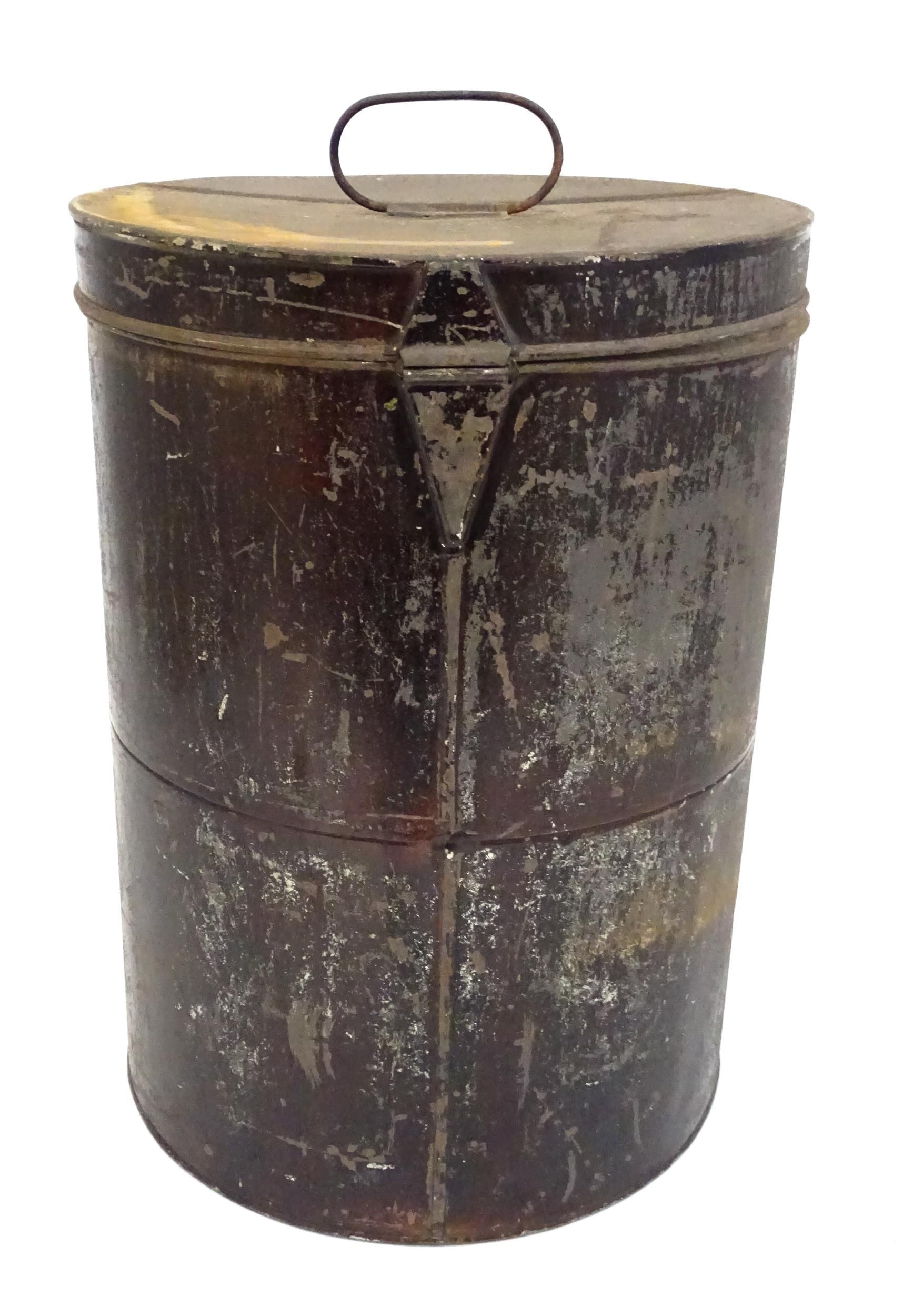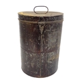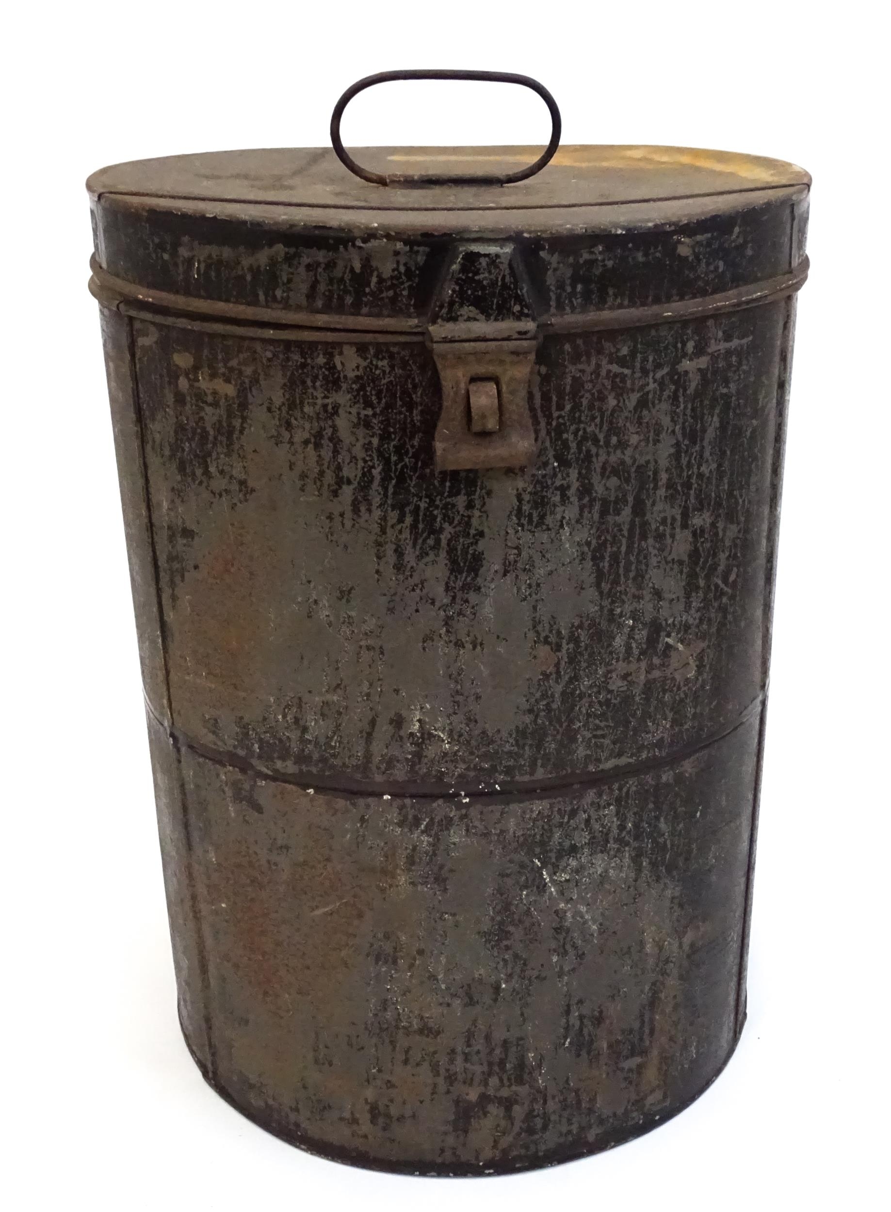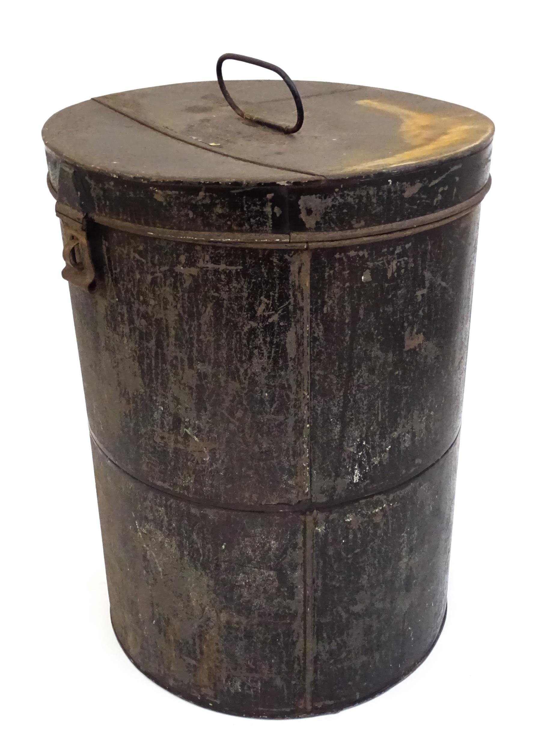 A large early 20thC tin case, approx 18 1/4" high x 13 1/4" in diameter