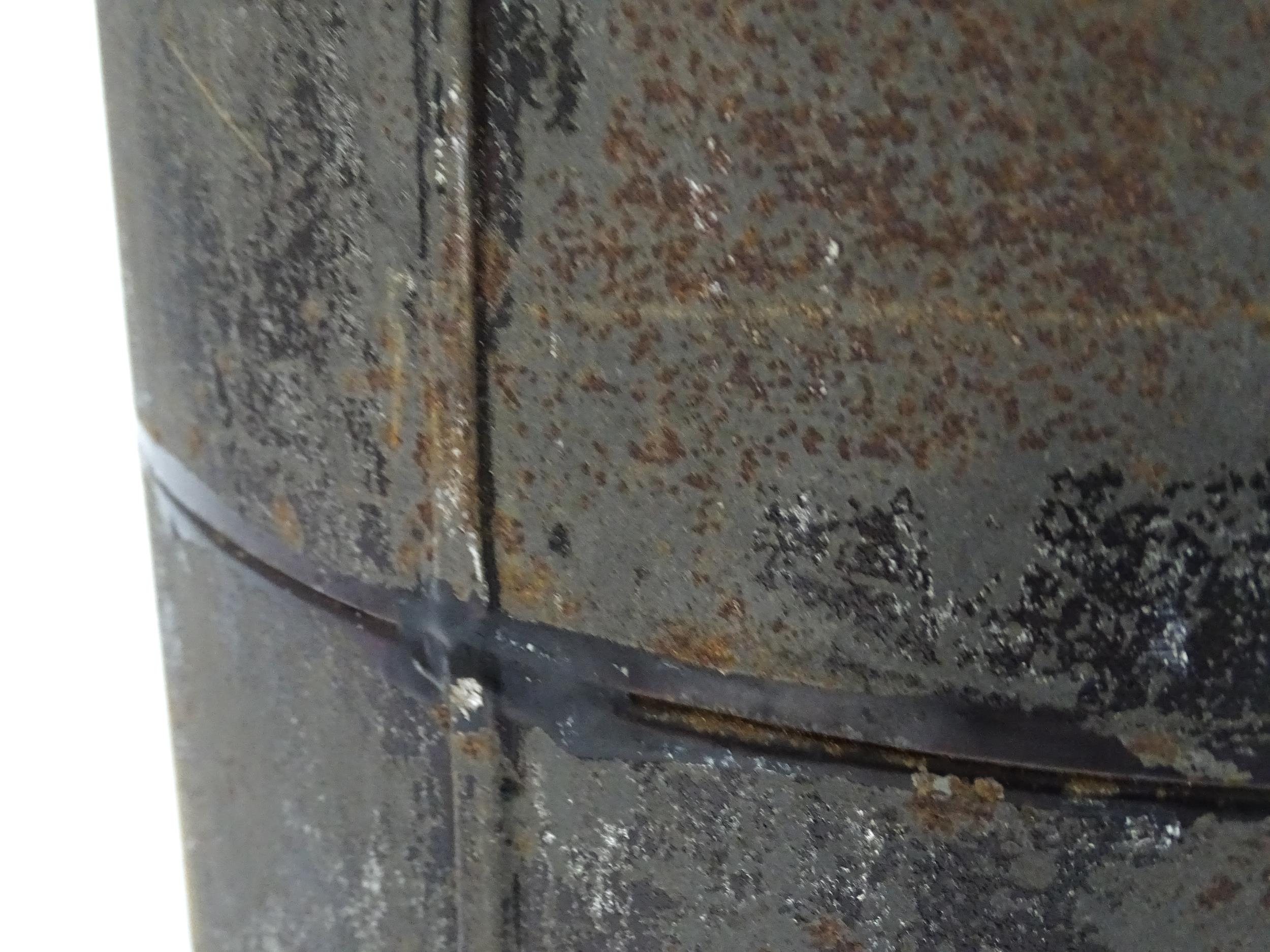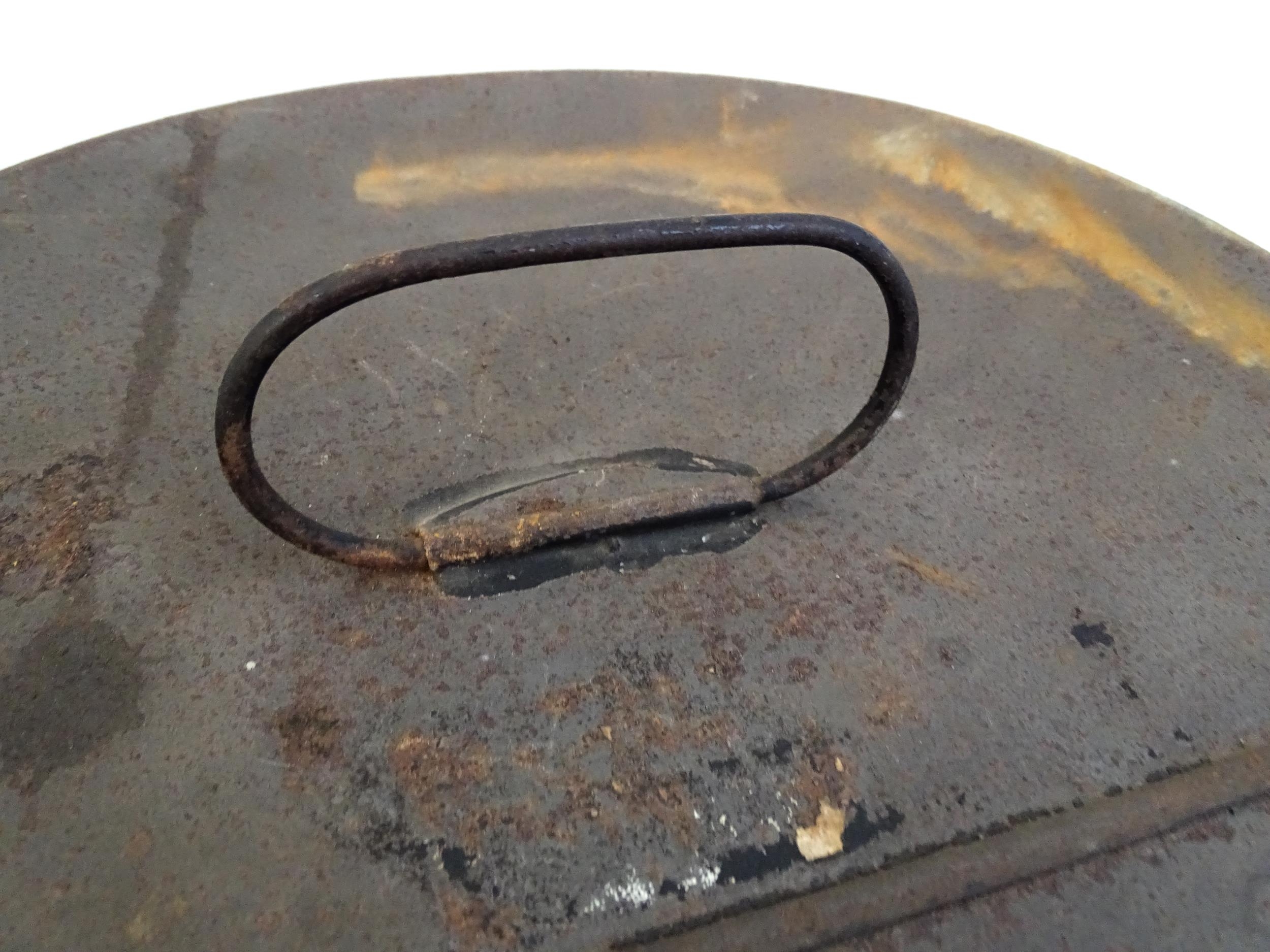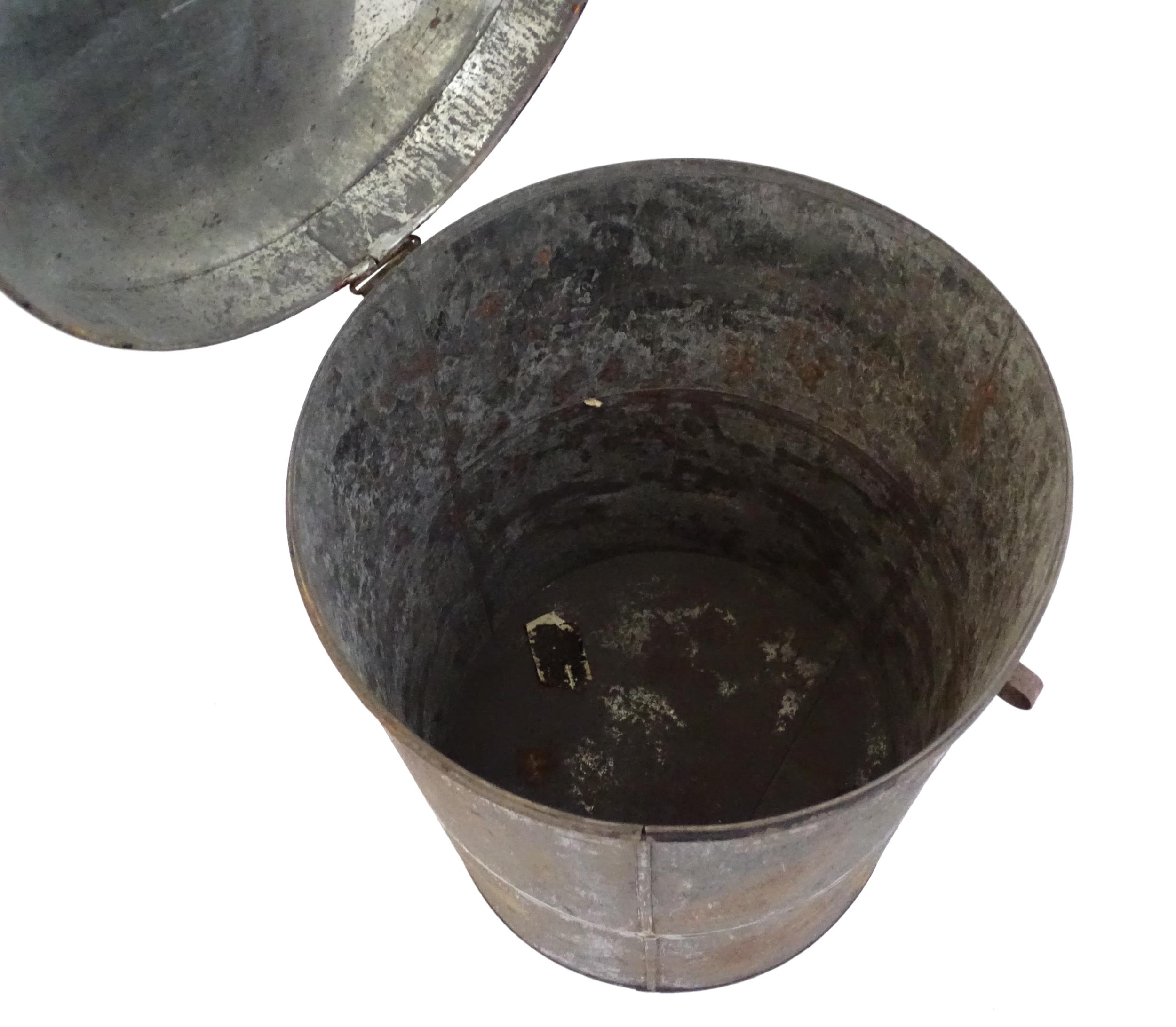 A large early 20thC tin case, approx 18 1/4" high x 13 1/4" in diameter