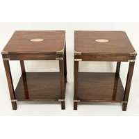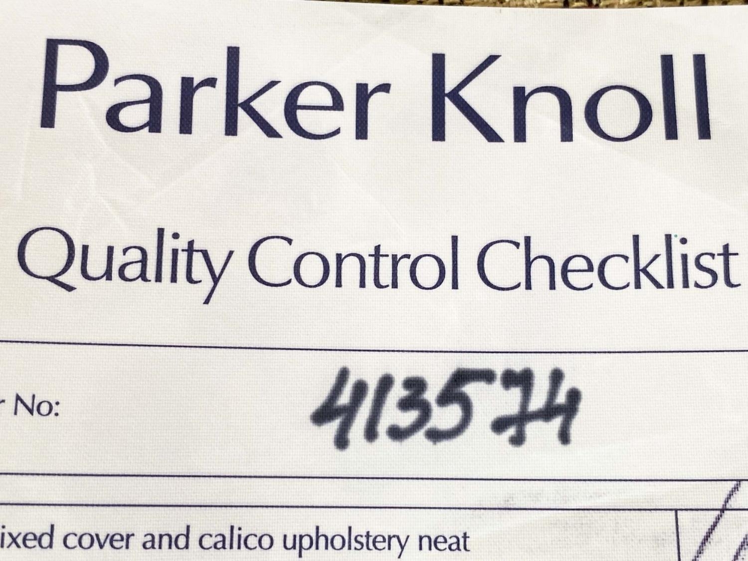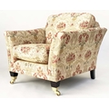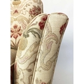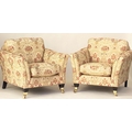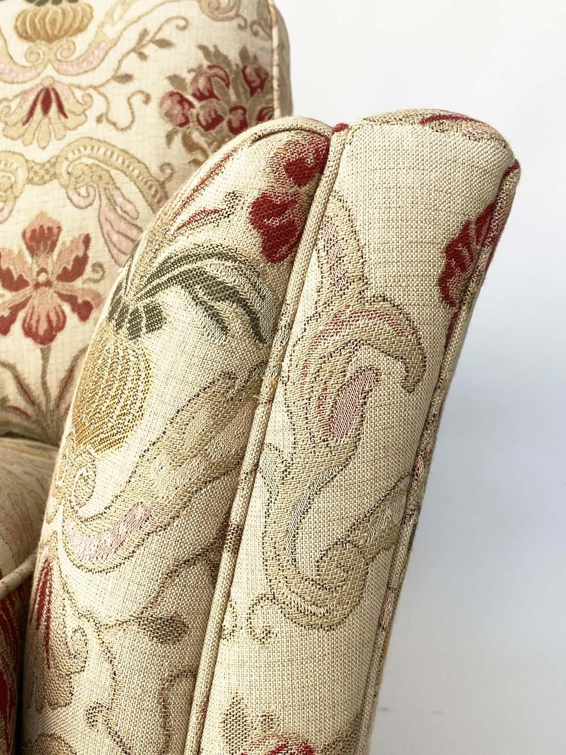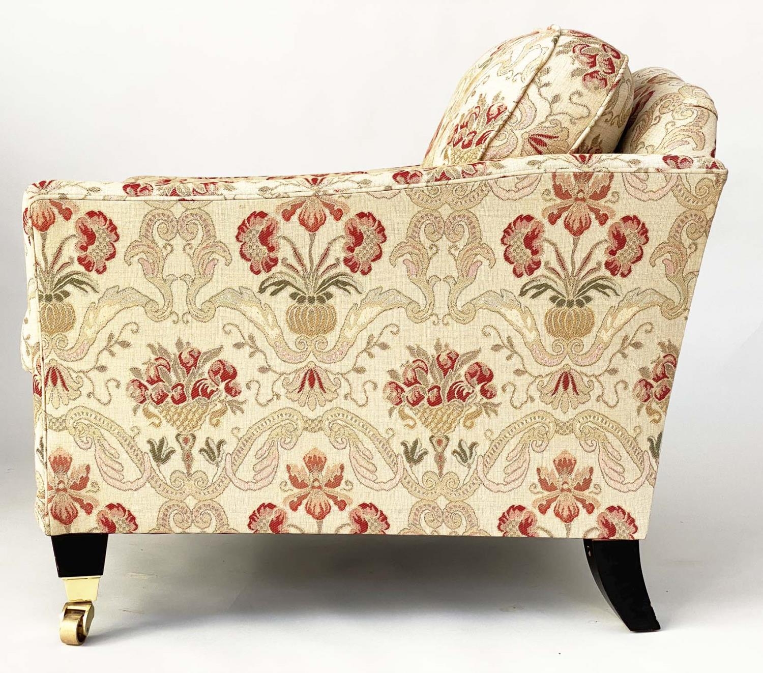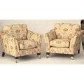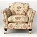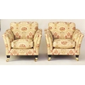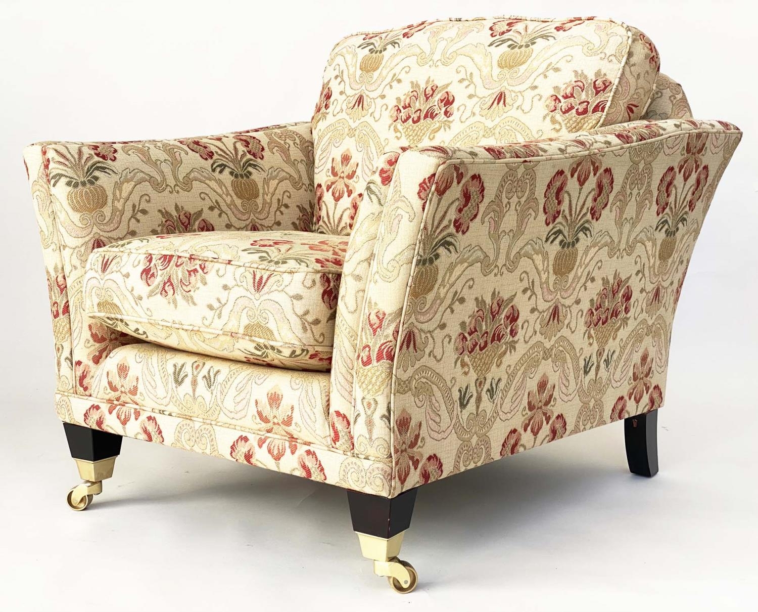 ARMCHAIRS, a pair, tapestry weave upholstered with square outswept arms and tapering square supports with castors. (2)