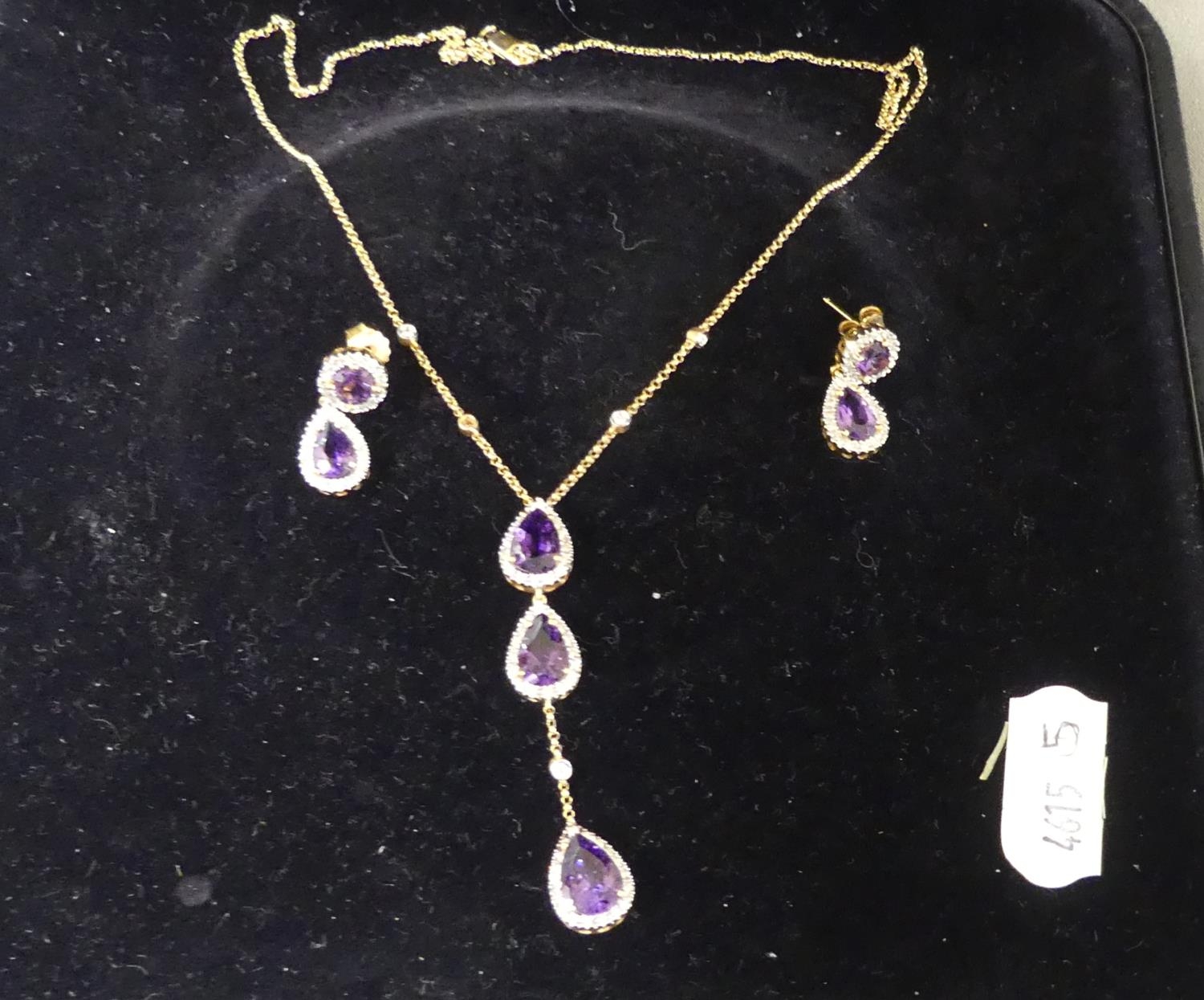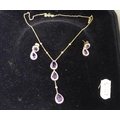 18ct Gold Mounted Amethyst & Diamond Pendant with Matching Earrings